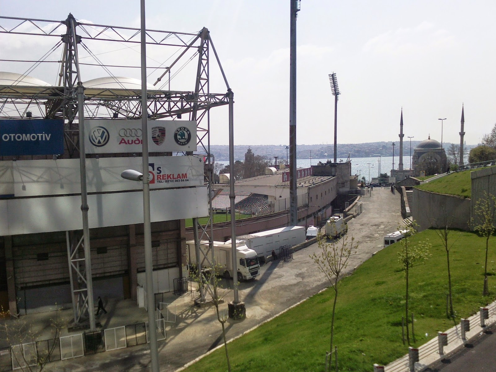 Das Inönü-Stadion liegt einfach traumhaft direkt am Bosporus, die Fantribüne zeigt (außer auf die gegnerischen Fans) voll auf die Wasserfront. Bin bereits zwei Stunden vor Spielbeginn im Stadion, einfach um dem großen Wirbel beim Einlass zu entgehen. Die ersten zwei Lektionen hab ich auch gleich einmal gemacht: Erstens sind Feuerzeuge in türkischen Stadien strikt untersagt (beim nächsten Mal hatte ich Zünder mit) und zweitens dürfen auch Münzen nicht in das weite Rund mit (bei Besiktas schien das Kleingeld der Polizei-Wohlfahrt zuzukommen, bei Galatasaray wirft man es wenigstens in so ein Sammelherz, das ein bissl an McDonalds erinnert). Der Einlass im Inönü ist so, wie es in alten englischen Stadien mal gewesen sein muss. Klitzekleine Schlitze mit Drehkreuzen – es kann immer nur einer durch.