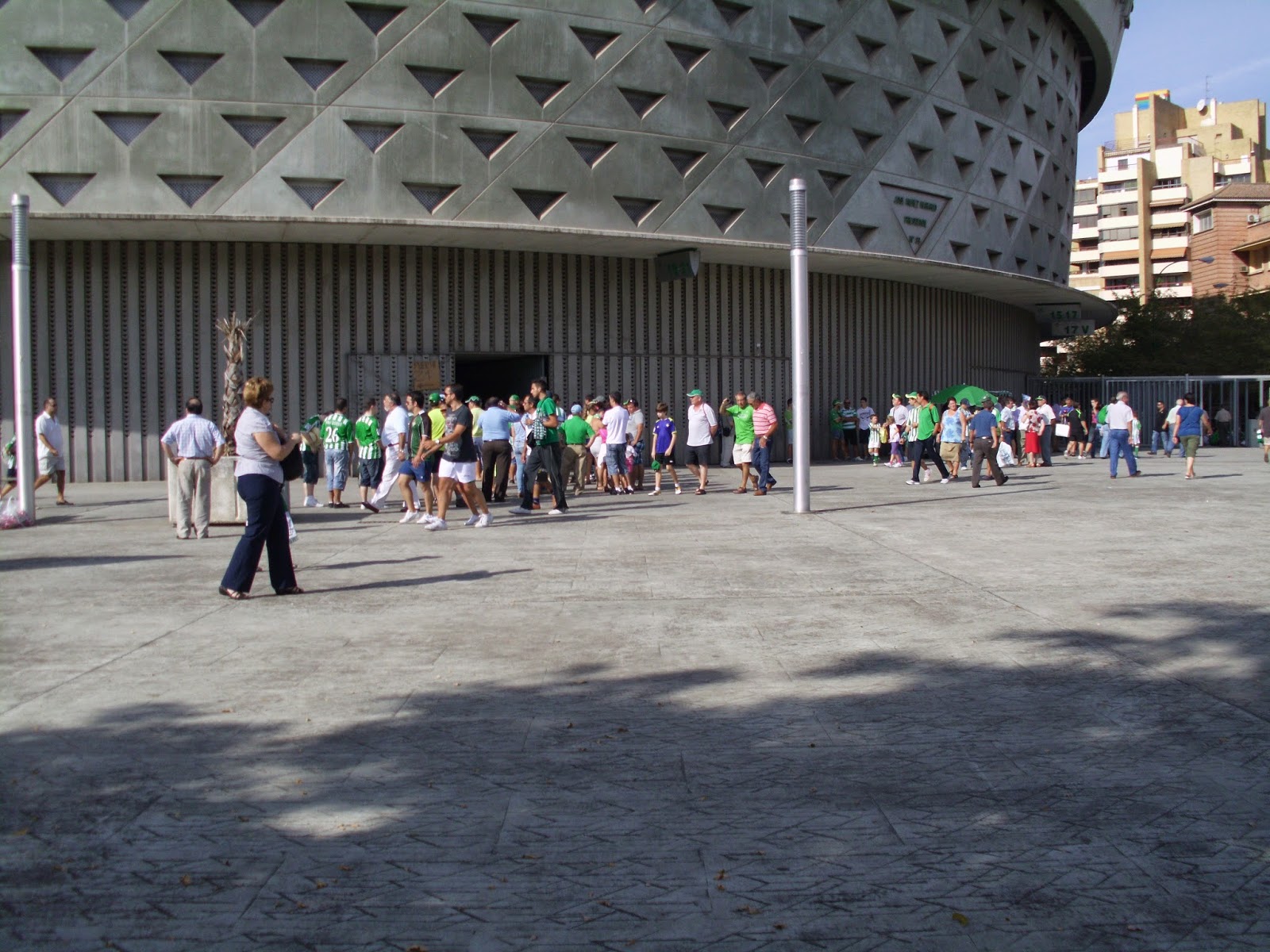 Sieht das FC-Stadion von außen wie eine große Stierkampfarena aus, so wurde das Betis-Stadion eher dem Modell einer riesigen Betonschüssel direkt aus dem Ostblock nachempfunden – hat aber durchaus Charme. Bis auf die Kurve der Hardcore-Fans sind alle anderen Tribünen dreigeschossig und steil nach oben gebaut – anscheinend sollte auch die Gol sur einmal dreigeschossig werden, allerdings „baut“ man noch daran.