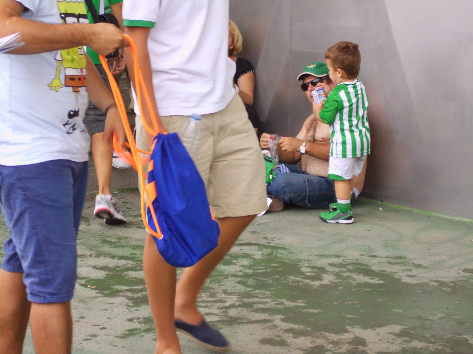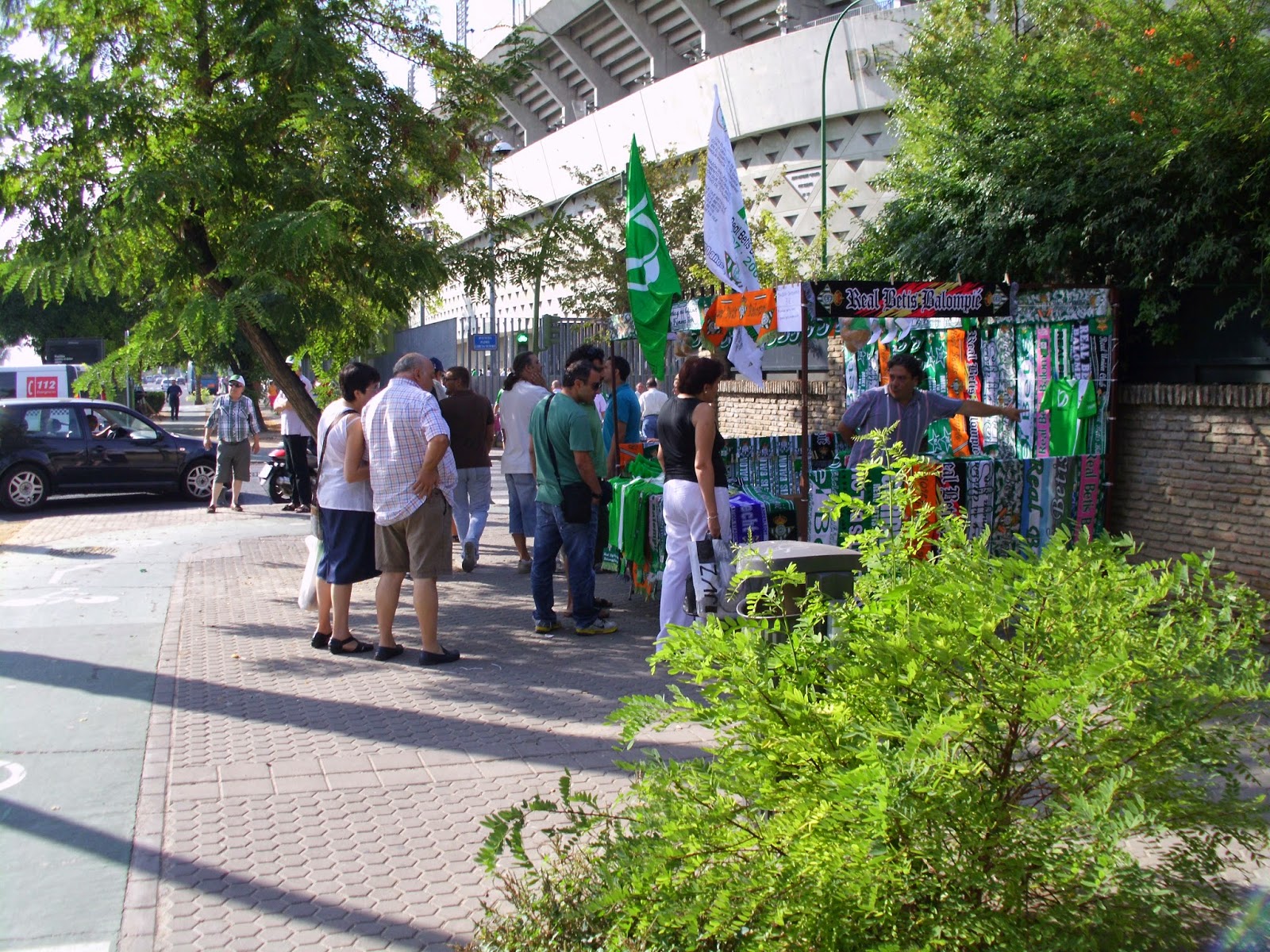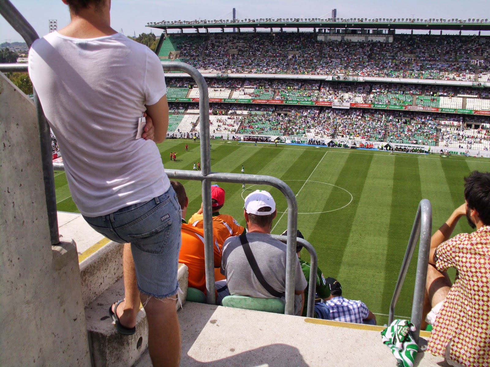 Zudem gibt es schon in der ersten Halbzeit einige Notarzteinsätze auf den Tribünen. Nur den Spielern scheint die Hitze wenig zu machen – erstens gibt es nicht einmal eine Trinkpause, zweitens ist das Niveau der Partie trotz der Hitze eigentlich gut und das Spieltempo hoch. Ich verbringe dennoch den Rest der Partie im Halbschatten der Sektoreneingänge. Sevilla drückt von Anfang an und will den guten Start (durch das 1:0 bei Granada am zweiten bzw. durch den Spielerstreik ersten Spieltag) offenbar bestätigen. Kurz vor der Halbzeit gelingt dann auch fast die Führung, durch einen Eingriff vom Mallorca-Goalie und einen darauffolgenden Lattenpendler können die Insulaner aber das 0:0 in die Kabinen retten. In der Pause geht es hinter die Tribüne, wo der Schatten etwas Abkühlung verschafft.