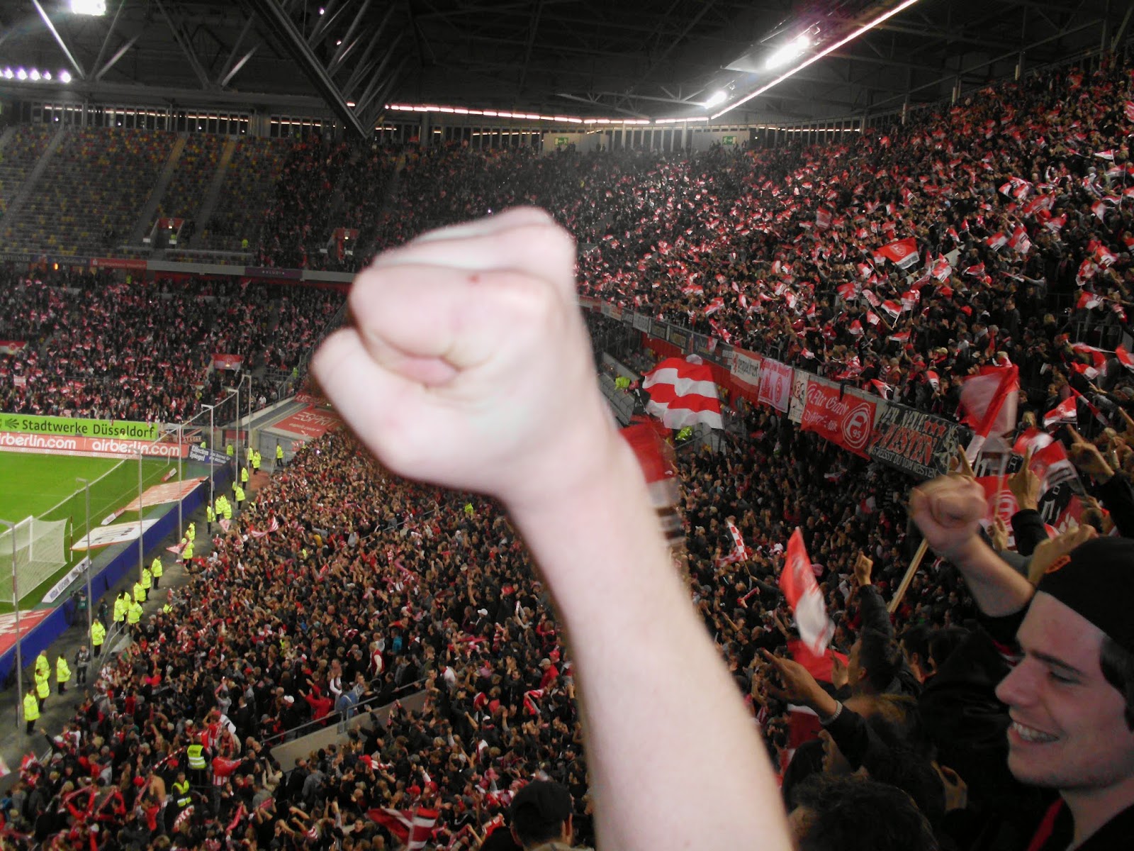Bei „95 oleee“ (1895 ist das Gründungsdatum der Fortuna) schreit sich dann echt jeder Zuschauer die Seele aus dem Leib, was einfach eine Mörderstimmung macht. Aber auch die Wechselgesänge, die immer wieder innerhalb der Fankurve angestimmt werden, können einiges. Dazu tragen vor allem auch die Vorsänger bei, die nicht so eine arrogante Ultra-Einstellung an den Tag legen, sondern wirklich gutes Gespür für die „Masse“ haben und sich selbst auch immer wieder zurücknehmen, sowie die Lieder höchstens anstimmen, aber nicht permanent mit der Soundanlage übertönen – wirklich seher, sehr coole Burschen.