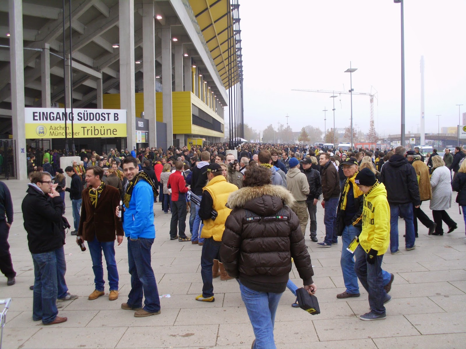 Nach zwei Tagen an der Spitze der ersten oder zweiten Bundesliga geht es zur Abwechslung dann also mal in den Tabellenkeller: Etwas abseits der lieblichen und durchaus charmanten Aachener Altstadt liegt zwischen dem alten Tivoli, diversen Baumärkten, einem riesigen Pferdestadion und Kuhweiden das neu errichtete Tivoli – ein durchaus imposanter Bau mit interessanter Stadionarchitektur.