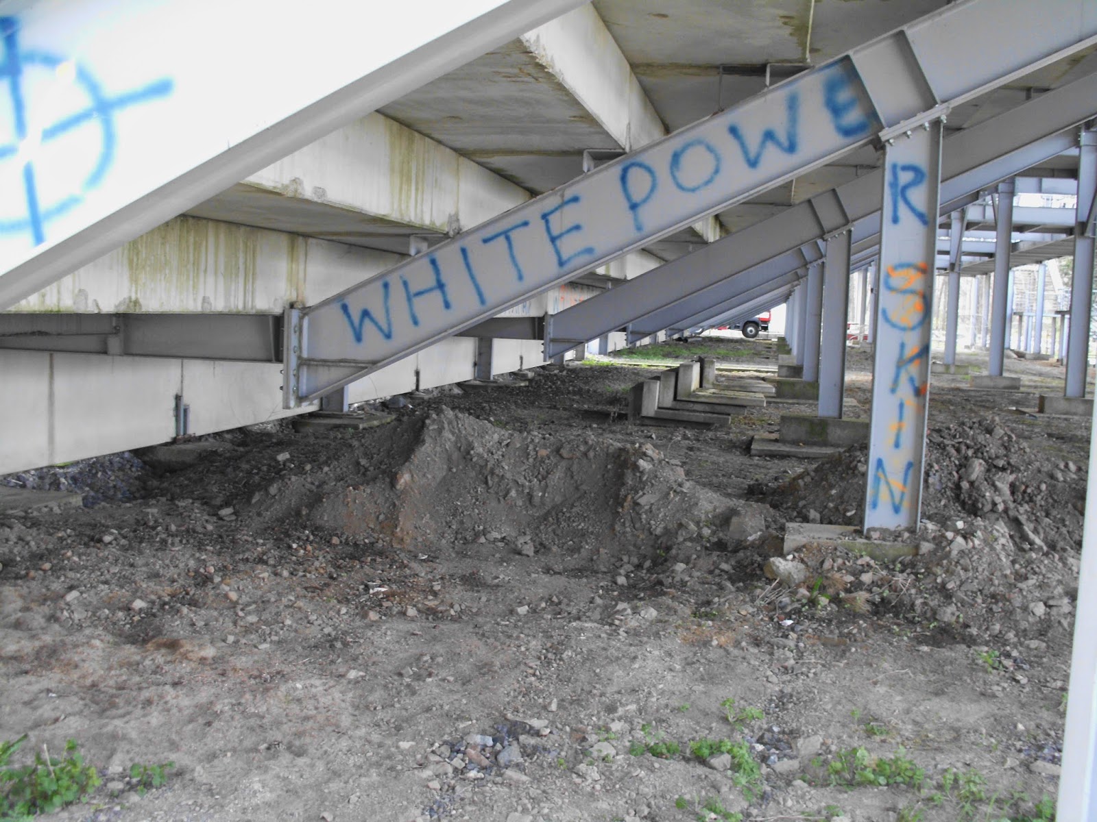 Das erste Tor versäume ich, weil ich kurz vor Halbzeitpfiff nach dem Pissen hinter der Gästetribüne (es gab nichts anderes!) die rechtsradikalen Sprayereien fotografiere. Das 0:2 bekomme ich dafür dann auf der anderen Seite der Haupttribüne gemeinsam mit den Spielerfrauen (?) aus Budweis mit. Pribram gelingt erst in Minute 84 der Anschlusstreffer, für eine Aufholjagd viel zu spät.