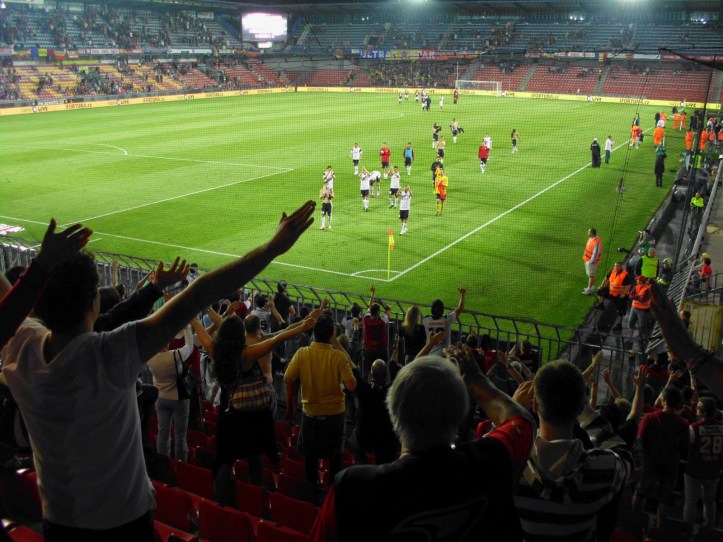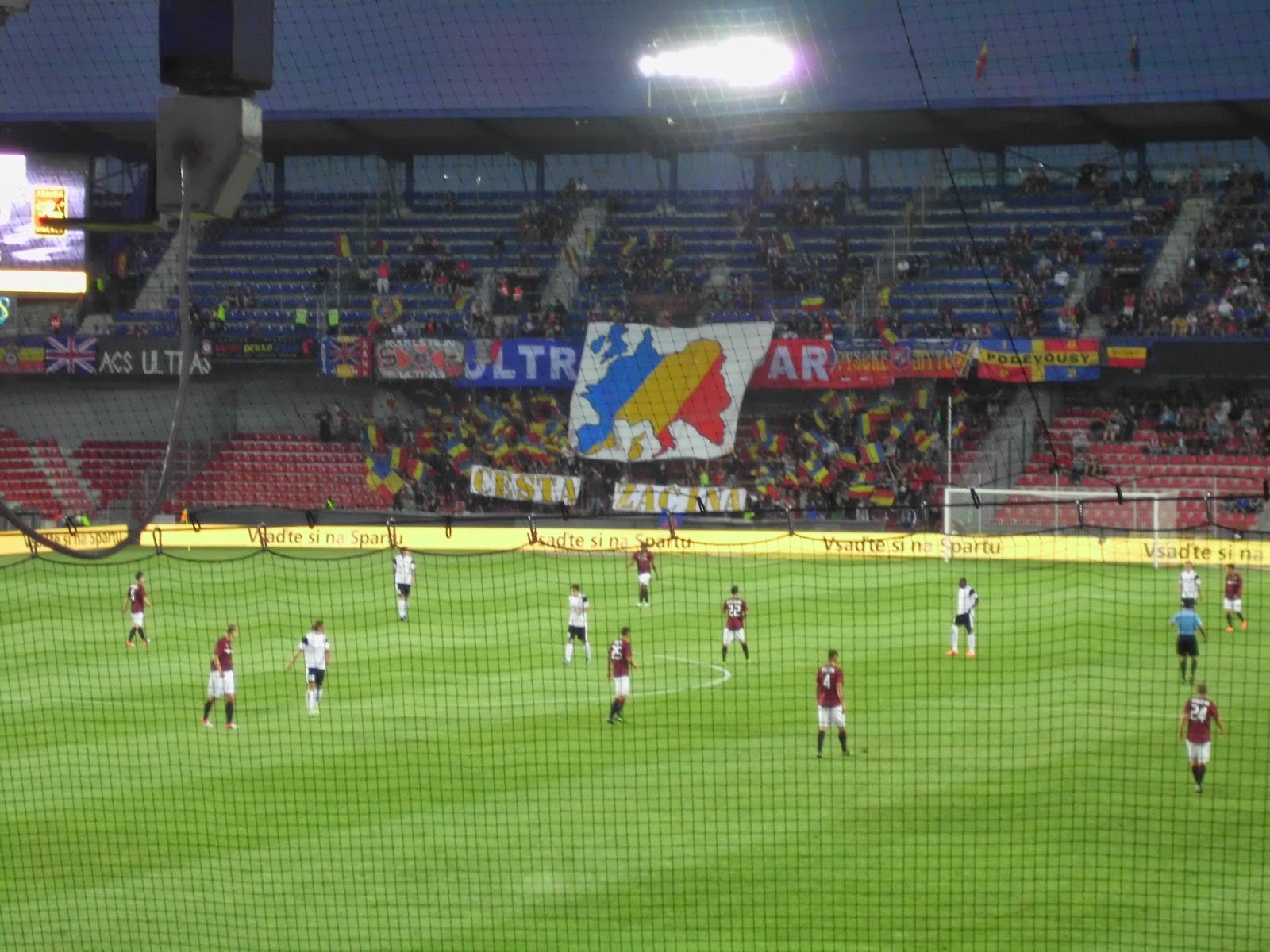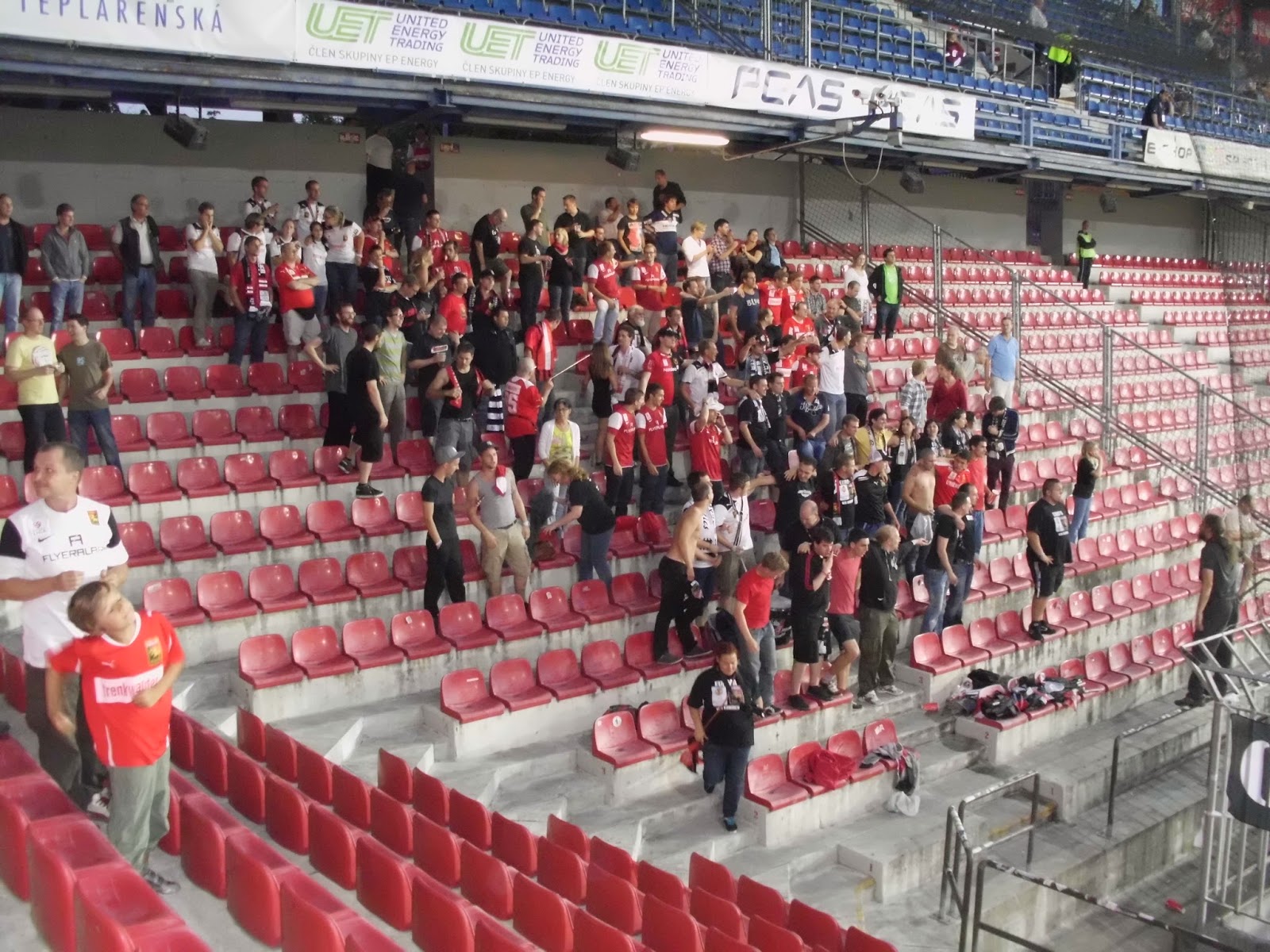 Der Bus – von der Polizei in und aus der Stadt geleitet! – parkt direkt am Stadion. Praktischerweise heißt das alte Letna-Stadion mittlerweile „Generali-Arena“, wodurch die Admiraner mit dem Auswärtsspiel bei der Austria gleich zwei Mal binnen drei Tagen in ebendieser antreten dürfen. 8.732 Zuschauer sind ob des klaren Auswärtssiegs der Spartaner doch nicht wenig, rund 250 Südstädter haben den Weg nach Prag gefunden. Stimmung im Auswärtsblock ist echt ziemlich gut und zeigt, dass sich in den letzten Jahren bei der Admira fankulturmässig einiges entwickelt hat (Auch hier nachzulesen, ansonsten einfach so zusätzlich). Wie schon beim Hinspiel verscheißt die Admira das Match aus eigenen Kräften, nach dem – glücklichen, aber vom Spiel her verdienten – 0:1 reichen den Pragern – unter kräftiger Mithilfe des Admira-Goalies – zwei Minuten, um das Spiel wieder zu drehen.