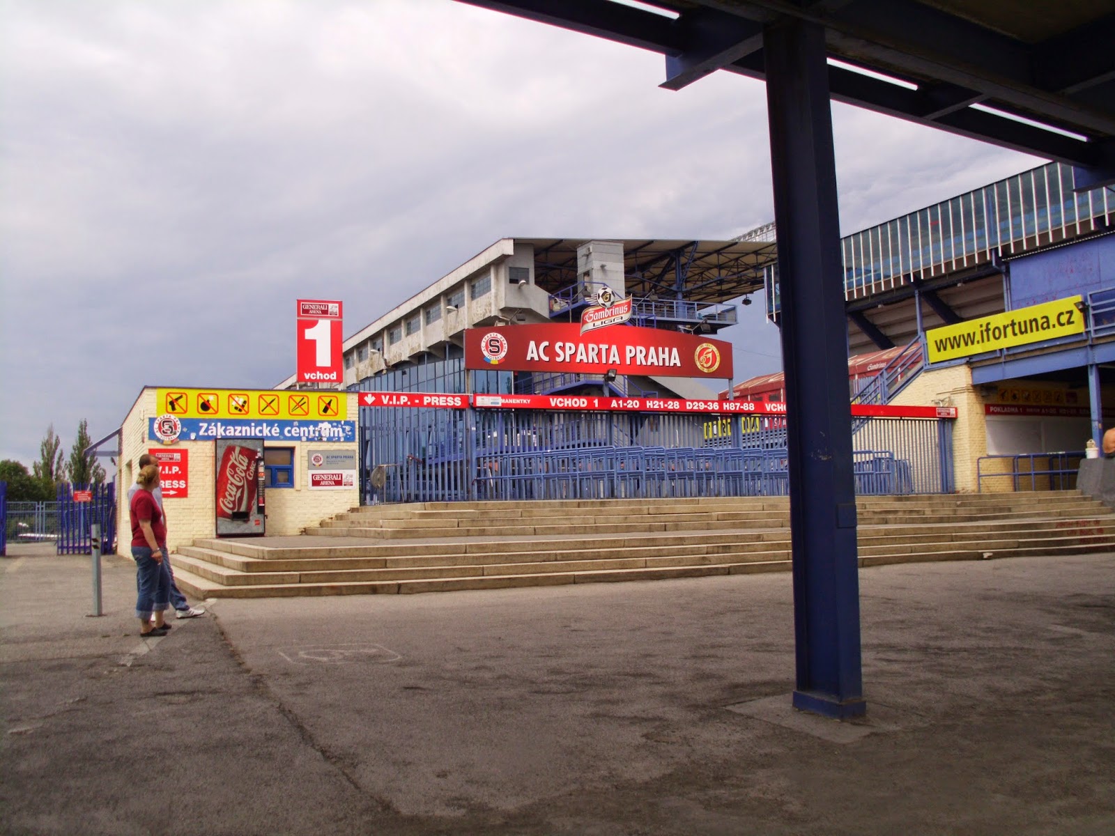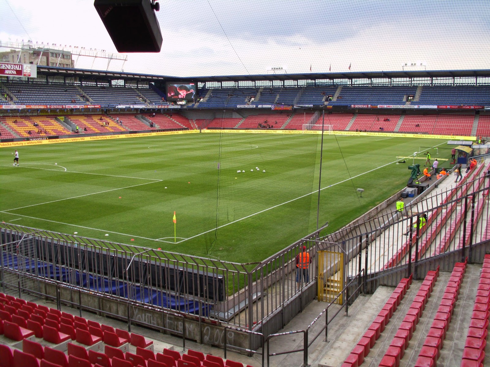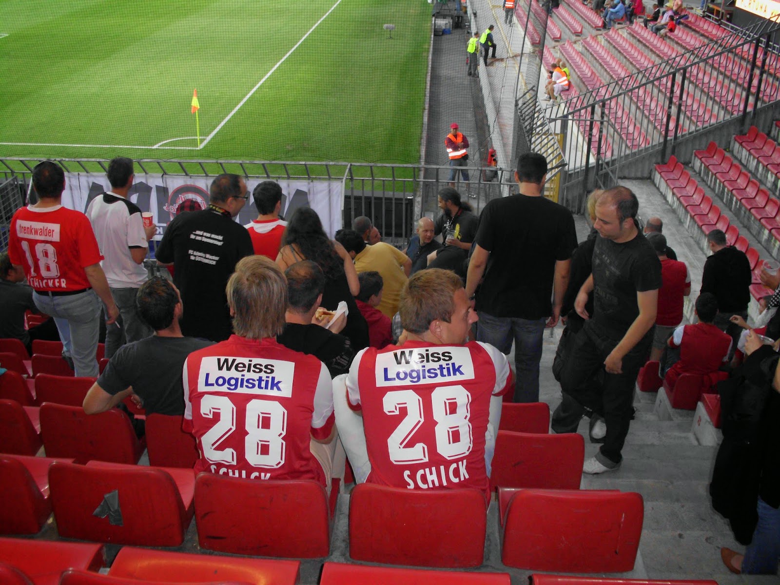 Der Bus – von der Polizei in und aus der Stadt geleitet! – parkt direkt am Stadion. Praktischerweise heißt das alte Letna-Stadion mittlerweile „Generali-Arena“, wodurch die Admiraner mit dem Auswärtsspiel bei der Austria gleich zwei Mal binnen drei Tagen in ebendieser antreten dürfen. 8.732 Zuschauer sind ob des klaren Auswärtssiegs der Spartaner doch nicht wenig, rund 250 Südstädter haben den Weg nach Prag gefunden. Stimmung im Auswärtsblock ist echt ziemlich gut und zeigt, dass sich in den letzten Jahren bei der Admira fankulturmässig einiges entwickelt hat (Auch hier nachzulesen, ansonsten einfach so zusätzlich). Wie schon beim Hinspiel verscheißt die Admira das Match aus eigenen Kräften, nach dem – glücklichen, aber vom Spiel her verdienten – 0:1 reichen den Pragern – unter kräftiger Mithilfe des Admira-Goalies – zwei Minuten, um das Spiel wieder zu drehen.