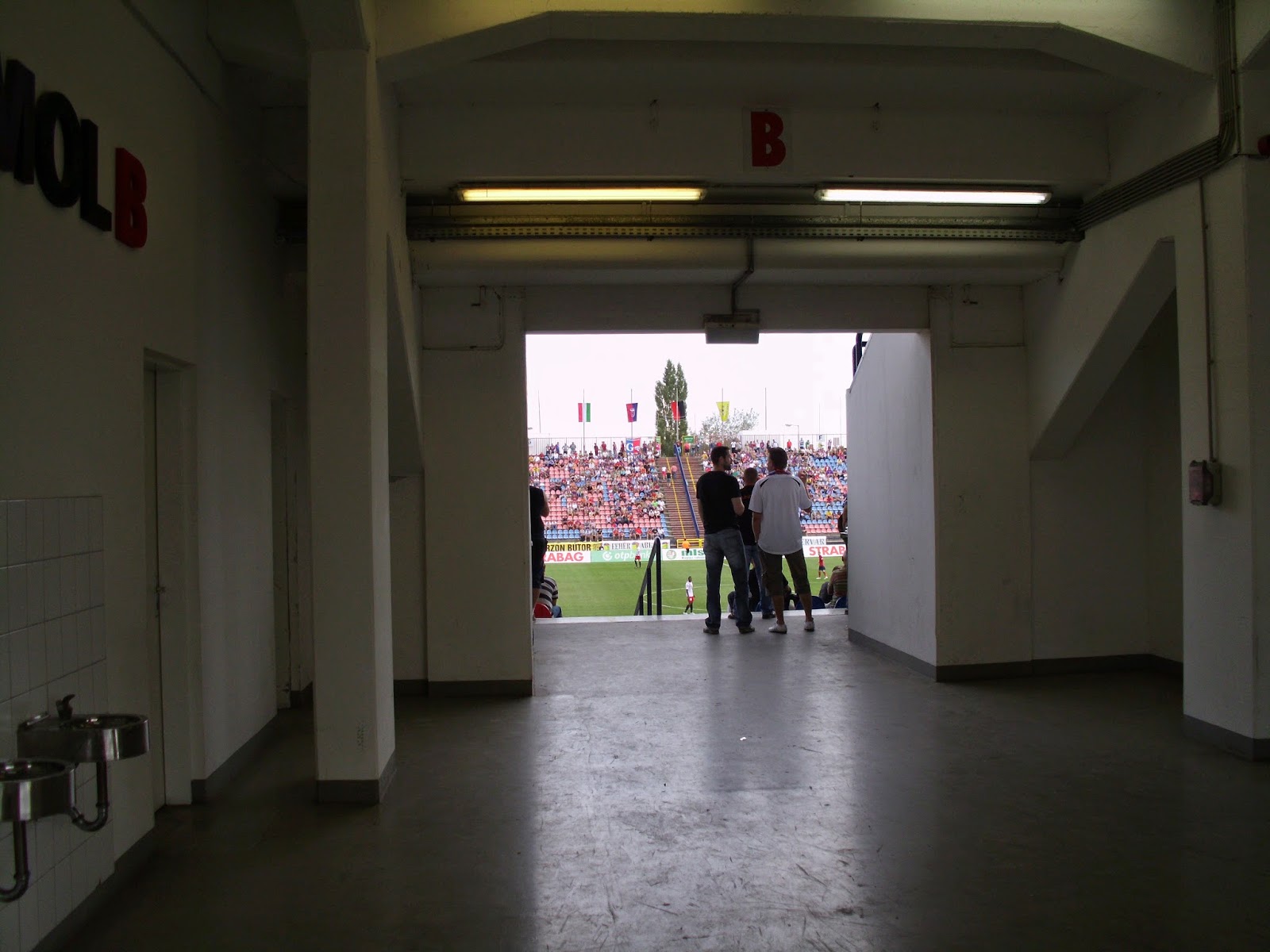 Nach – zumindest am Schluss – etwas entnervender fünfstündiger Zugfahrt komme ich mit einstündiger Verspätung in der etwa 60 Kilometer südwestlich von Budapest gelegenen Stadt an. Irgendwie scheint heut überhaupt nicht mein Tag zu sein: Gepäcksaufgabe geschlossen, WIFI-Cafe nicht offen, und die einzige englischsprachige Person des Bahnhofes versteht zwar, dass ich irgendwie zum Stadion will, kann mir aber nicht sagen, wie ich hinkomme und hat auch keinen Stadtplan in ihrem Shop. So folge ich meinem Gefühl und mache mich einfach mal auf den Weg.