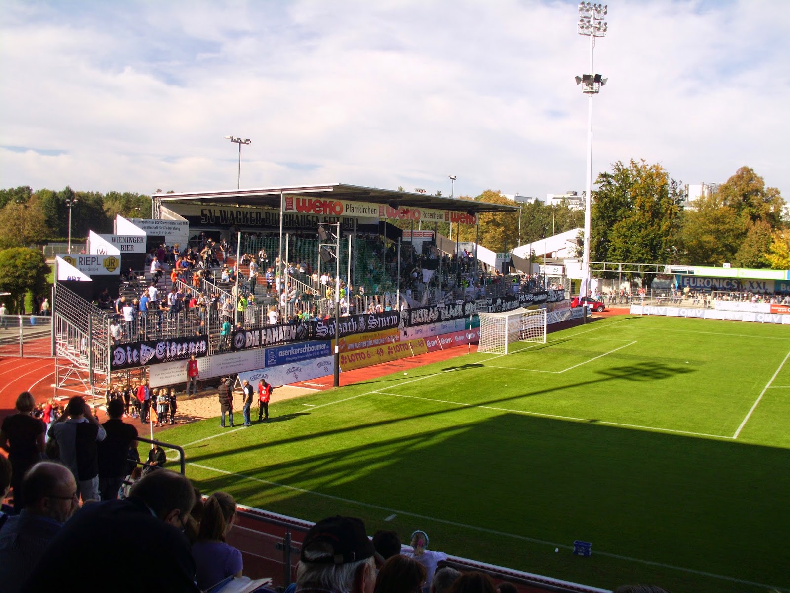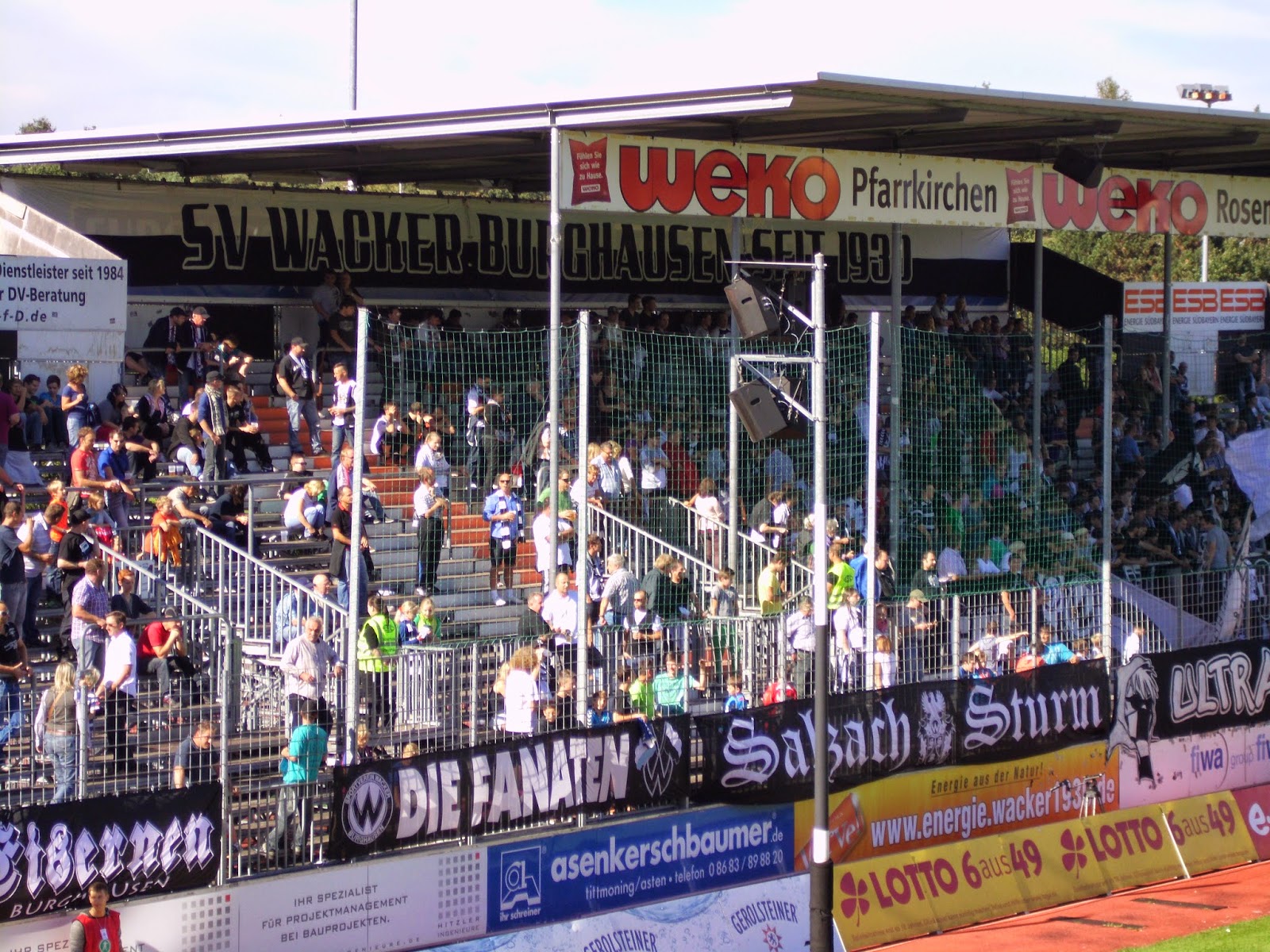 Der Weg zum Wacker-Sportpark ist kurz und führt an einem idyllischen Waldweg vorbei. Das Stadion selbst besteht aus einer großen Haupttribüne und einer Mini-Gegengeraden. Die beiden Fantribünen sind aus Stahl und provisorisch auf der das Spielfeld umgebende Laufbahn errichtet.