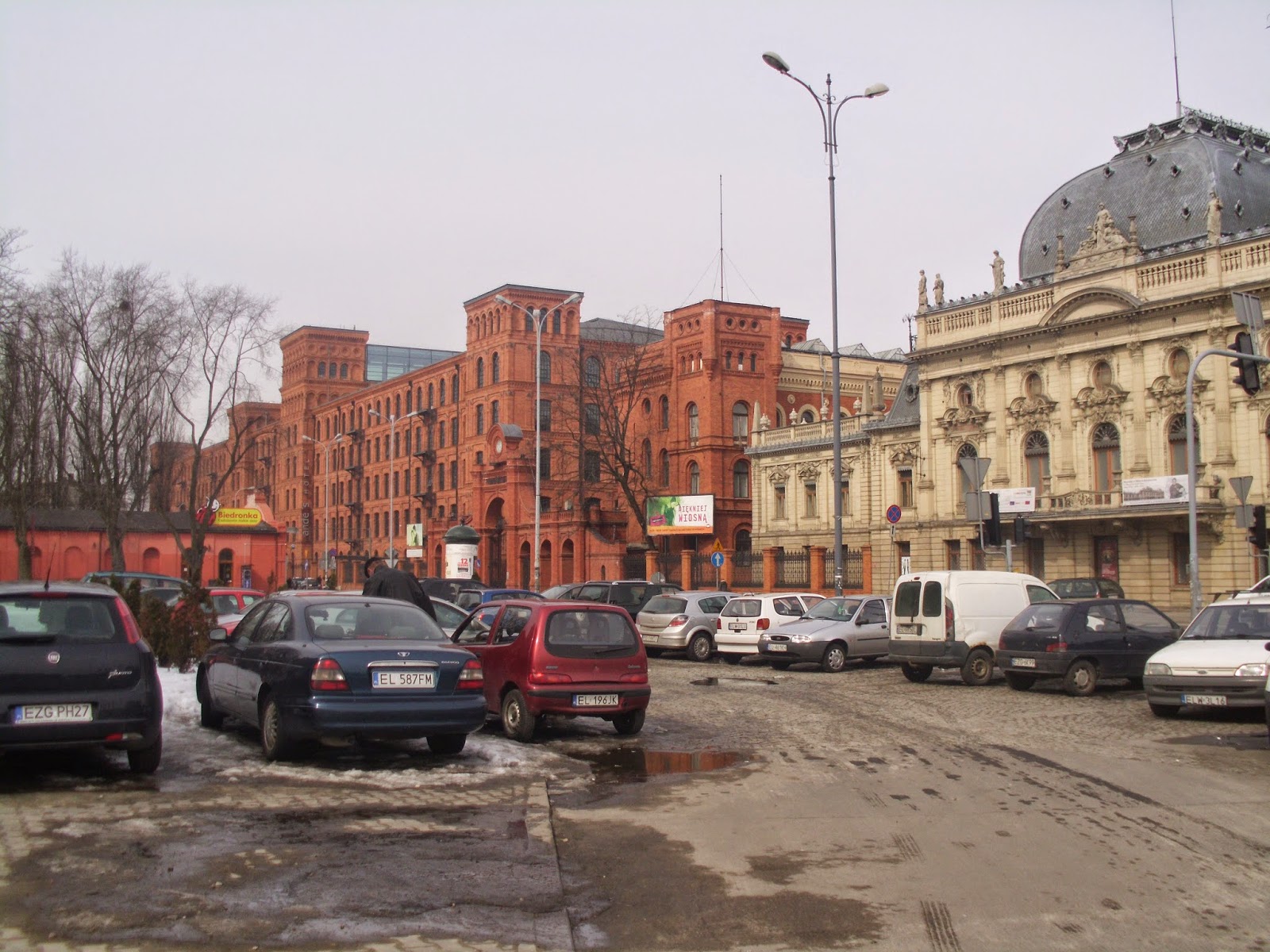 Aus dem wunderschönen Krakau kommend, erleb ich so etwas wie einen Kulturschock: Lodz ist die bei Weitem abgefuckteste Stadt, die mir bisher in Polen untergekommen ist. Einst als Textilmetropole zu Reichtum gekommen, ist heute nicht mehr viel zu sehen, auch wenn die Filmindustrie der Stadt (das nennt sich dann Hollylodz – kein Scherz!) wieder einen Boom verschafft haben soll bzw. hat. Die Fahrt mit dem Zug von Widzew, dem namensgebenden Stadteil des Klubs, nach Kaliska, so etwas wie dem Hauptbahnhof, dauert 20 Minuten, was den – falschen – Eindruck erweckt, dass ich in einer Riesenmetropole ohne wahrem Zentrum gelandet bin.