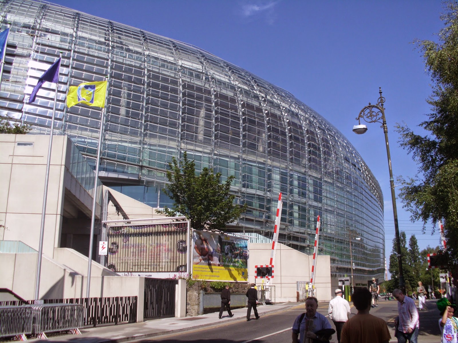 Das Aviva Stadium befindet sich im Südosten der Stadt und ist bereits zu sehen, wenn man mit dem Airportbus nach Dublin kommt. Die unausgeglichene Form sticht sofort ins Auge und ist ei. markantes Merkmal, wenn es auch insofern etwas komisch ist, weil dadurch die Auswärtsfans einen als sehr lächerlich zu bezeichnenden Sektor zur Verfügung haben. Während die Arena vom Norden sehr gut zu sehen ist, so versteckt sie sich, wenn man aus dem Stadtzentrum kommt, sehr geschickt hinter den nicht gerade hoch in den Himmel ragenden Dubliner Häusern – ein echtes Kunststück.
