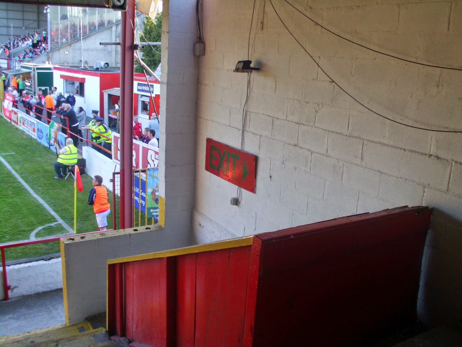 Knapp eine Stunde nach dem Abpfiff bei den „Saints“ geht’s im Nordosten der Stadt wieder weiter, Shelbourne ist dabei aber ein bedeutend kleinerer „Zuschauermagnet“. Das Heimstadion Tolka Park ist eine bunte Zusammenwürflung diverser Tribünen, aber insofern historisch, als es Irlands erster All-Seater war. Von dem damaligen Ausbaumaßnahmen ist mittlerweile aber nur mehr wenig zu sehen, sehr viel hier ist ziemlich baufällig, wenn auch durchaus nett.