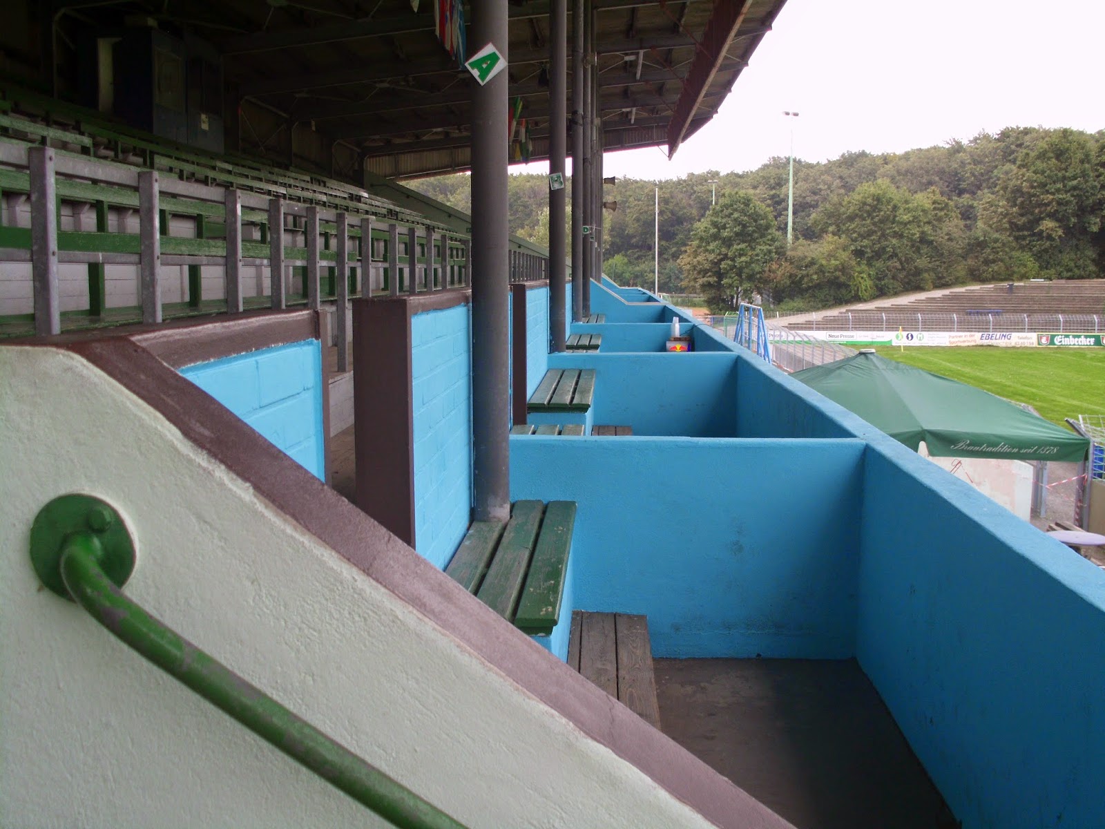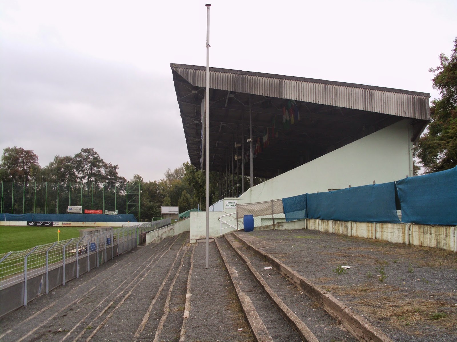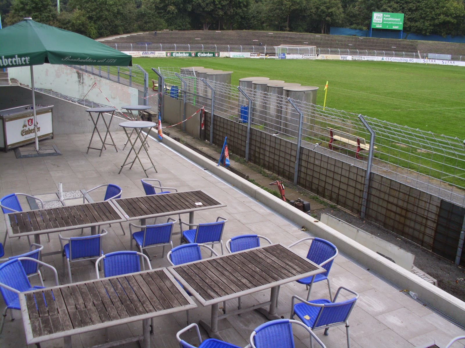 Die zweite Liga ist das höchste der Gefühle, das die Arminia jemals erleben dürfte, derzeit kickt sie in der Landesliga. Das Rudolf-Kalweit-Stadion befindet sich im Osten der Stadt und ist für einen Landesligisten doch ganz ordentlich. Die überdachte Haupttribüne, größtenteils mit Holz verkleidet (!), ist umgeben von dahindämmernden Stehplatzrängen, die von der grösseren Vergangenheit zeugen. Seit der Nachkriegszeit spielen die 1910 gegründeten „Blauen“, deren Fanartikel und eigentlichen Vereinsfarben aber schrägerweise grün sind, hier.