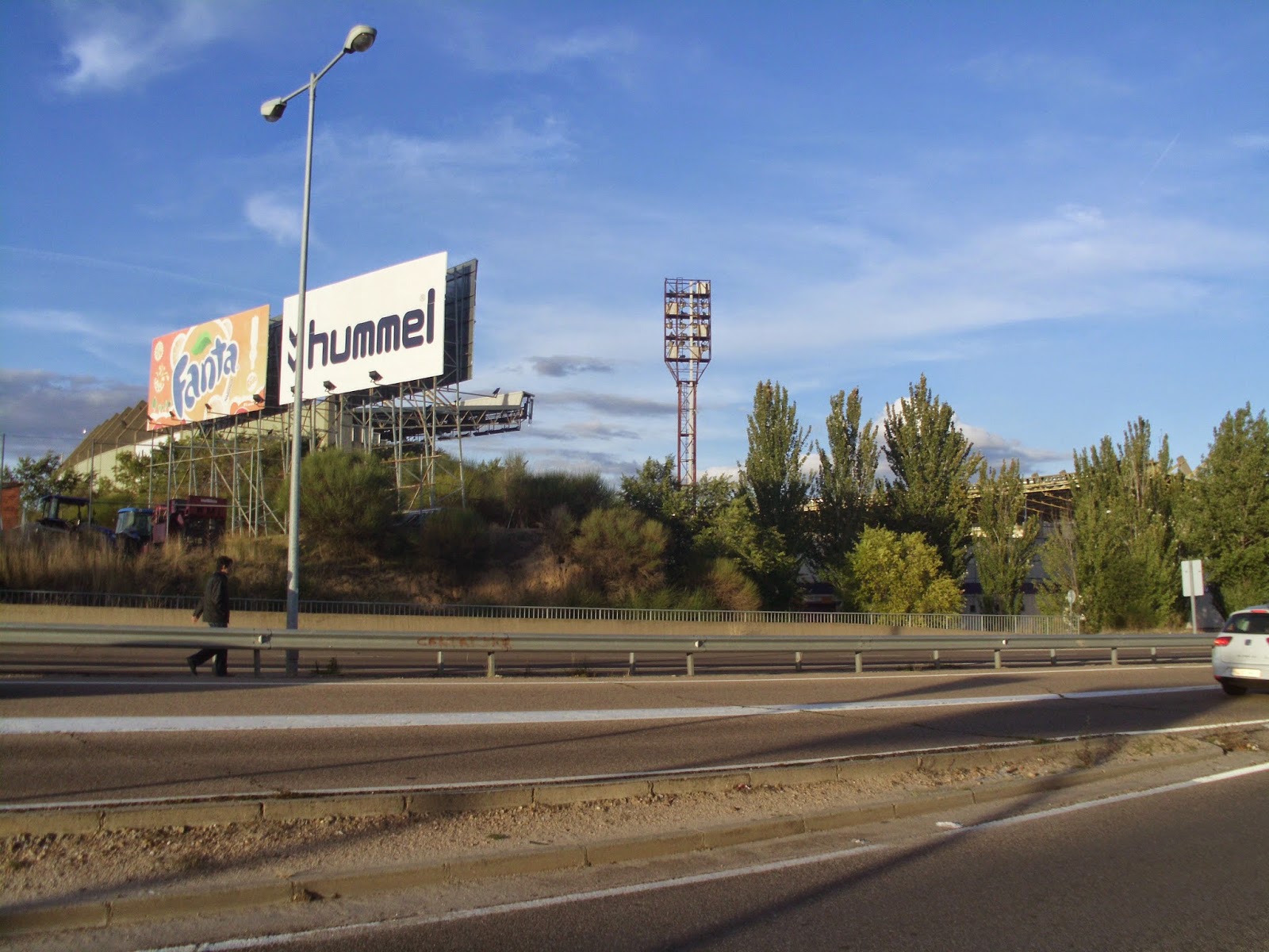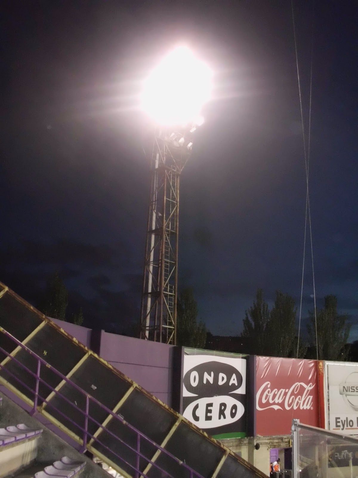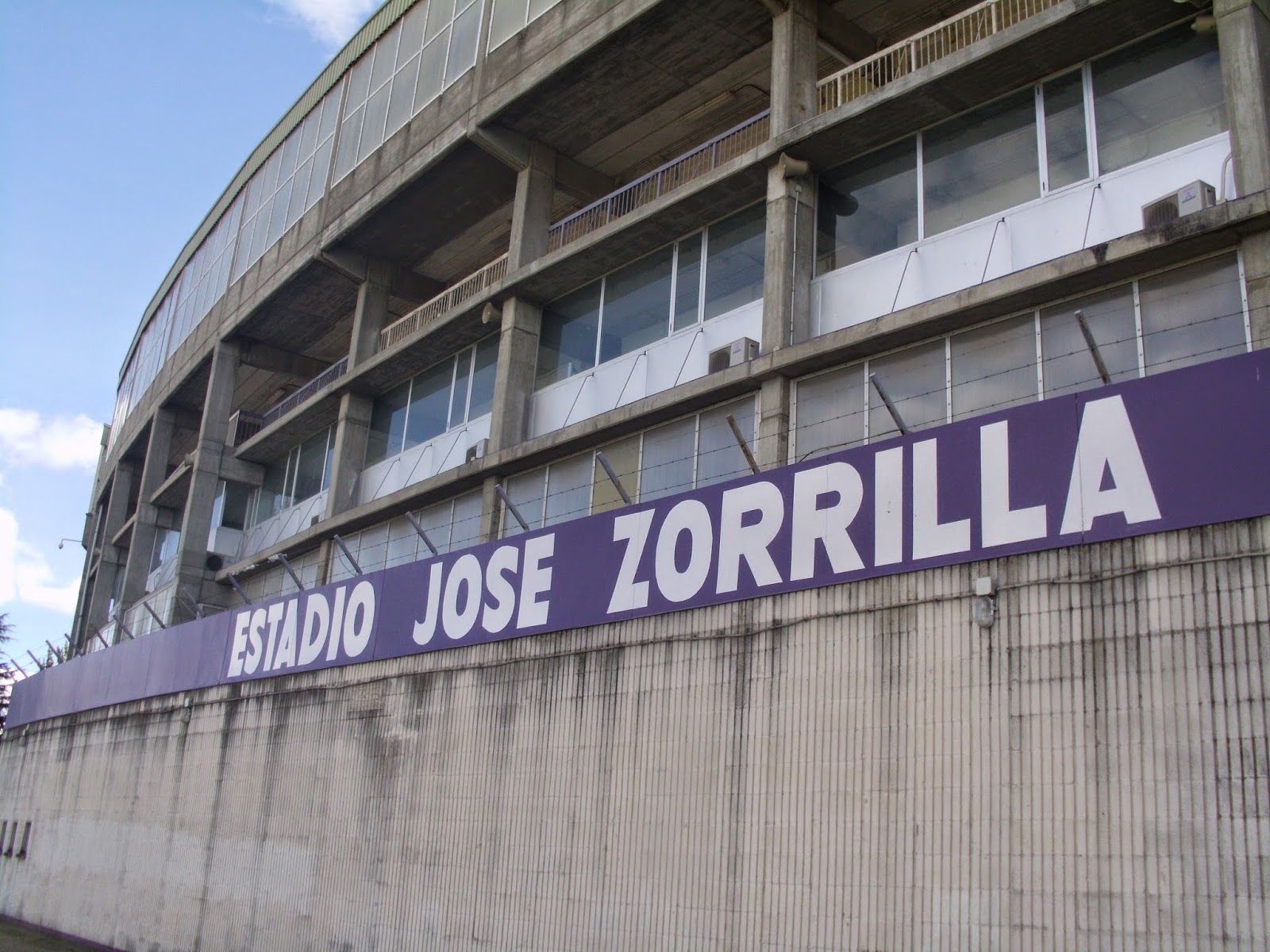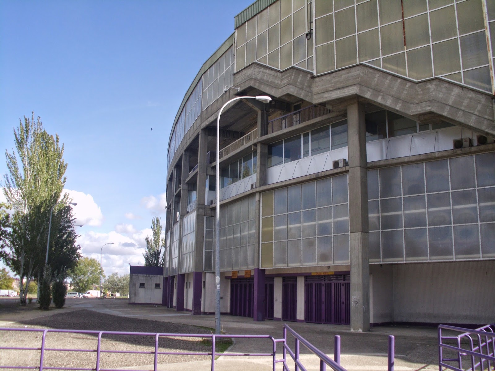 Für das sonntägliche Spiel der Primera Division begebe ich mich rund 180 km nordöstlich von Madrid. Das Nuevo Estadio Jose Zorrilla befindet sich rund vier Kilometer außerhalb des Stadtzentrums und ist schon sehr bald zu sehen, weil es sich auf einer Hügelkuppe befindet. Direkt daneben ist ein riesiges Einkaufszentrum, auf dessen Parkplatz entweder die Weihnachtsbeleuchtung bereits wieder hängt oder diese sicherheitshalber gar nie abgeräumt wurde. Zudem steht um die Ecke auch noch ein wohl vor der Immobilienkrise errichtetes schmuckes Kulturzentrum. Die Stadt selbst ist eher unauffällig, über weite Strecken reiht sich Plattenbau an Plattenbau. Etwas außerhalb der City sind dann einige neue Wohnblöcke errichtet worden, aufgrund des sehr schmalen Verkehrsaufkommens würde ich allerdings darauf tippen, dass nicht allzu viele Menschen hier auch tatsächlich leben.