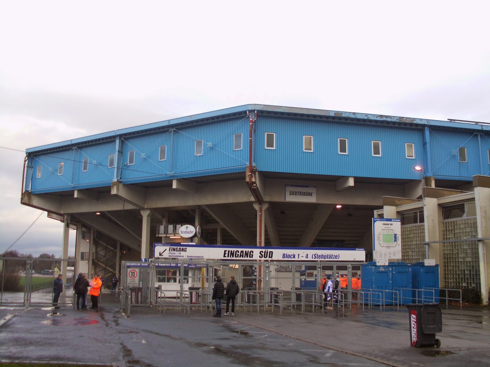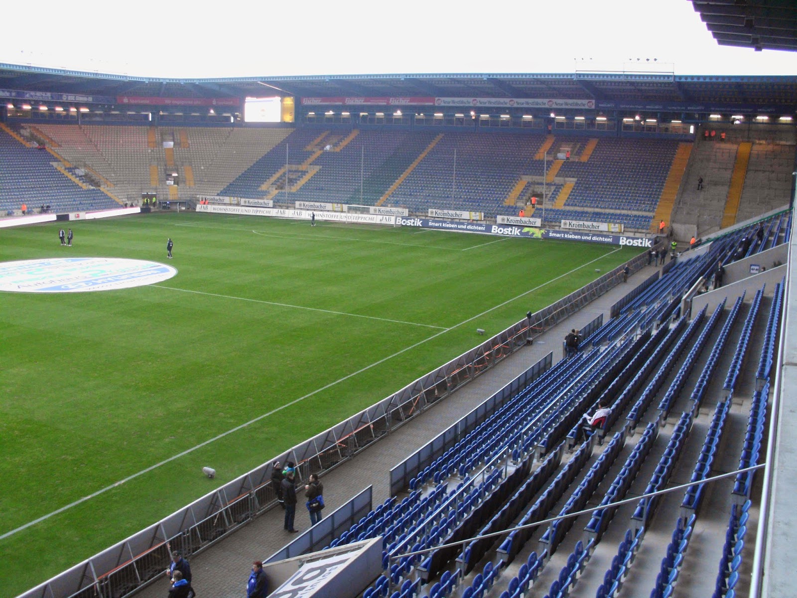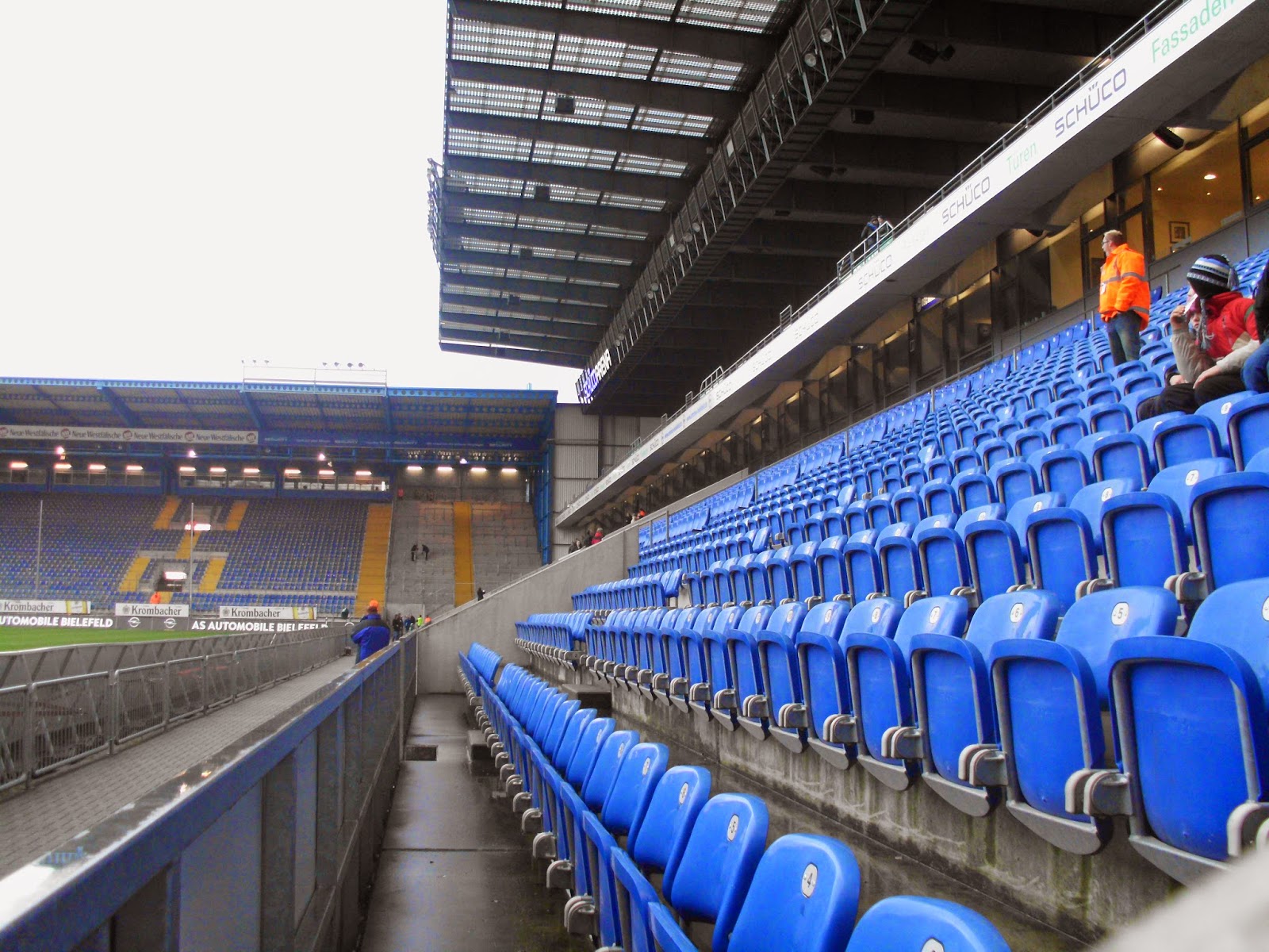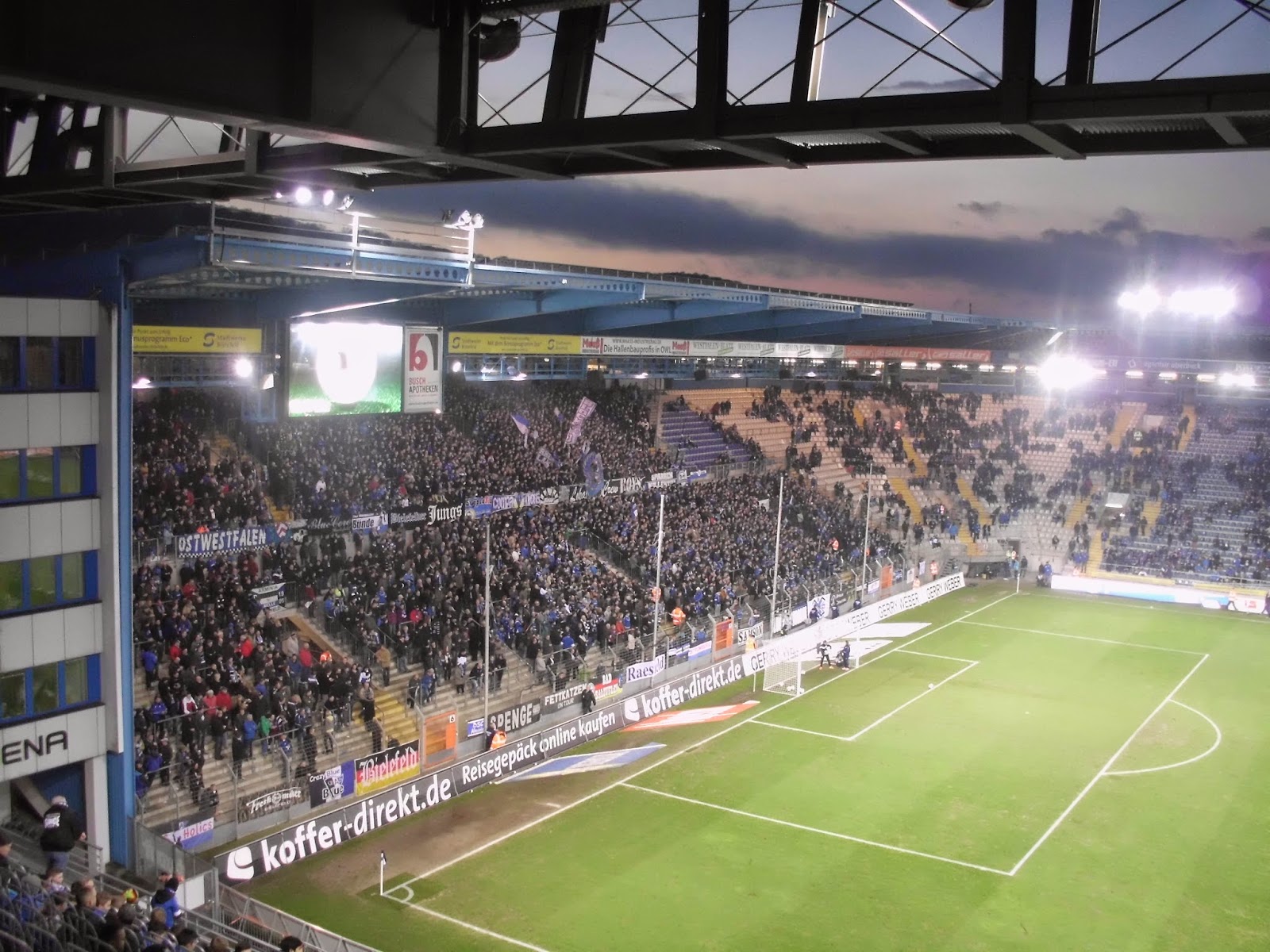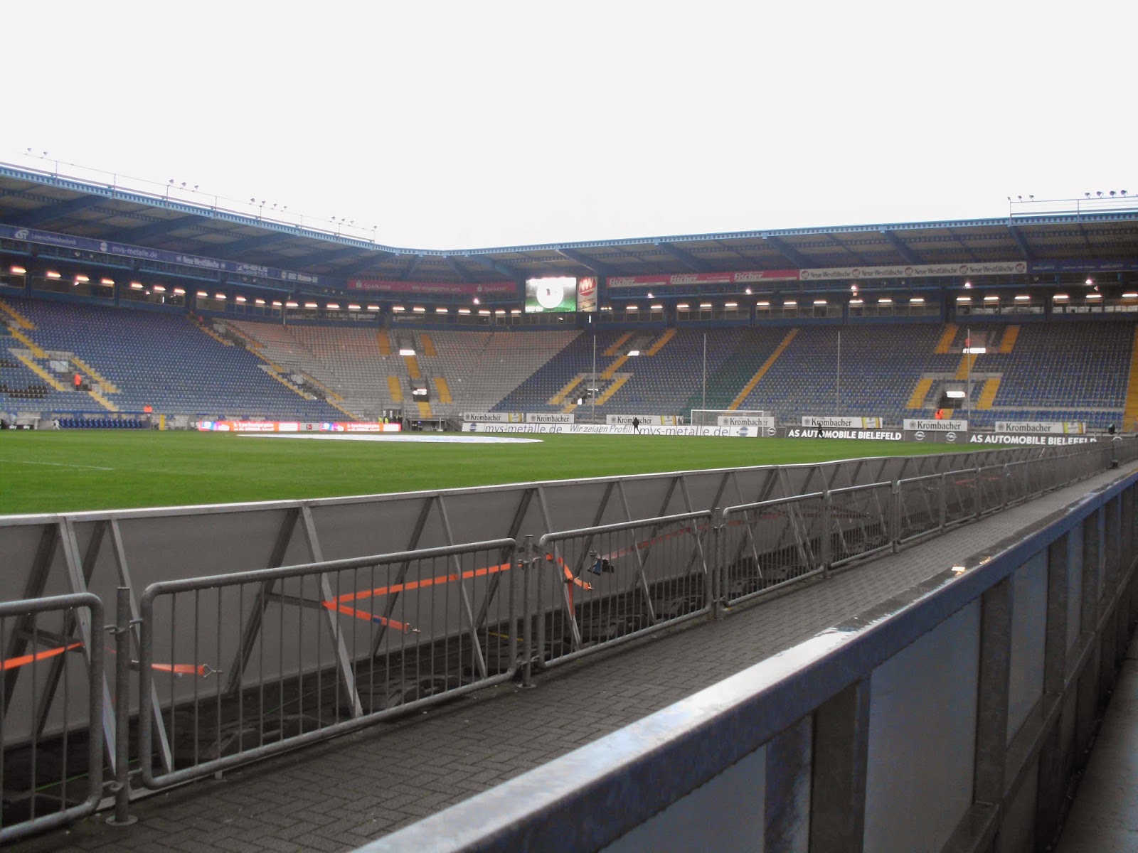 Die „Alm“ – mittlerweile „Schüco Arena“ genannt – ist insofern noch was besonderes, weil sie mitten in einem Wohngebiet steht. Hier wurde mal nicht der Weg des Neubaus irgendwo am Stadtrand gewählt, sondern das seit 1926 an dieser Stelle befindliche Stadion erneuert, 2008 zum letzten Mal. Vier Jahre davor wurde auch der Sponsordeal abgeschlossen und das Stadion umbenannt. Das ist aber wohl immer noch besser, als jene Idee des ehemaligen Sponsors Milka, der den Rasen – soweit ich weiß durchaus ernst gemeint – schon mal lila färben wollte. Selbst für radikale Anti-Grüne wie mich dann doch eher ein No-Go.
