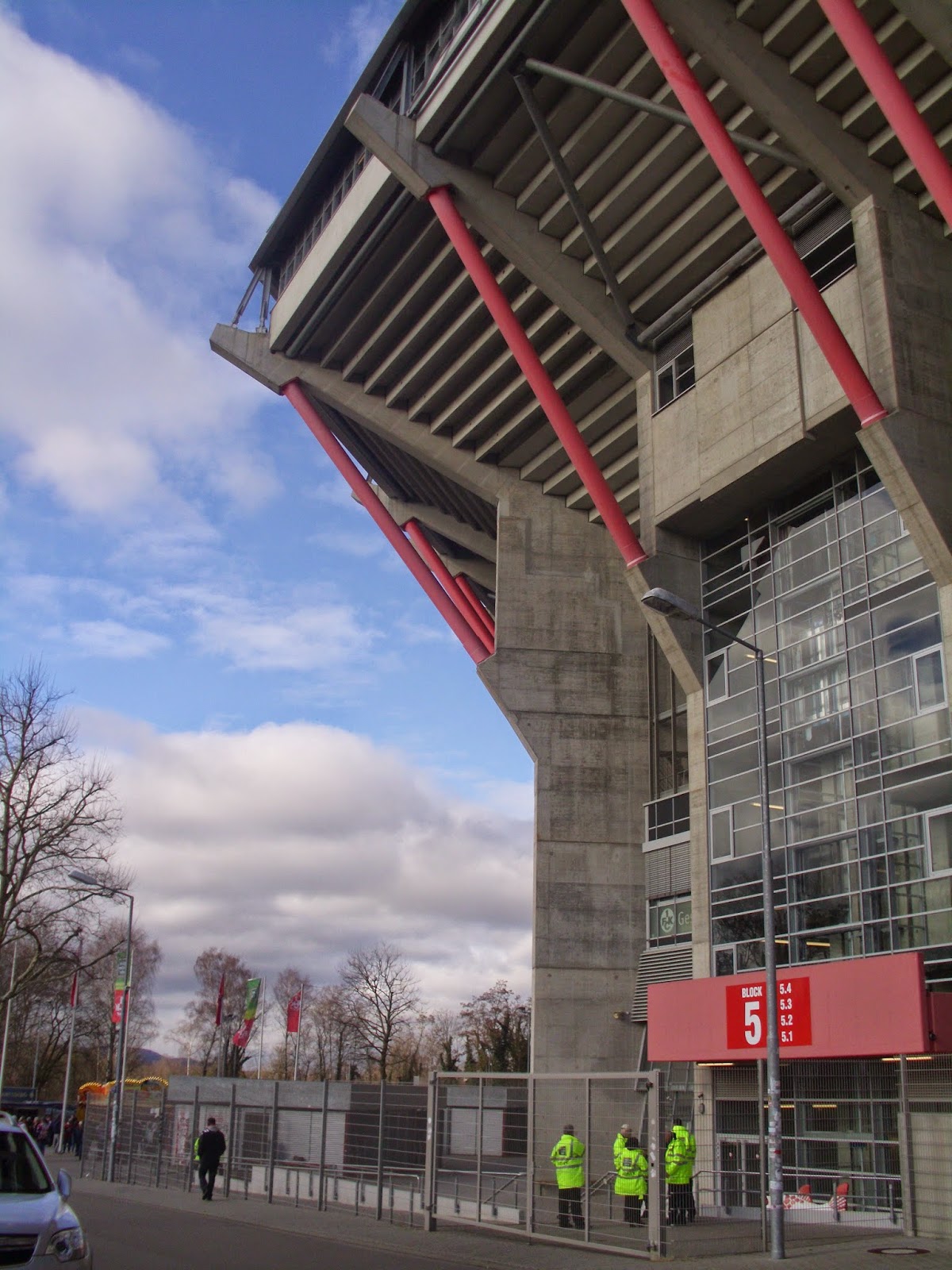 Nach rund fünfminütiger, ehrfürchtiger Annäherung „von unten“ steht man auch vor den Toren, das Ticket für 21,50 Euro zahle ich mit Freuden. Auch hier schwirren rund ums Stadion Dosen- und Pfandflaschensammler herum, meine leere Wasserflasche spendiere ich einem eher lustiges, denn gutes Deutsch sprechendem Oldie, der mir dafür vor lauter Freude sein Goldzahngebiss präsentiert.
