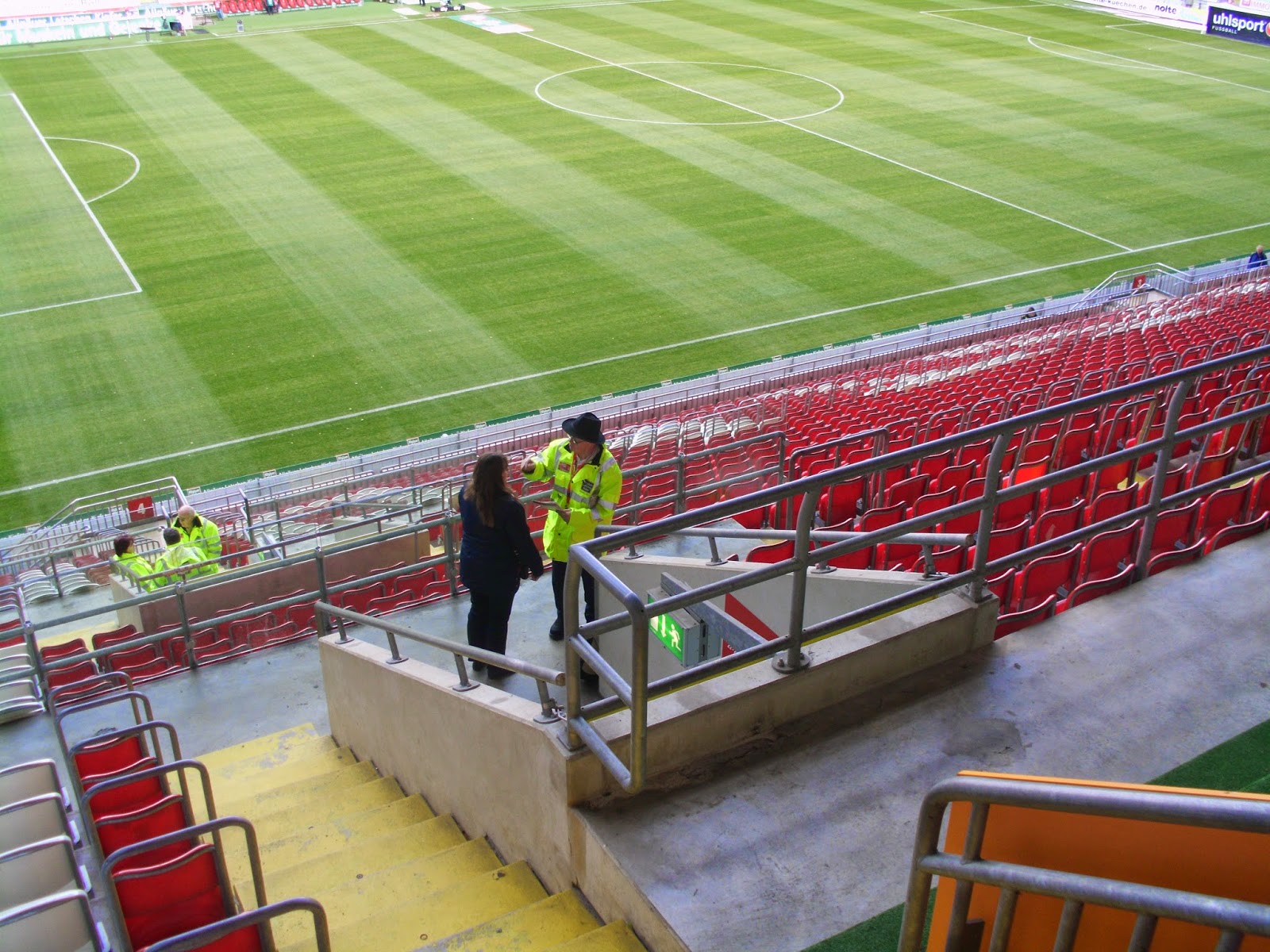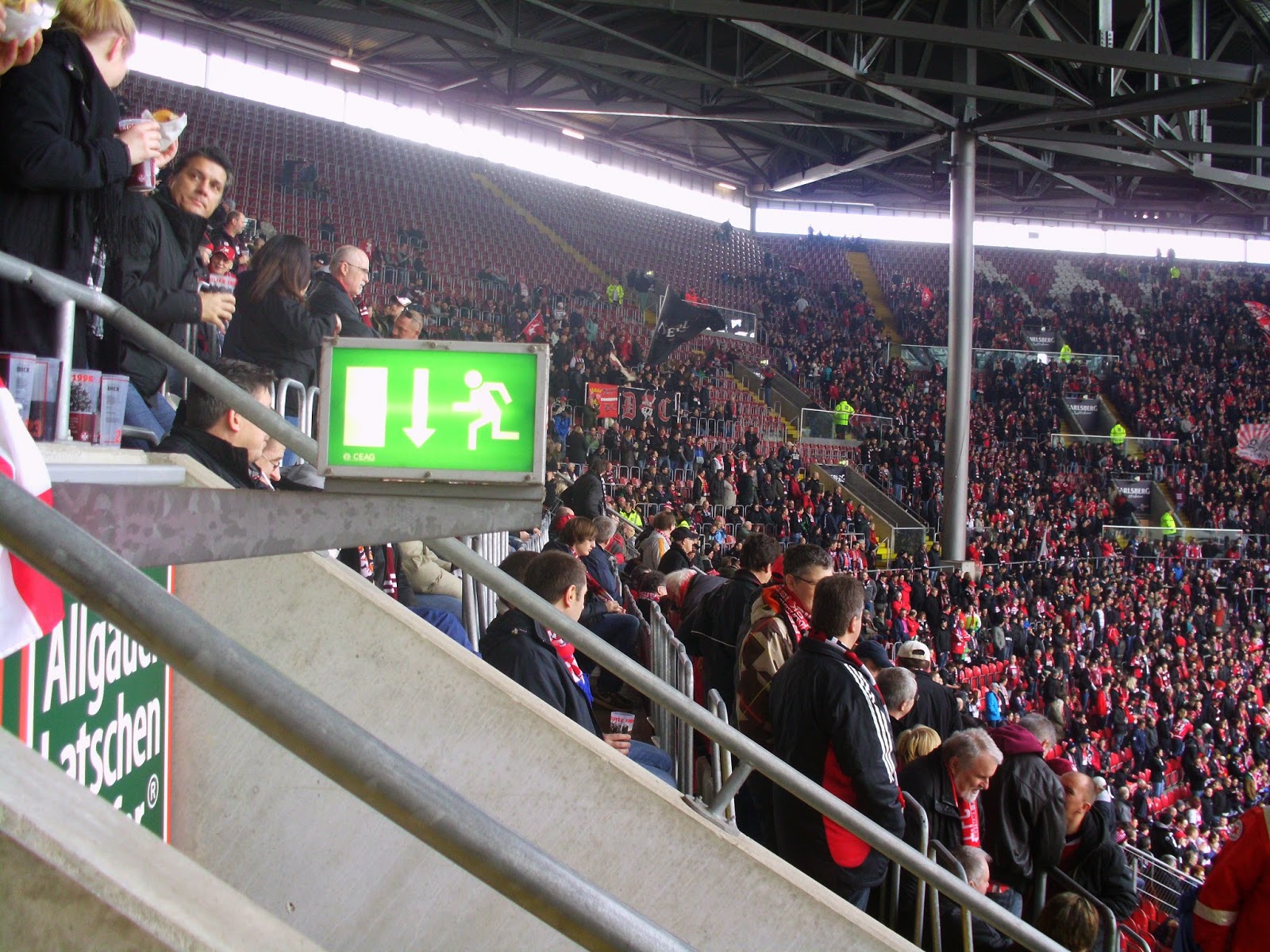 Dem Spielverlauf entsprechend geht auch die Stimmung mit der Zeit den Bach runter. Zu Beginn zeigt sich allerdings, wie laut die Roten Teufel werden können, wenn sie wollen. Wenn dann noch doppelt so viele Zuschauer in einer ausverkauften Arena sind, muss es hier echt ordentlich rocken.