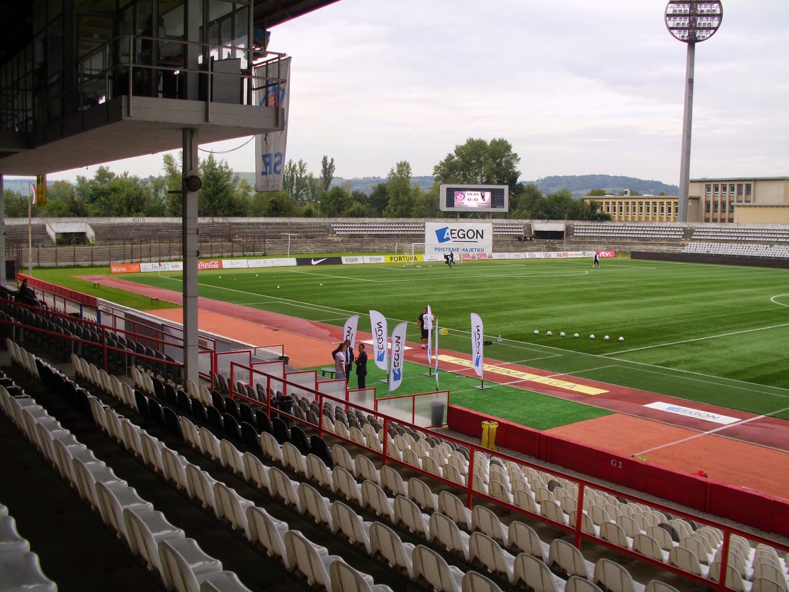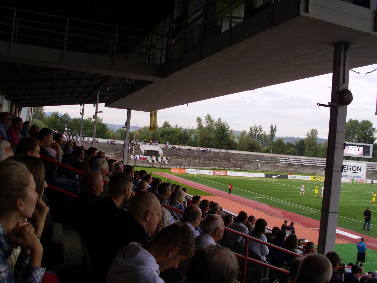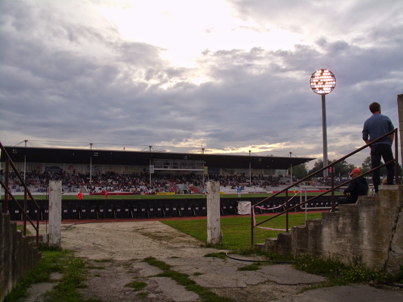 Das Mestsky Stadion bzw. Stadion na Sihoti ist nicht nur aufgrund der Flutlichtmasten typisch Marke Ostblock, was ihm allerdings in keinster Weise den Charme absprechen soll. Erstens ist teils die Aussicht auf die Burg schlicht sensationell, zweitens geizt auch die Haupttribüne nicht mit Reizen. Eher zurückhaltend sind wenn dann eher die Heimfans, die fast nur bei guten Szenen und Toren mitgehen. Ab und an feuern sie die Mannschaften immerhin mit Klatscheinlagen an. Organisierter supporten da schon die Myjava-Anhänger, allerdings sind nur knapp zwei Dutzend mitgekommen.