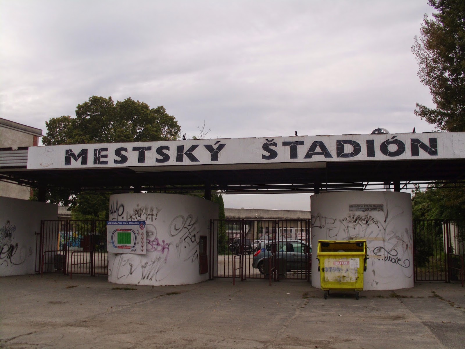 Am späten Nachmittag geht’s dann zum zweiten dominanten Bauwerk, dem Stadion. AS Trencin wurde erst 1992 gegründet und spielt in den letzten Jahren richtig gut in der slowakischen Liga (die nach meinem letzten Besuch übrigens von Corgon Liga auf Fortuna Liga umbenannt wurde) richtig gut mit. Vom Zuschauerschnitt ist AS mit 2.899 Fans knapp auf Platz zwei. Eingerahmt wird es mit Dunajska Streda (2.958) und Spartak Trnava (2.790) von genau den beiden Vereinen, die ich bisher als einzige in dem Land besucht hab.