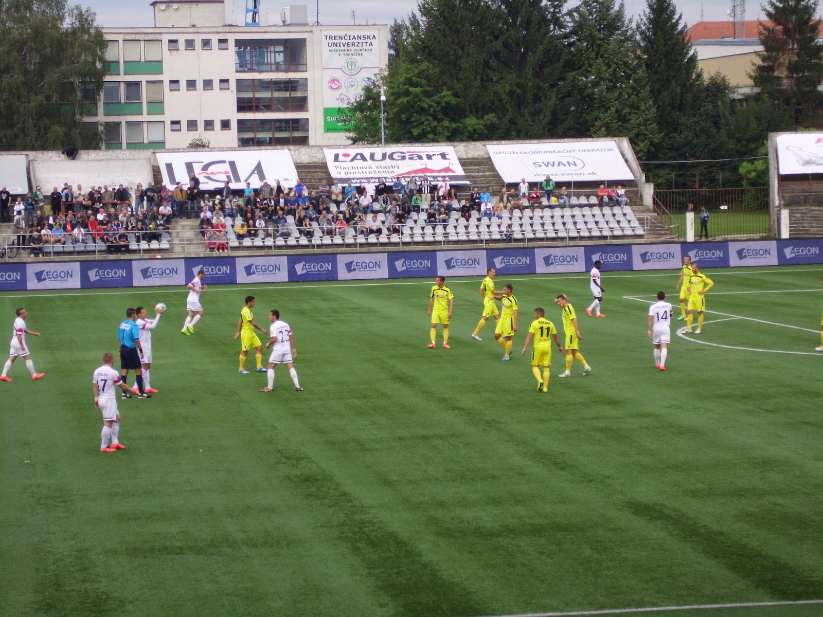 Das Spiel ist unterhaltsam, wenn auch nicht besonders anspruchsvoll. Die Gastgeber sind fast durchgehend überlegen, der wohl – bereits von einem Arbeitskollegen so empfohlene – beste Spieler Trencins, Moses Simon, bringt das Team in Führung. Nach dem 2:0 in der 75. Minute schaut es sogar kurz so aus, als ob die Gäste nun vollständig auseinanderbrechen, es bleibt allerdings beim 2:0. Trencin kann damit seinen Platz an der Tabellenspitze festigen.