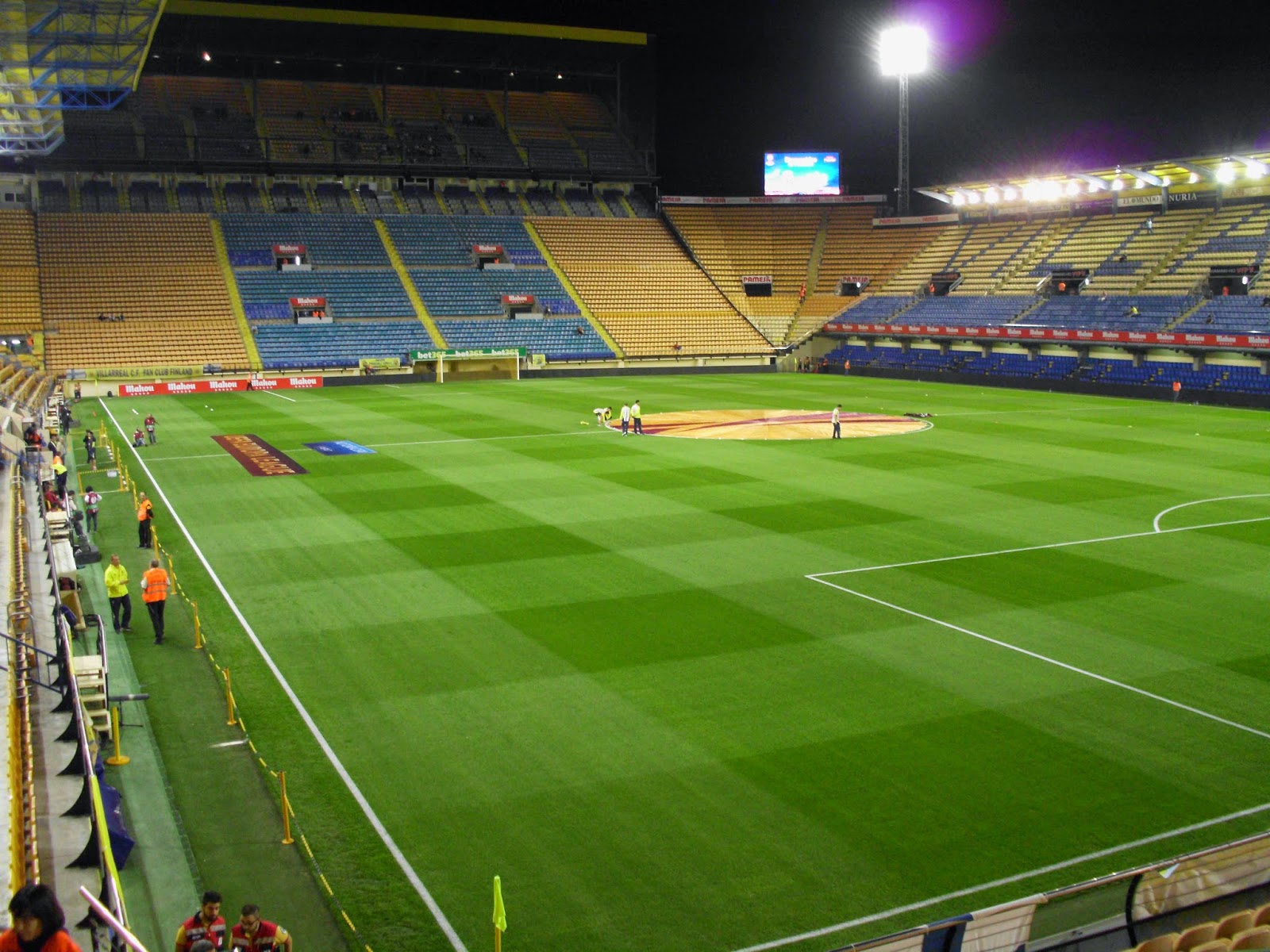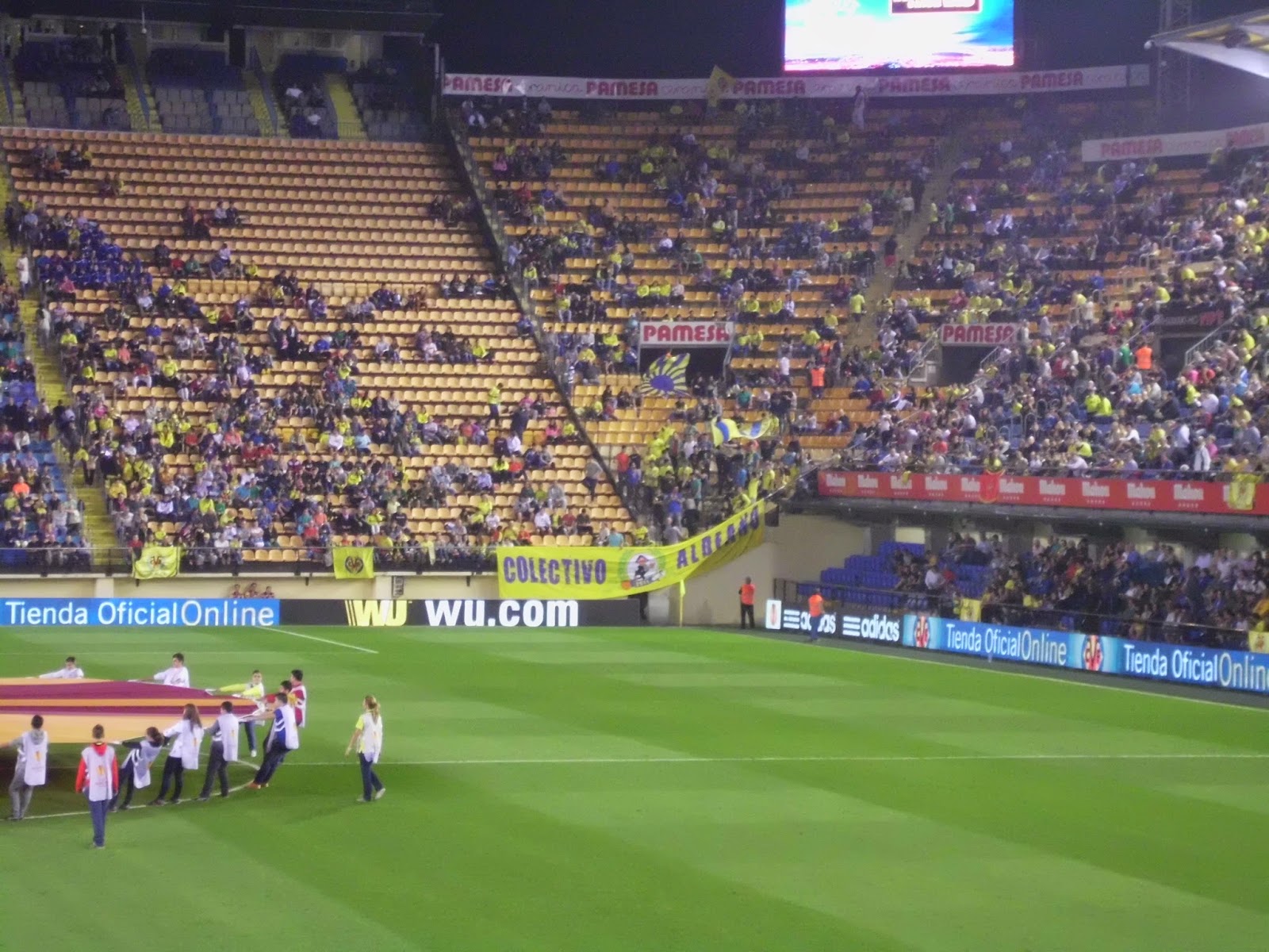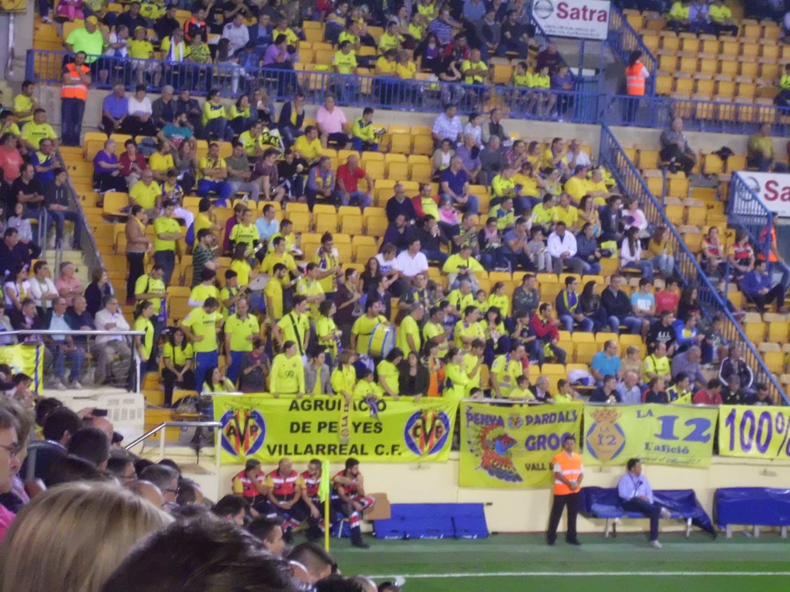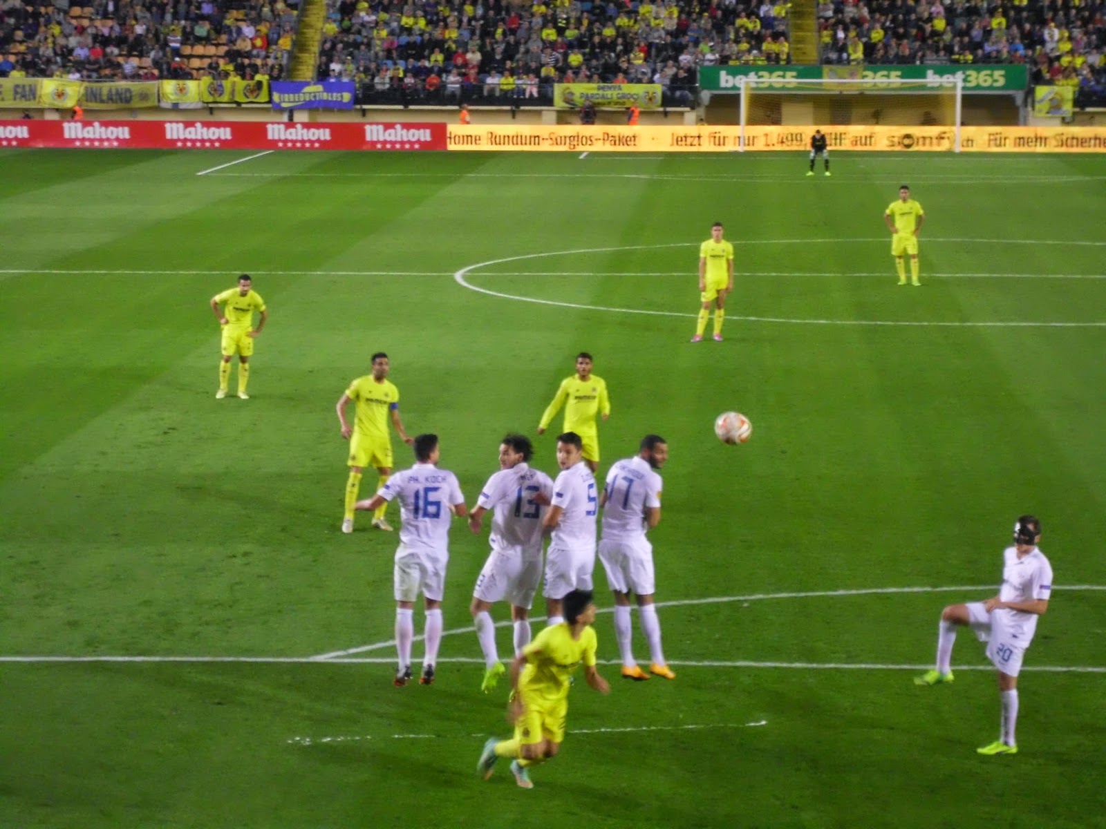In der Stadt selbst dominieren vorerst die Fans des FC Zürich, die die Plaza mayor ganz für sich in Beschlag genommen haben und dort dem Fußballspiel, aber auch dem Freistil-Ringen (unter dem Applaus der anderen Fans) frönen. Fans des „submarino amarillo“ (also des gelben U-Boots) tauchen erst spät vor dem Stadion auf, insgesamt lässt der Besuch sowieso sehr zu wünschen übrig – aber bei EL-Spielen halt ein typisch spanisches Phänomen, zumal auch noch in einer so frühen Phase. Das mag zum Teil auch an den (selbst im Vergleich zur Liga) geschmalzenen Preisen liegen. Für das zweitbilligste Ticket auf der Fondo sur zahle ich 40 Euro.