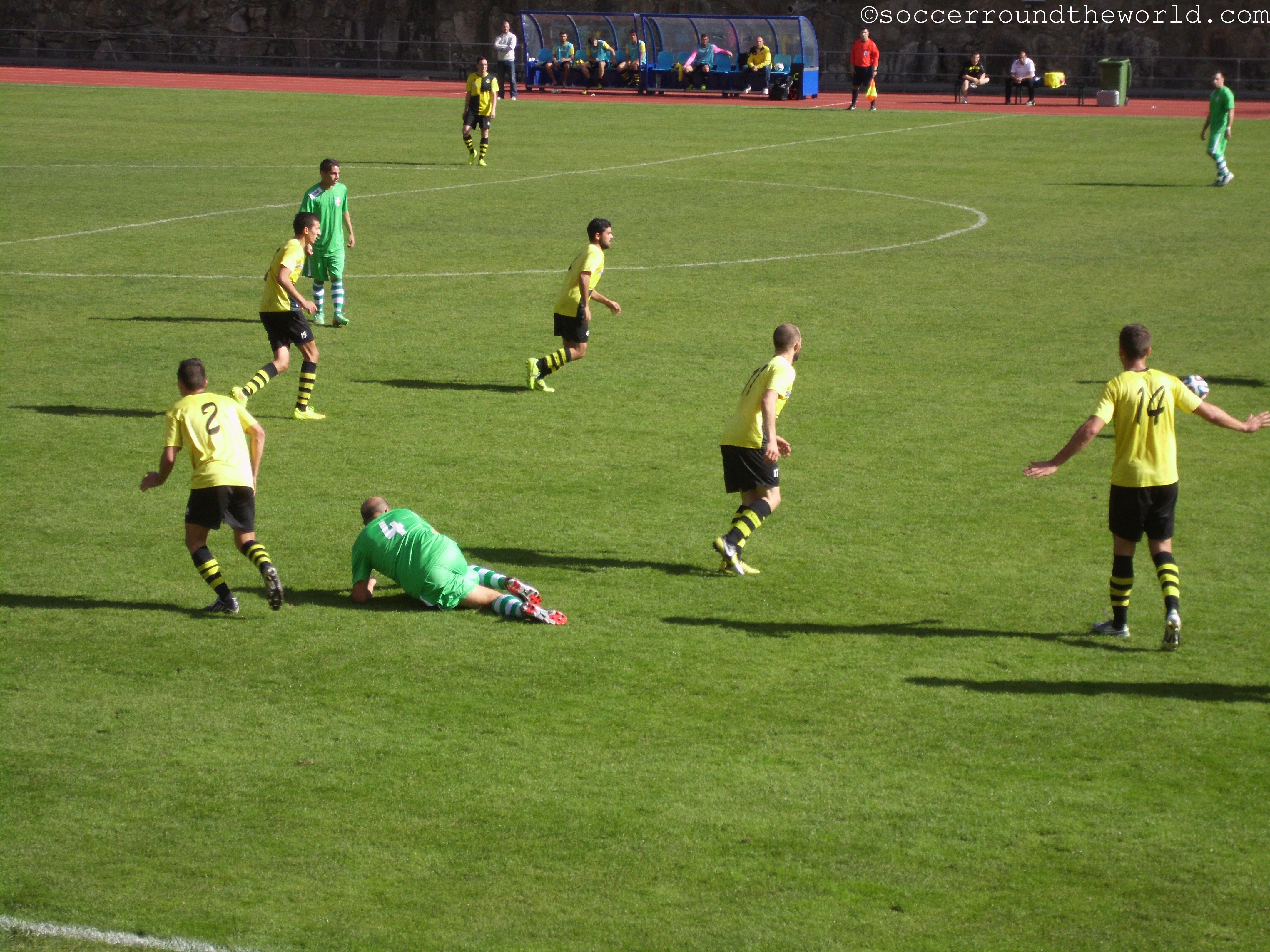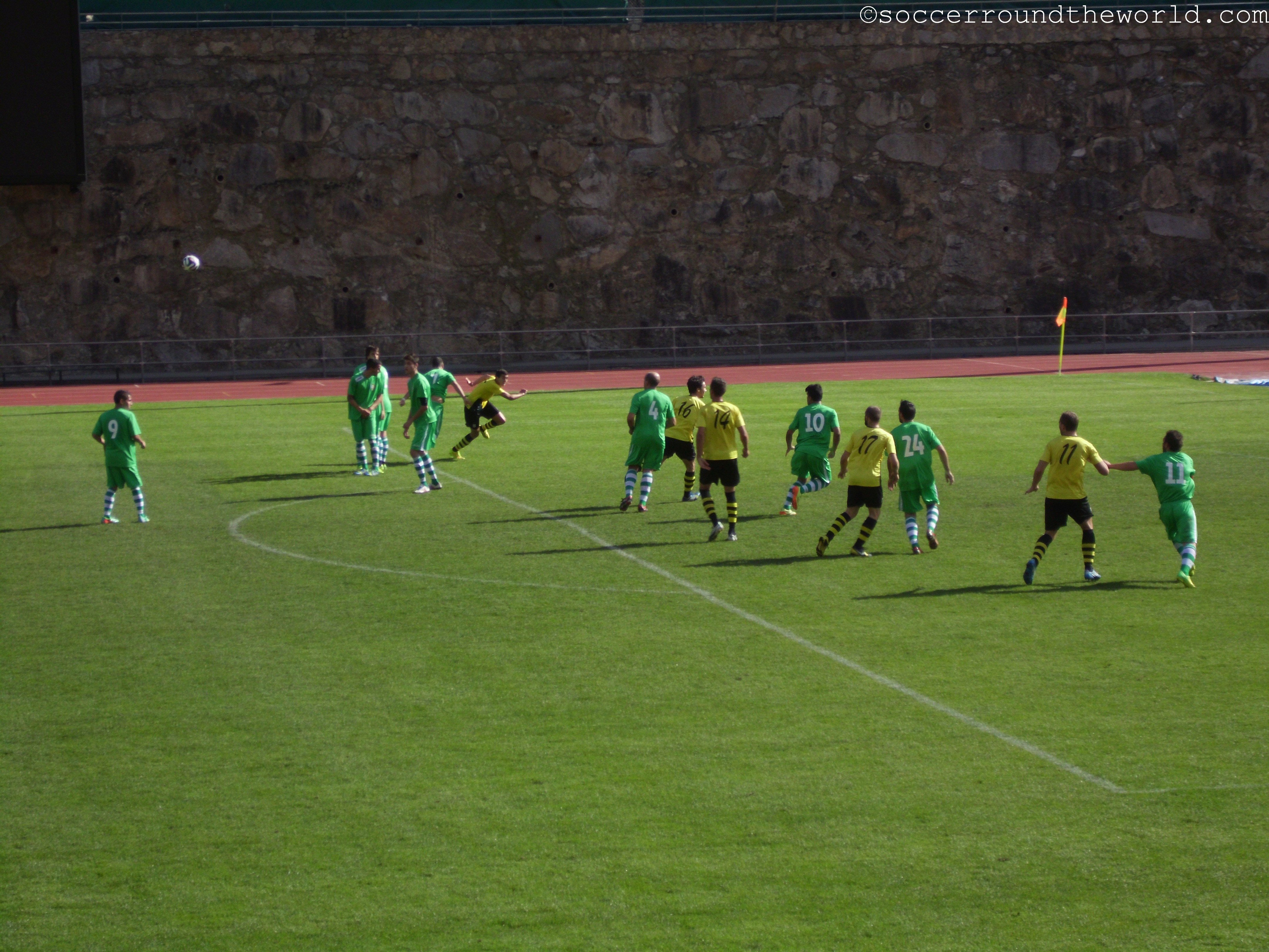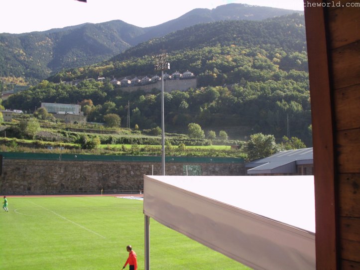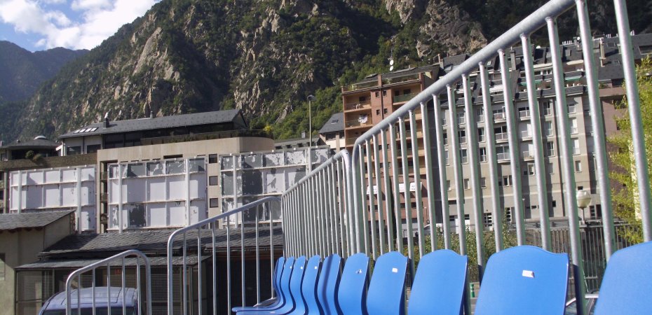 Den Anfang machte ein Spiel im Estadi Comunal (Kapazität von knapp 1.300 Zuschauern) der Hauptstadt Andorra la Vella, Ankick um Punkt Mittag – und damit bei brütender Hitze. Sowohl zum Spiel, als auch zu den Fanaktivitäten gibt es wenig zu sagen: Bereits zur Halbzeit führen die drückend überlegenen Gastgeber mit 3:0, danach ist die Luft draußen, der Schlusspunkt fällt durch einen Elfmeter kurz vor Abpfiff.