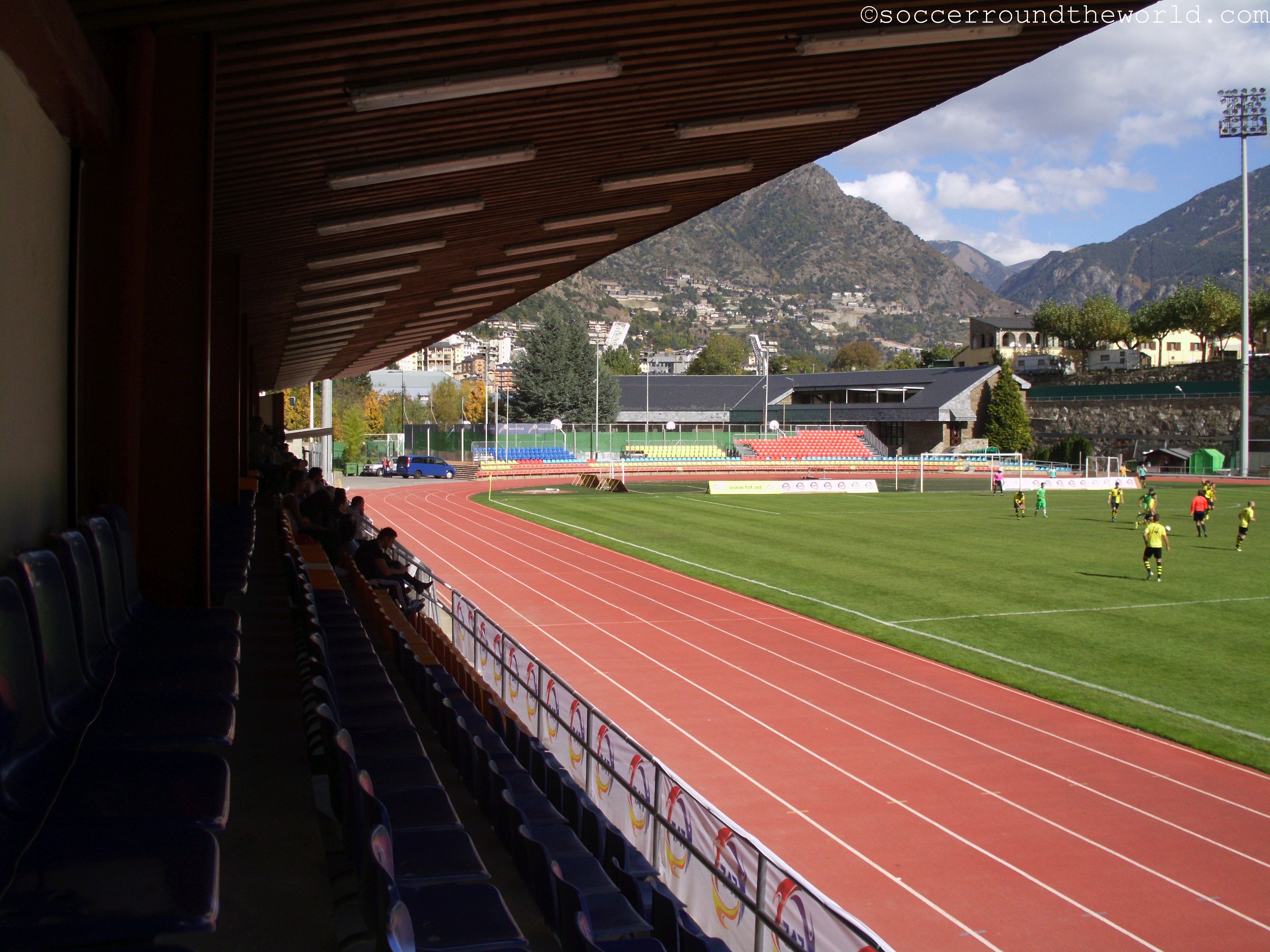 Noch im Mai hatte ich gedacht, dass ich nicht so schnell wieder drei Spiele an einem Halbtag sehen würde, doch der Zwergstaat Andorra macht das noch einmal möglich. Zudem sehe ich damit nicht nur 100 Prozent der andorranischen Stadien an einem Tag, sondern noch dazu auch drei Viertel des gesamten Spieltags der Primera Divisio. Dafür haben sich sechs Stunden Anfahrt aus dem Baskenland allemal bezahlt gemacht.