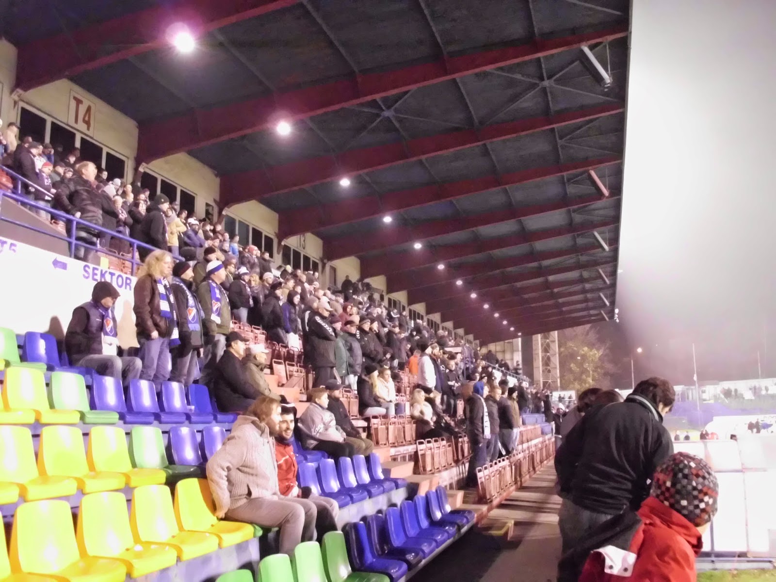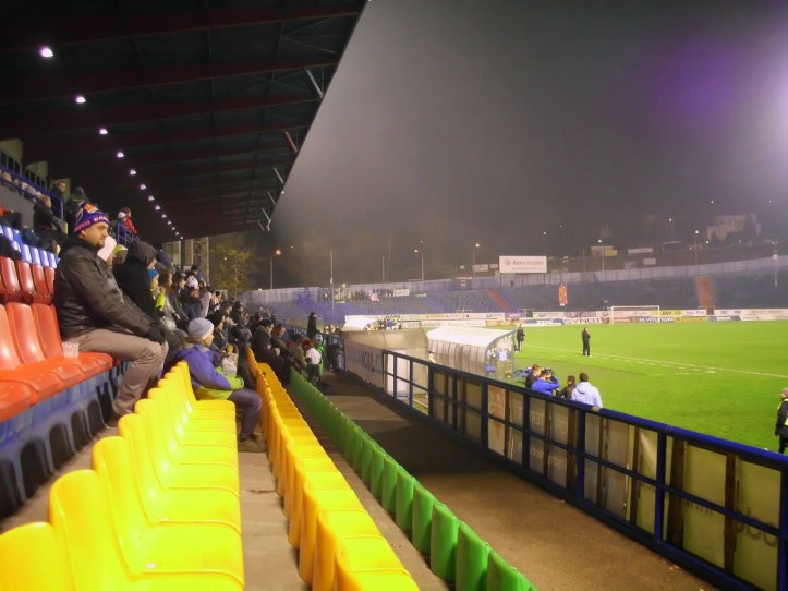 Fantechnisch ist vor allem Banik ganz nett, wie ich bei diversen Auswärtspartien des Klubs (etwa bei Dukla Praha oder auch bei Bohemians, ebenfalls in Prag) ja auch immer wieder bereits feststellen habe können. Sprechchöre und Choreographien sorgen trotz des schütteren Besuchs für ganz gute Stimmung. Jablonec andererseits hat lediglich eine Handvoll Unterstützer zu dieser abendlichen Partie mobilisieren können.