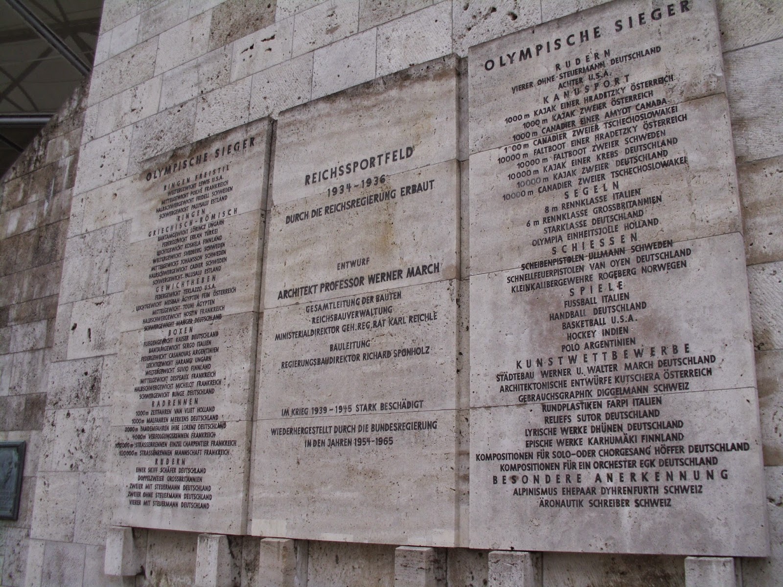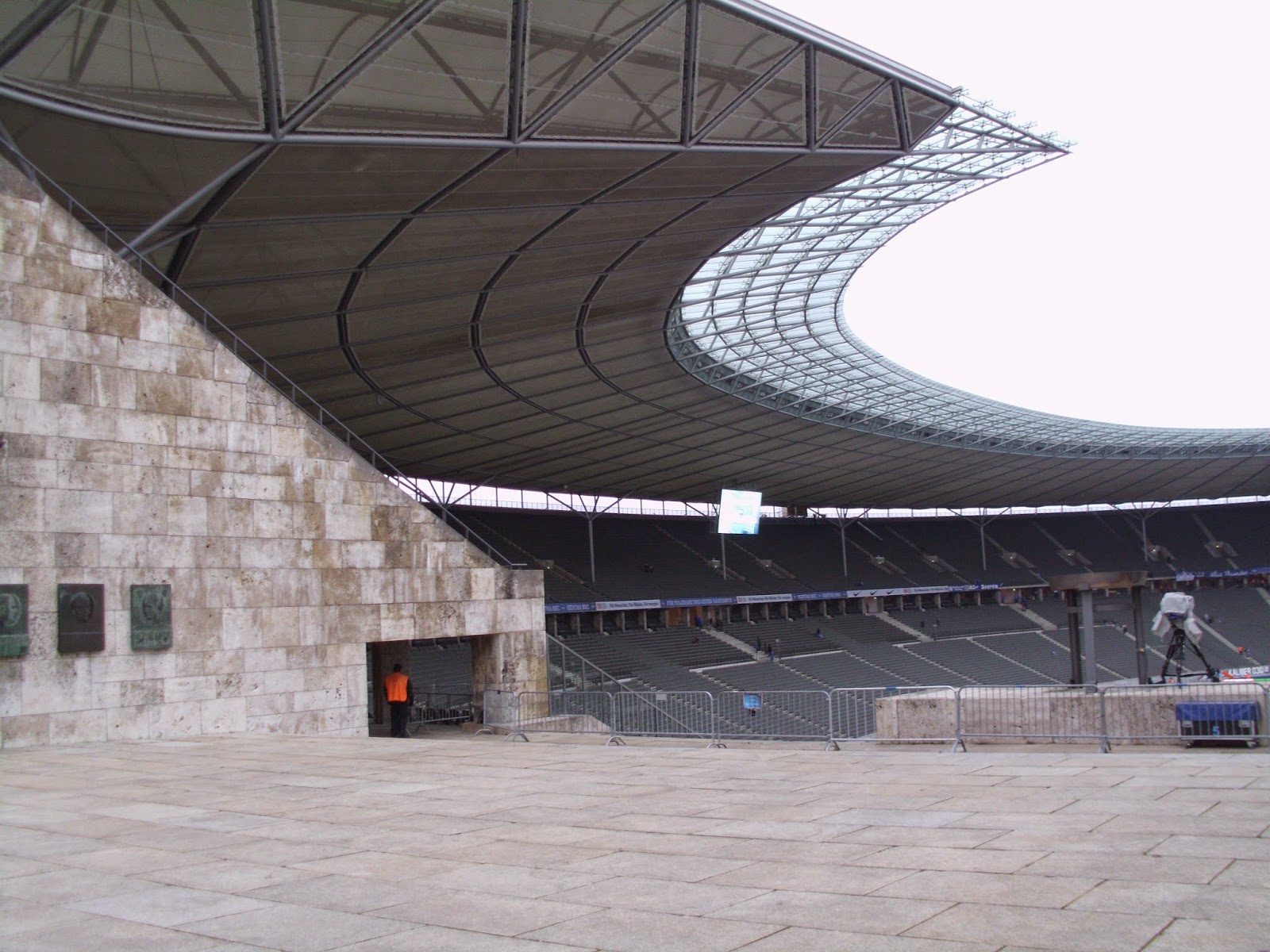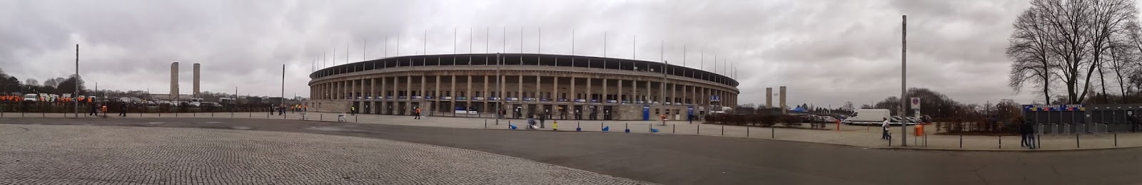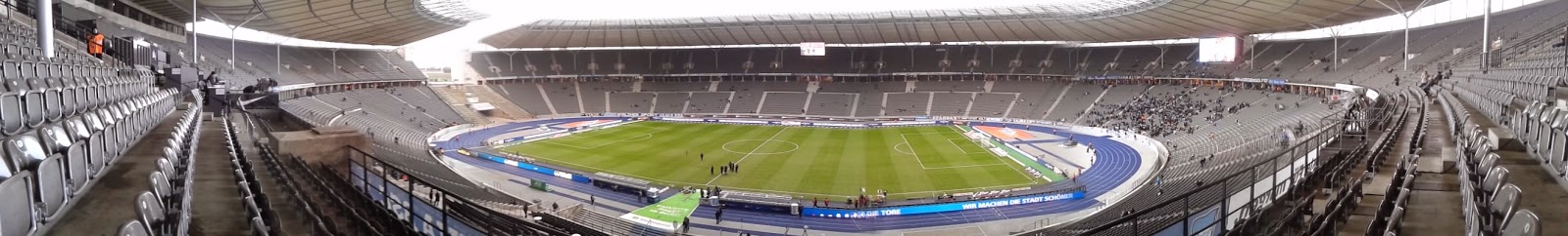 Das Olympiastadion befindet sich weit im Westen der Stadt im Bezirk Charlottenburg. Erbaut wurde es für die Olympischen Spiele 1936 – und viel erinnert hier noch an diese Zeit: die Olympiaglocke oder auch das Maifeld hinter dem Stadion (für Aufmärsche der NSDAP genutzt). Sowohl Umfeld als auch Bau beeindrucken durchaus mit seiner Einzigartigkeit. So etwa auch die Lücke im Oval über dem Marathontor, durch das man vor allem von außen einen beeindruckenden Blick ins Stadion hat.