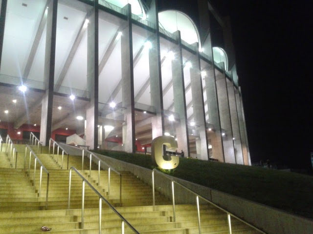 Das Stadion liegt angrenzend an einen großen Park mit Seen und Vergnügungseinrichtungen und ist eine moderne Arena für 55.600 Zuschauer, erst 2008 fertiggestellt. Für einen wettermässig durchwachsenen Tag wie heute die ideale Gelegenheit zum Strawanzen.