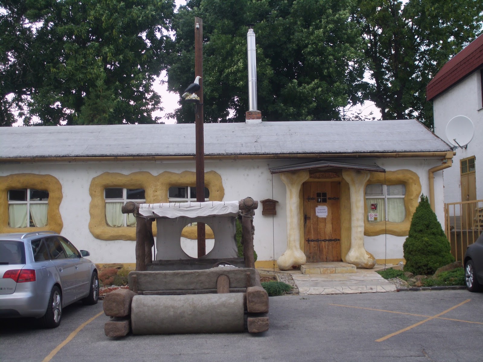 Daher ging’s nach einem kurzen Nachmittagsnickerchen in der noch immer drückenden Schwüle zum Stadion, das der Stadt voll und ganz gerecht wird. Drei niedrige Tribünen mit einem zugehängten Loch hinter einem der Tore – ist trotzdem ganz ansehnlich. Die wahre Sensation befindet sich aber außerhalb des Stadions, im Schatten der Flutlichter: Hier hat jemand doch tatsächlich sein Haus zu einer Fred-Feuerstein-Höhle, samt dazupassendem Auto, umgebaut!