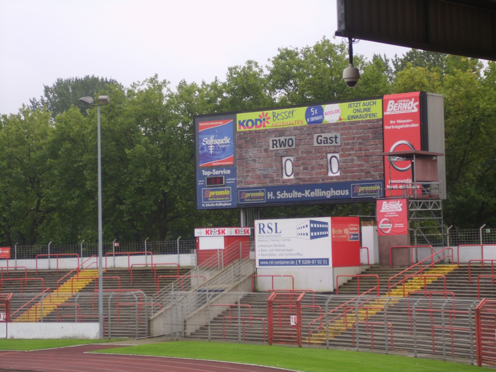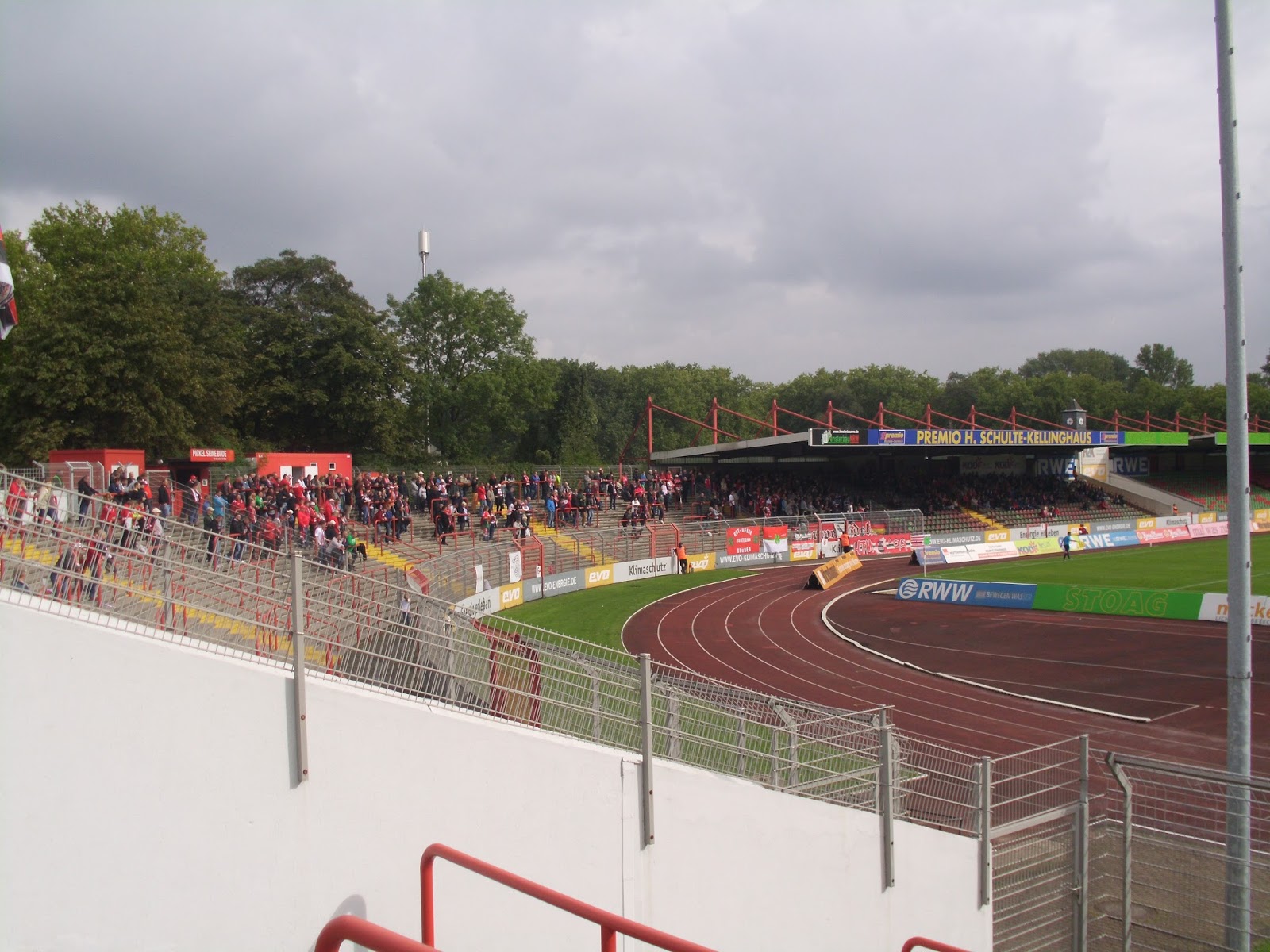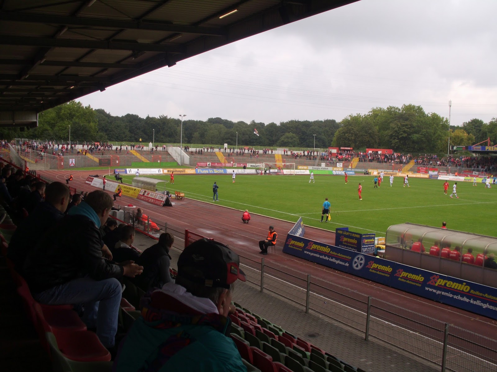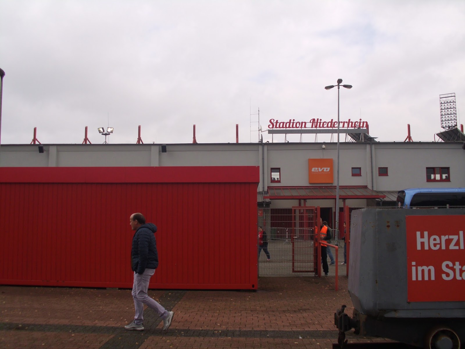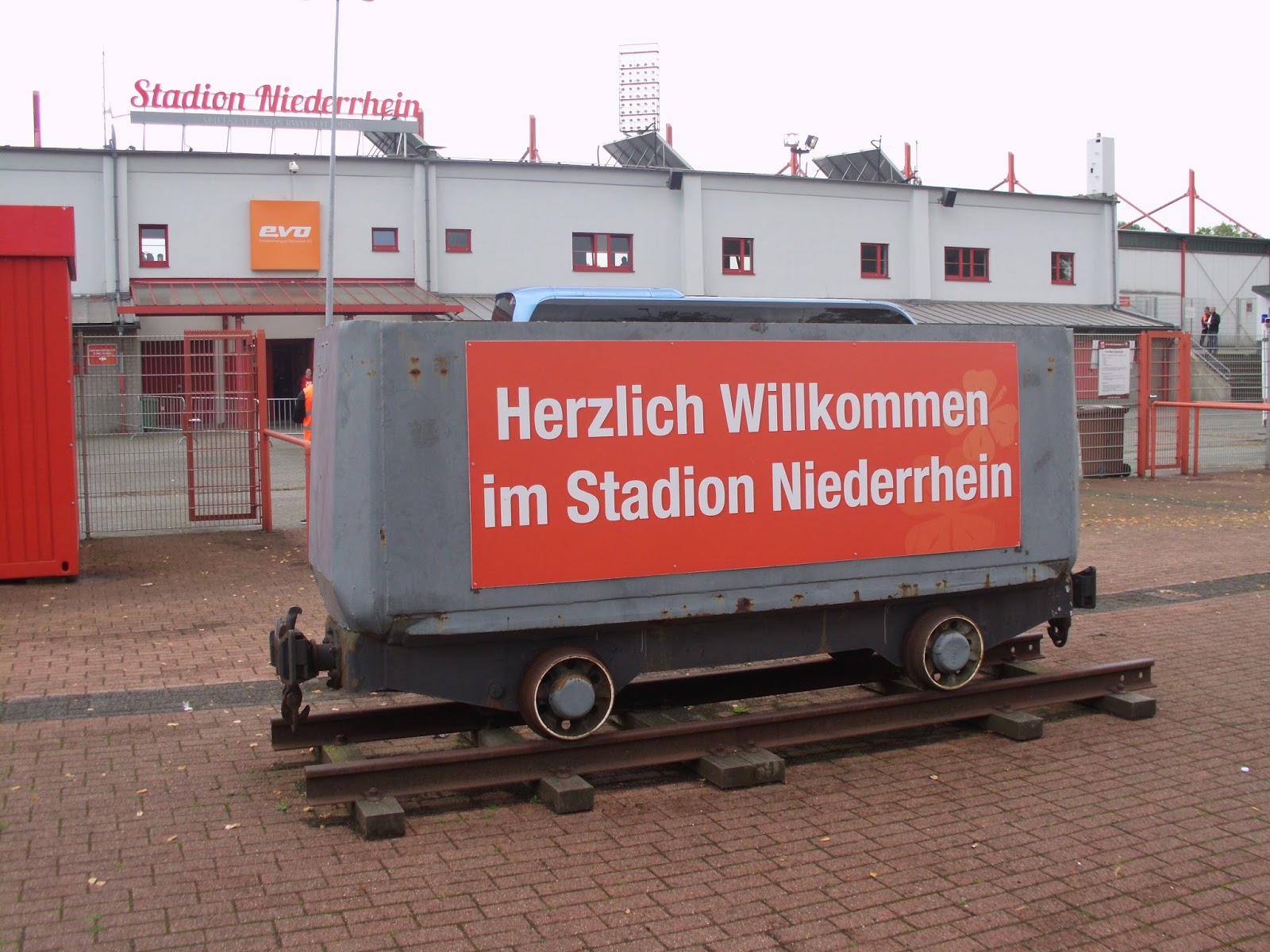 Das Stadion Niederrhein steht hier seit 1926 und bietet knapp über 21.000 Zuschauern Platz. Das Oval ist von einem Erdwall umgeben und bietet auf den Geraden Sitz- sowie in Kurven Stehplätze. Das Publikum passt sich dem folgenden Spiel der Regionalliga West perfekt an: Bis auf eine kleine Fankurve bleibt es großteils lethargisch. Zu jubeln gibt es aber halt auch erst etwas in der 88. Minute. Das 1:0 beschließt ein extremes Krampf- und Kampfspiel, das nicht viel mehr Erwähnung verdient.