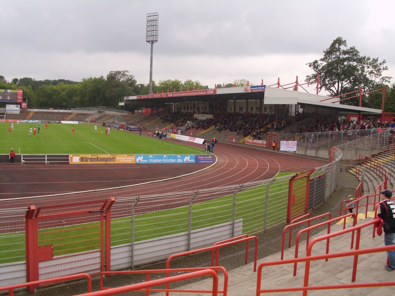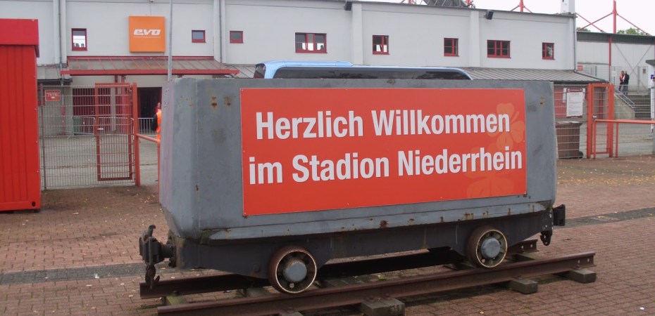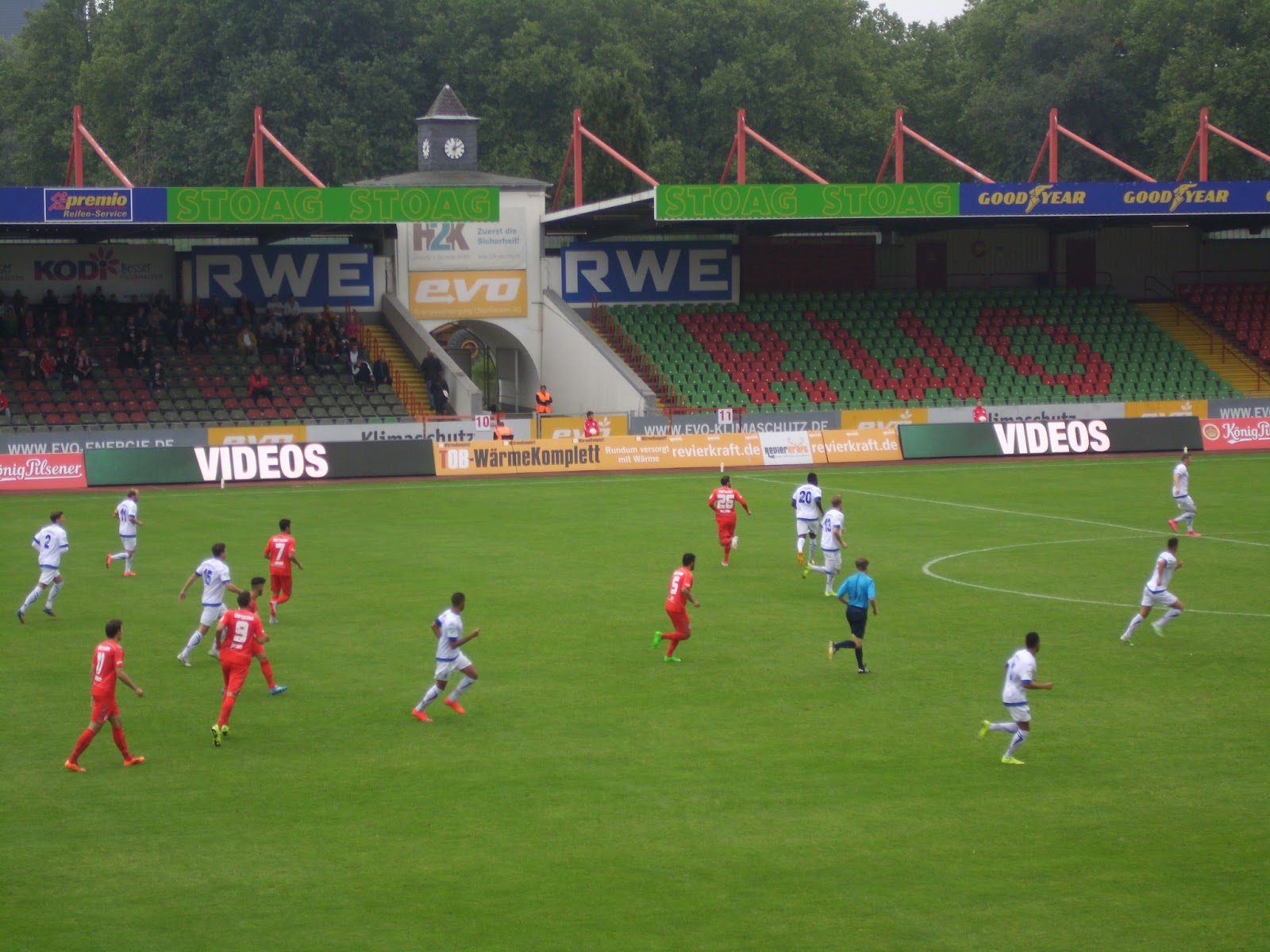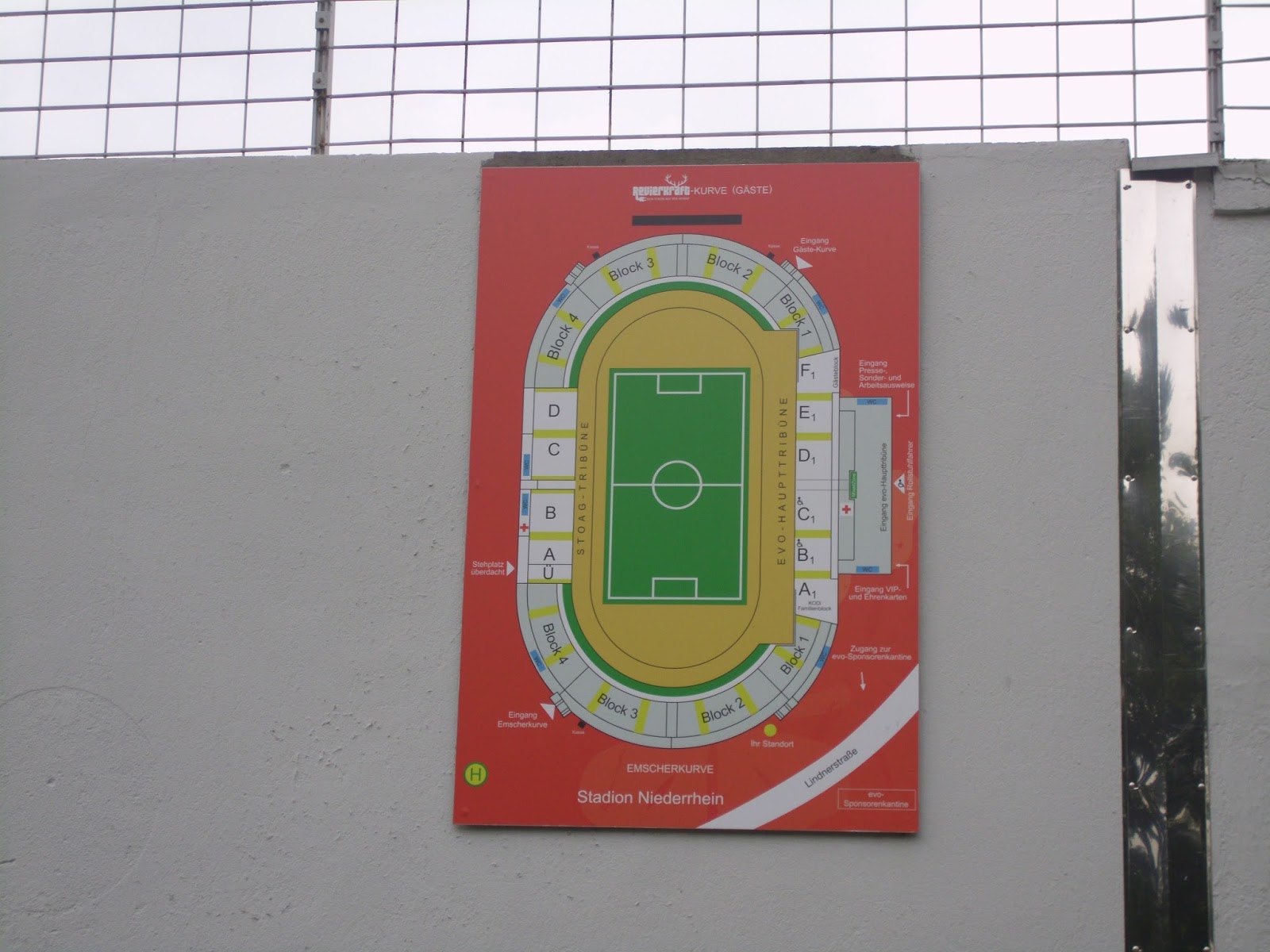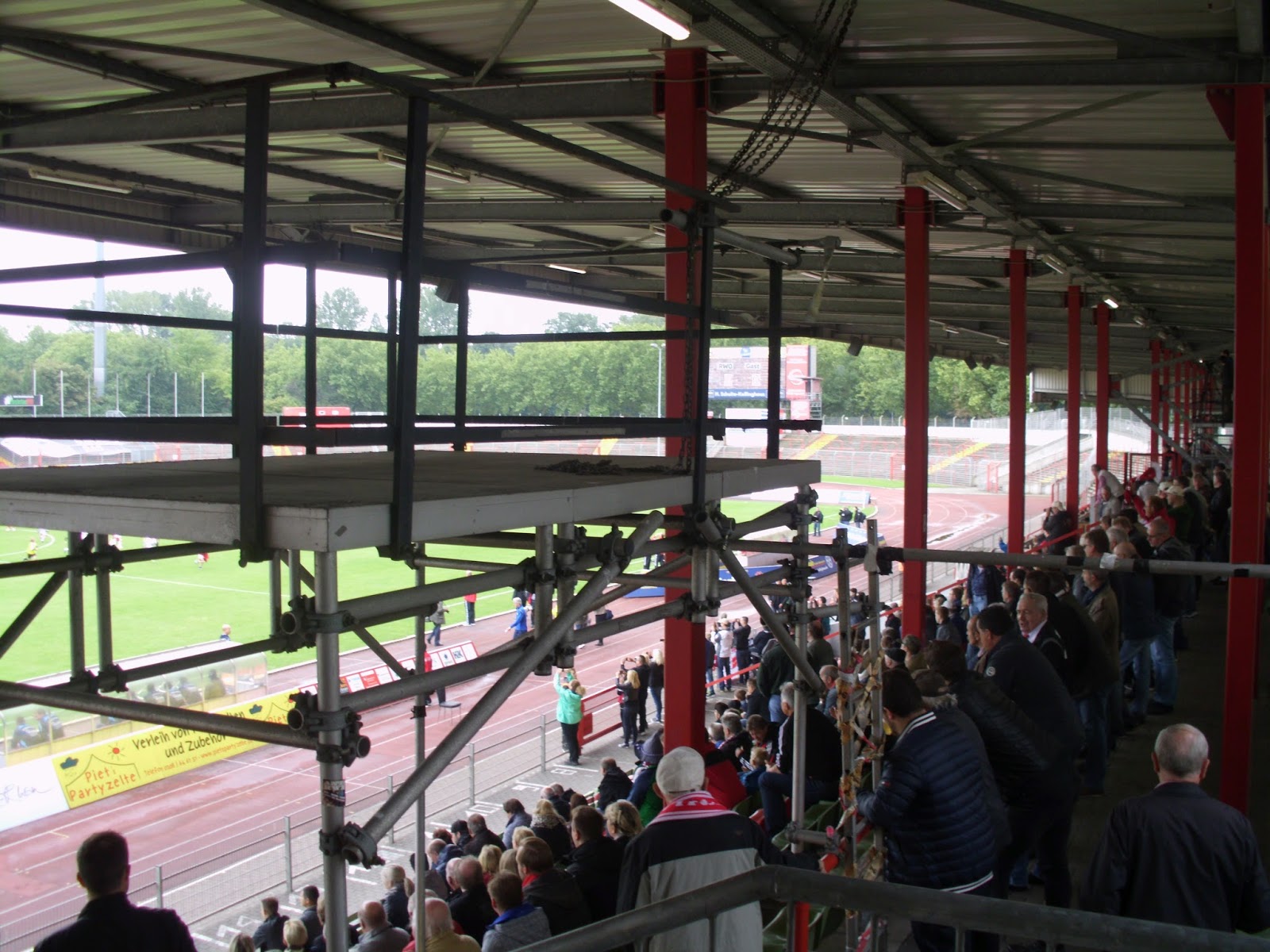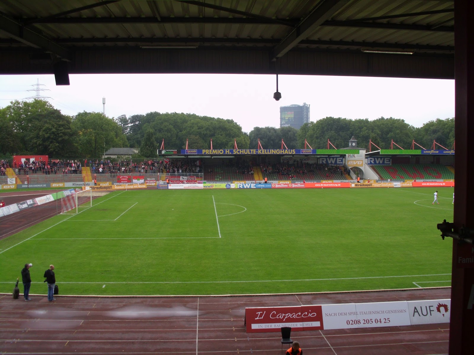 Das Stadion Niederrhein steht hier seit 1926 und bietet knapp über 21.000 Zuschauern Platz. Das Oval ist von einem Erdwall umgeben und bietet auf den Geraden Sitz- sowie in Kurven Stehplätze. Das Publikum passt sich dem folgenden Spiel der Regionalliga West perfekt an: Bis auf eine kleine Fankurve bleibt es großteils lethargisch. Zu jubeln gibt es aber halt auch erst etwas in der 88. Minute. Das 1:0 beschließt ein extremes Krampf- und Kampfspiel, das nicht viel mehr Erwähnung verdient.