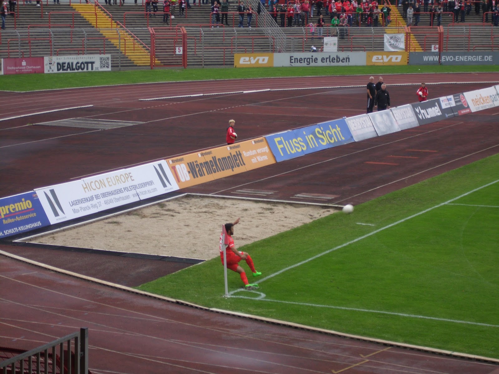 Ein Problem stellt bereits die Anreise dar: Nachdem der gewählte Zug Duisburg zuerst nicht, dann an Oberhausen vorbei verlassen will und das Spiel bereits kurz nach der Landung stattfindet, steige ich auf Taxi um. Großes Konglomerat heißt aber nicht automatisch auch gute (und billige) Beförderung in die umliegenden Städte. Zuerst weiß der alte türkische Taxler nicht, wo das Stadion in Oberhausen ist („Musst du Adresse haben!“), dreht daher mit mir eine Ehrenrunde um den Bahnhof und fragt Kollegen nach Rat. Dann verlangt er mitten auf der Autobahn Richtung Oberhausen 20 Euro („Spezialpreis!“), um mich dann lediglich zum Bahnhof zu bringen (weil er angeblich seine kranke Frau in Essen im Krankenhaus besuchen muss) und noch einmal 5 Euro zu verlangen – der Busshuttle zum Stadion ist dann dafür wenigstens gratis.