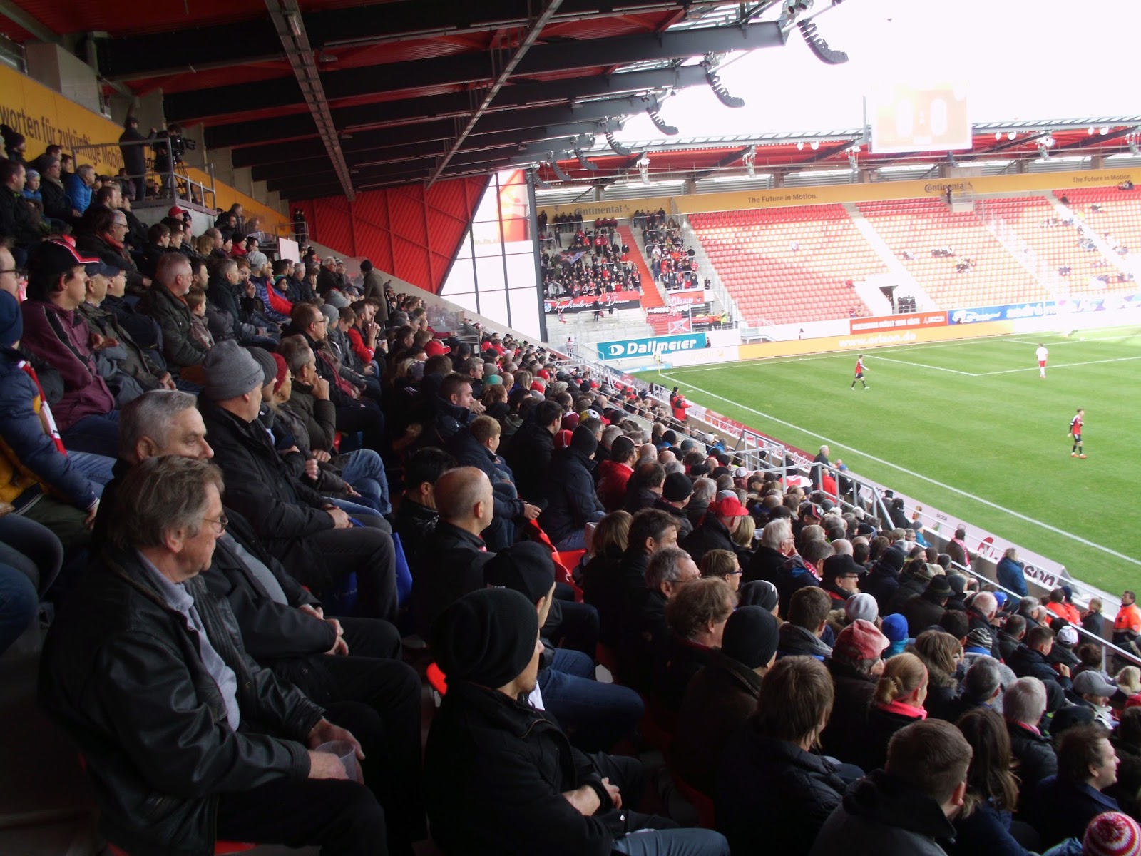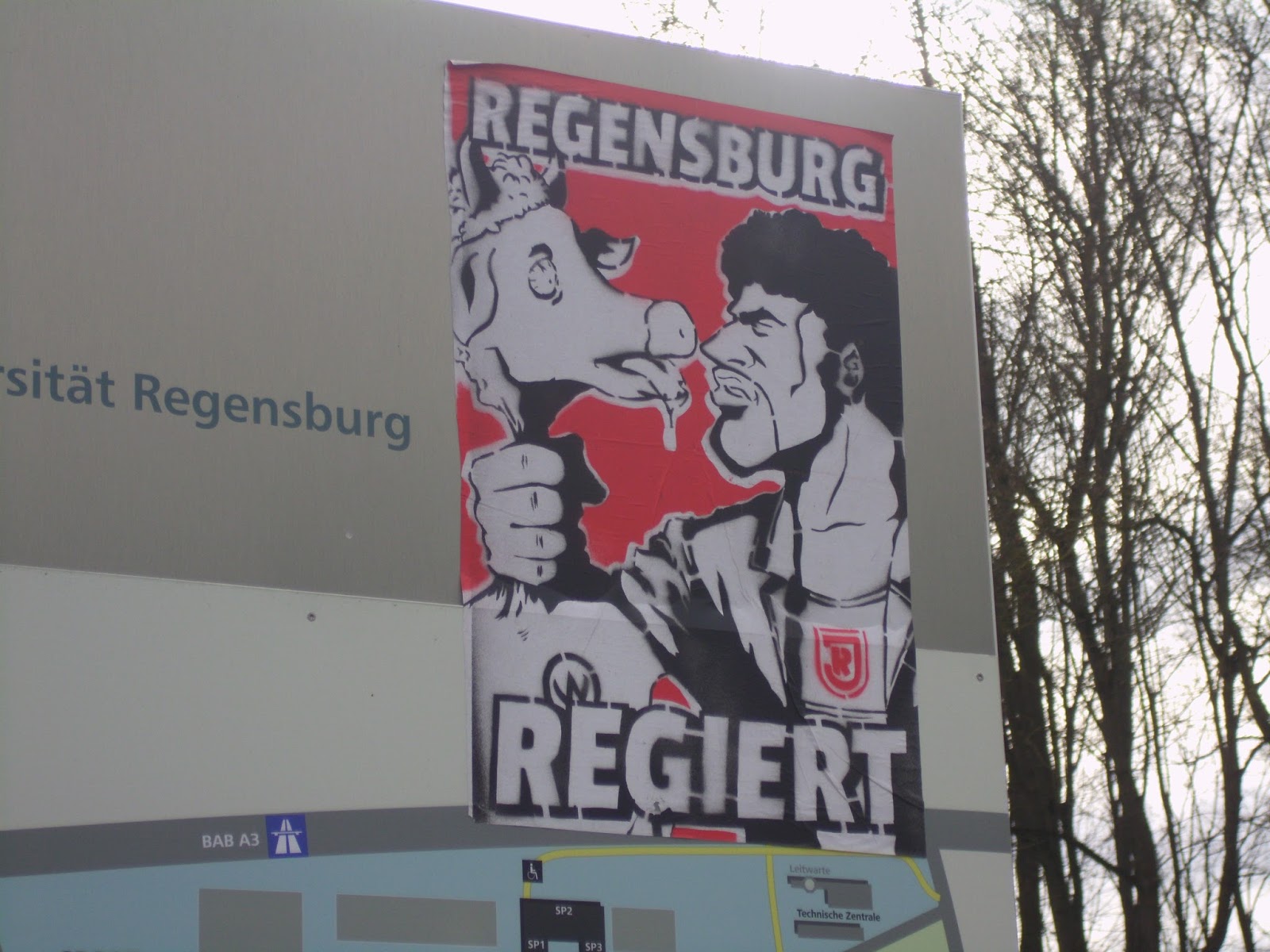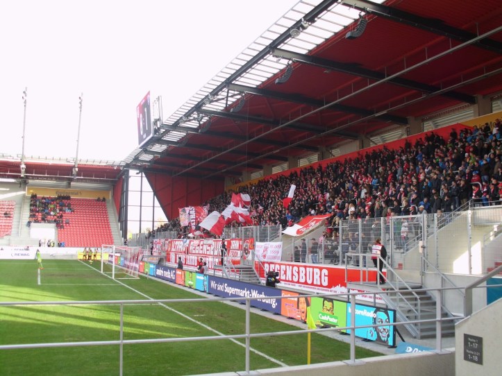 Immerhin bekommt man hier auch nix für den Preis. Lustlosester Fußball, der einem Spitzenreiter und Aufstiegskandidaten wirklich nicht würdig ist. So verlieren die Gastgeber am Ende auch völlig verdient mit 0:2, sehr zur Freude der gar nicht so wenigen Ingolstädter Fans. Diese liefern sich nach dem Match die vielleicht noch motivierteste Begegnung mit Polizei und Regensburgern. Rund um den Bahnhof ist der Gewaltlevel jedenfalls alles andere als viertklassig…