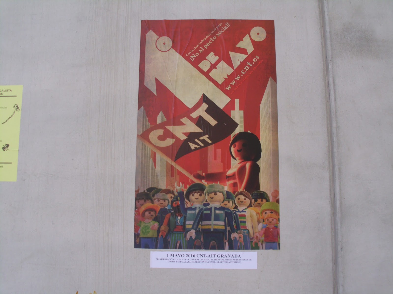 Das Städtchen liegt etwas außerhalb von Granada und ist in dem Fall sogar relativ gut zu Fuß zu erreichen. Es ist ganz auf Weinbau getrimmt, verfügt zum Beispiel auch über ein eigenes Museum für die veredelte Traube. Im Hintergrund sieht man bereits die nahen und noch schneebedeckten Gipfel der Sierra Nevada. Vom 1. Mai bekommt man hier nicht wirklich was mit – zum Glück habe ich dazu wenigstens einige Plakate in Granada selbst gesichtet.