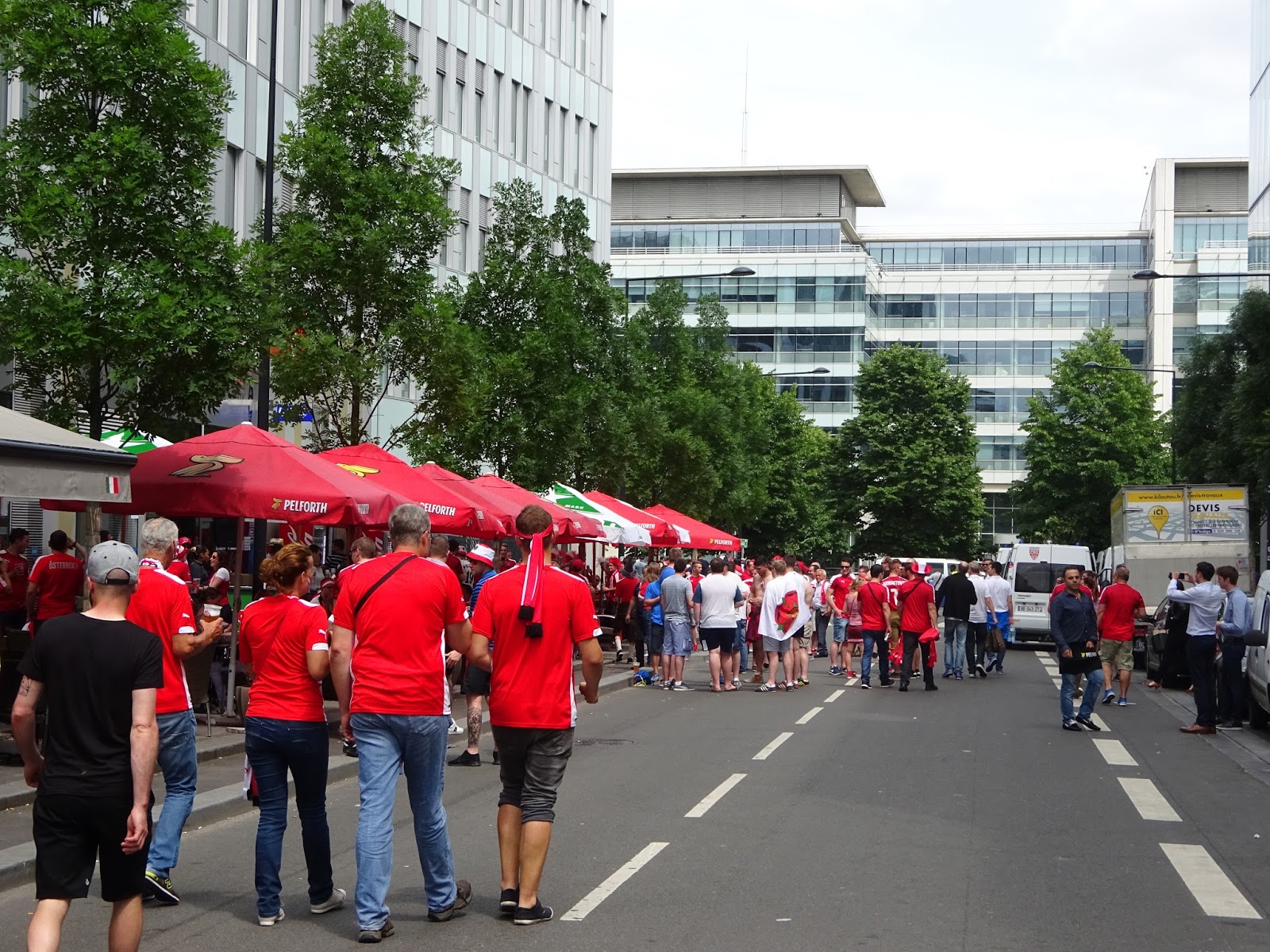 Die Größenverhältnisse beider Fanlager zeigen sich am Spieltag bereits früh in der Stadt, wenn auch die Österreicher dort einen noch deutlicheren Überhang haben, zumindest in den von mir durchstreunten Gegenden. Bei – vor allem im Vergleich zum Dienstag – prächtigstem Wetter wird das Viertel Montmatre mit dem Sacre Coer einer genaueren Untersuchung unterzogen, ehe es am frühen Nachmittag gen Stadion geht.