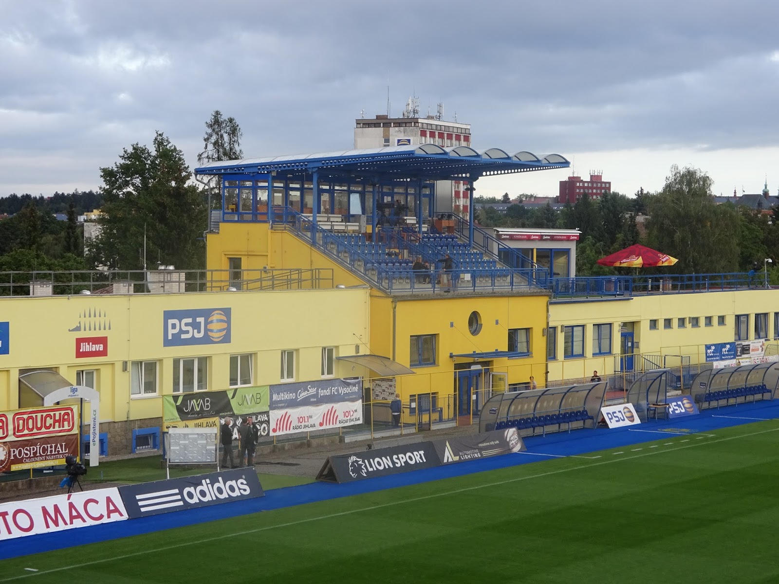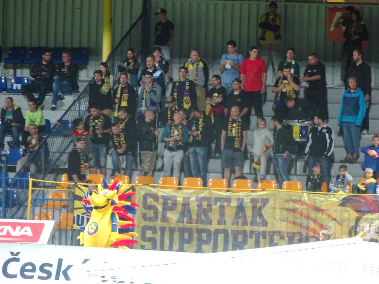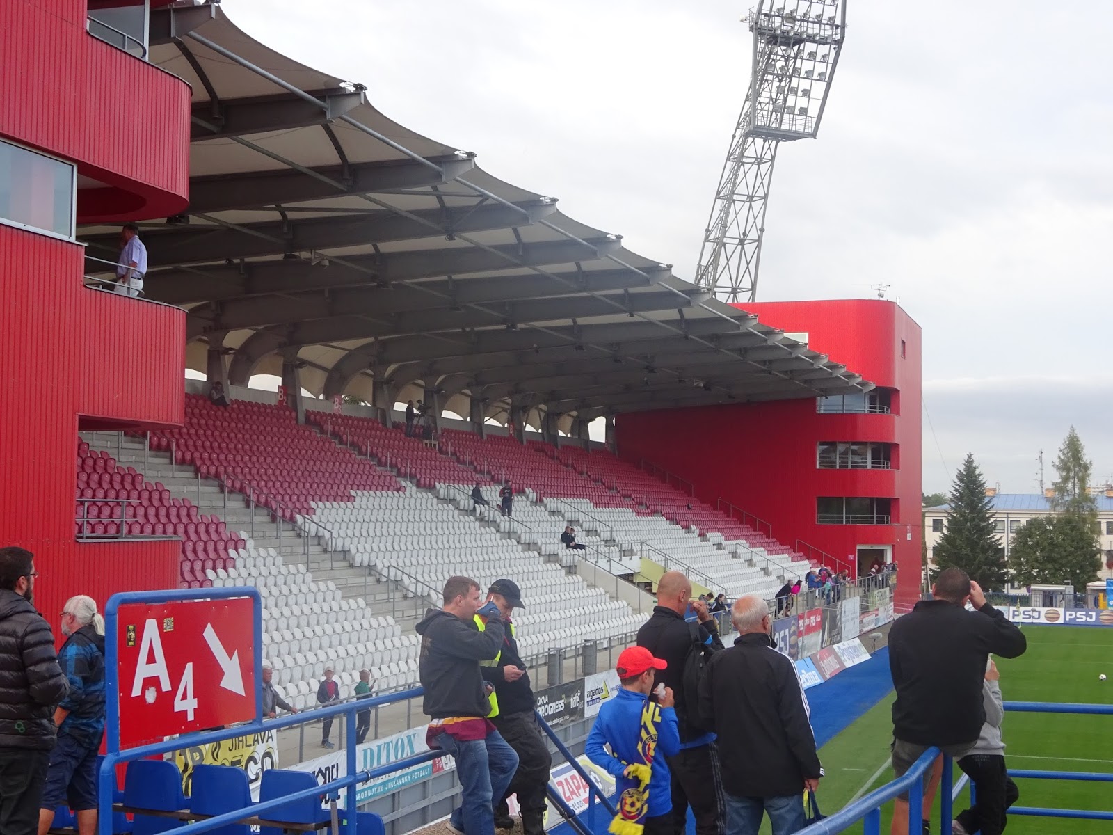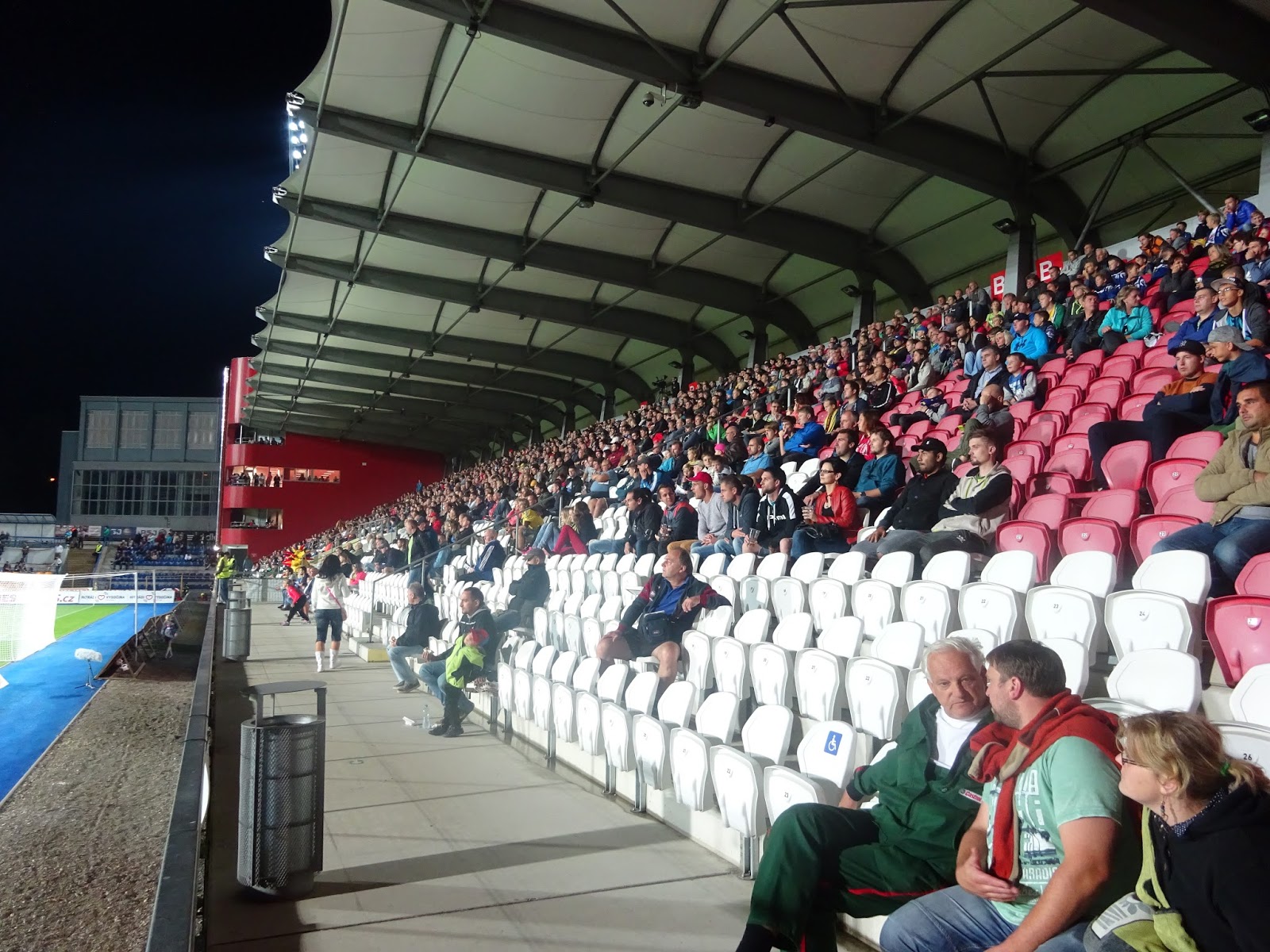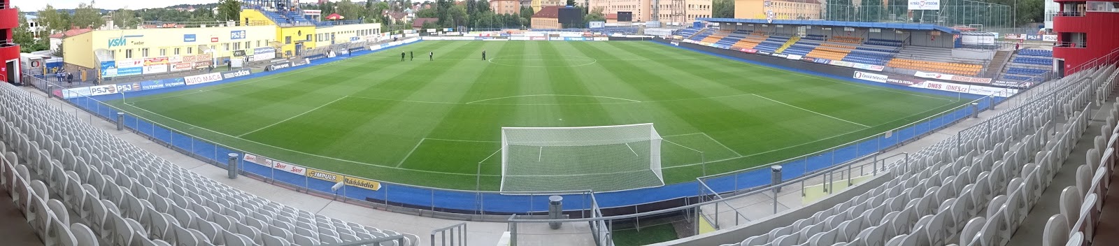 Ähnliches gilt für das Stadion, das allerdings die relativ typische tschechische Eigenart aufweist, aus de facto lediglich einer größeren, dafür ziemlich imposanten Tribüne zu bestehen. Auf einer Geraden befindet sich noch ein etwas kleinerer Sitzplatzbereich mit Sektoren für beide Hardcorefans, auf der gegenüberliegenden hingegen sind lediglich die schlimmsten Hooligans von allen untergebracht – die sogenannten Journalisten. Die zweite Hintertortribüne fehlt völlig.