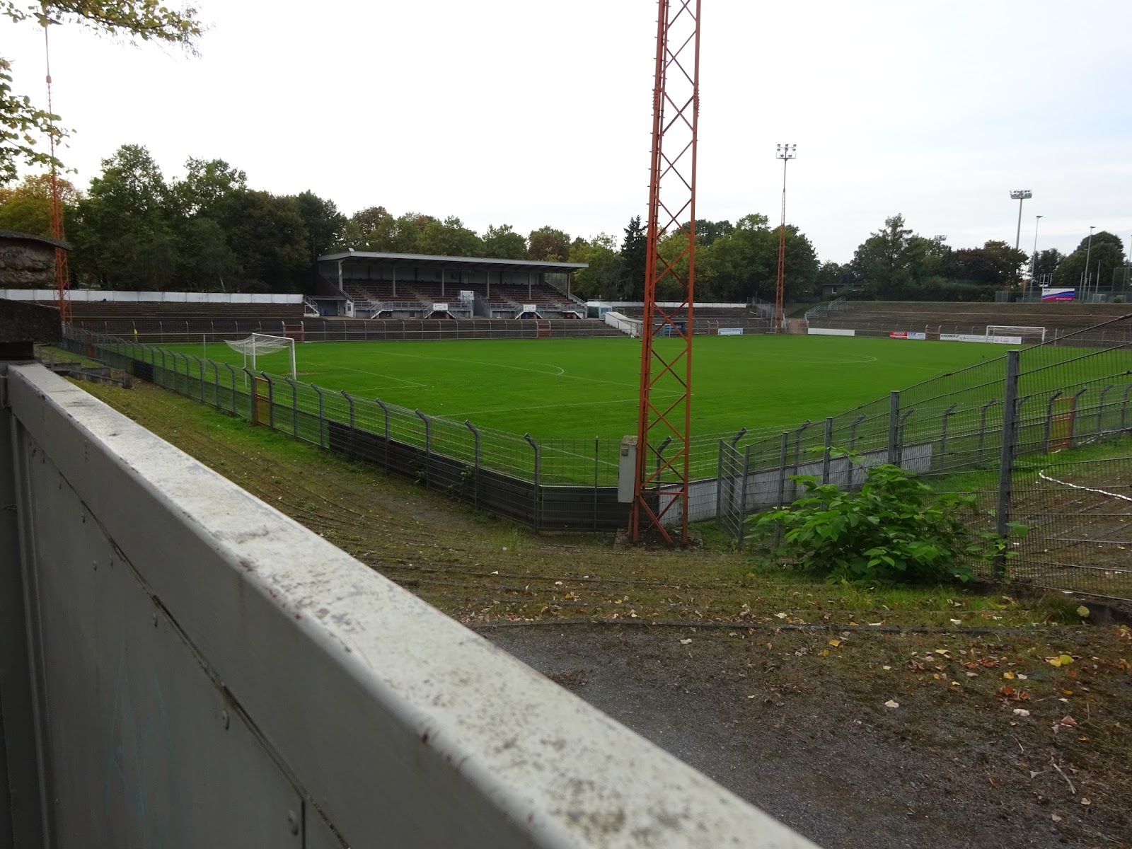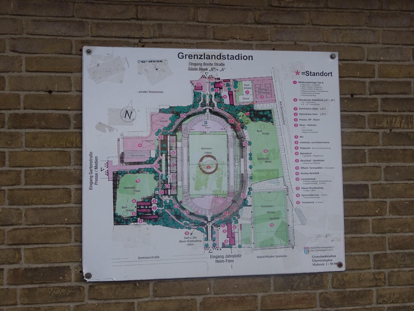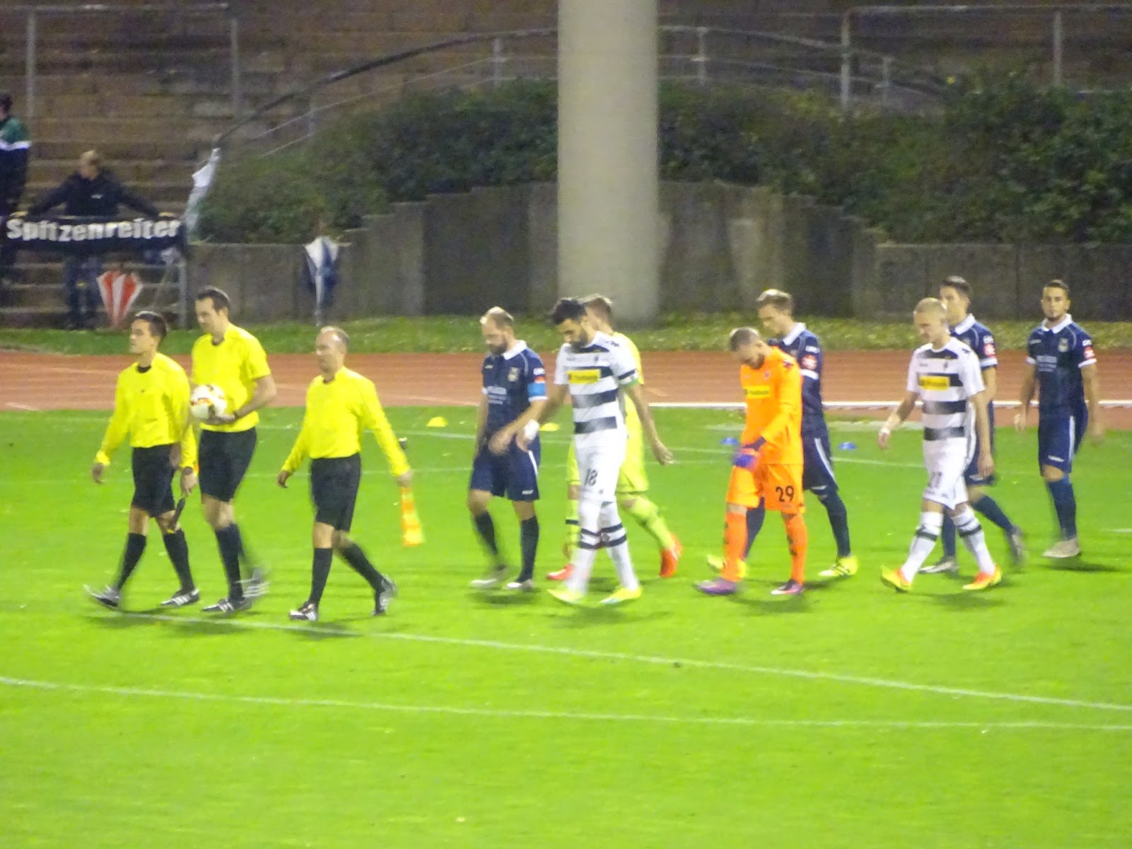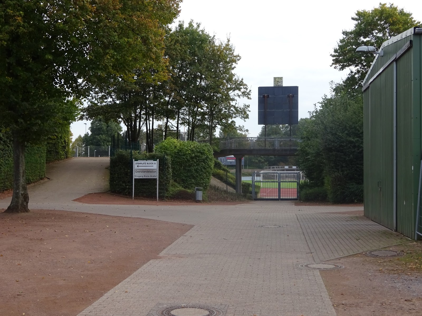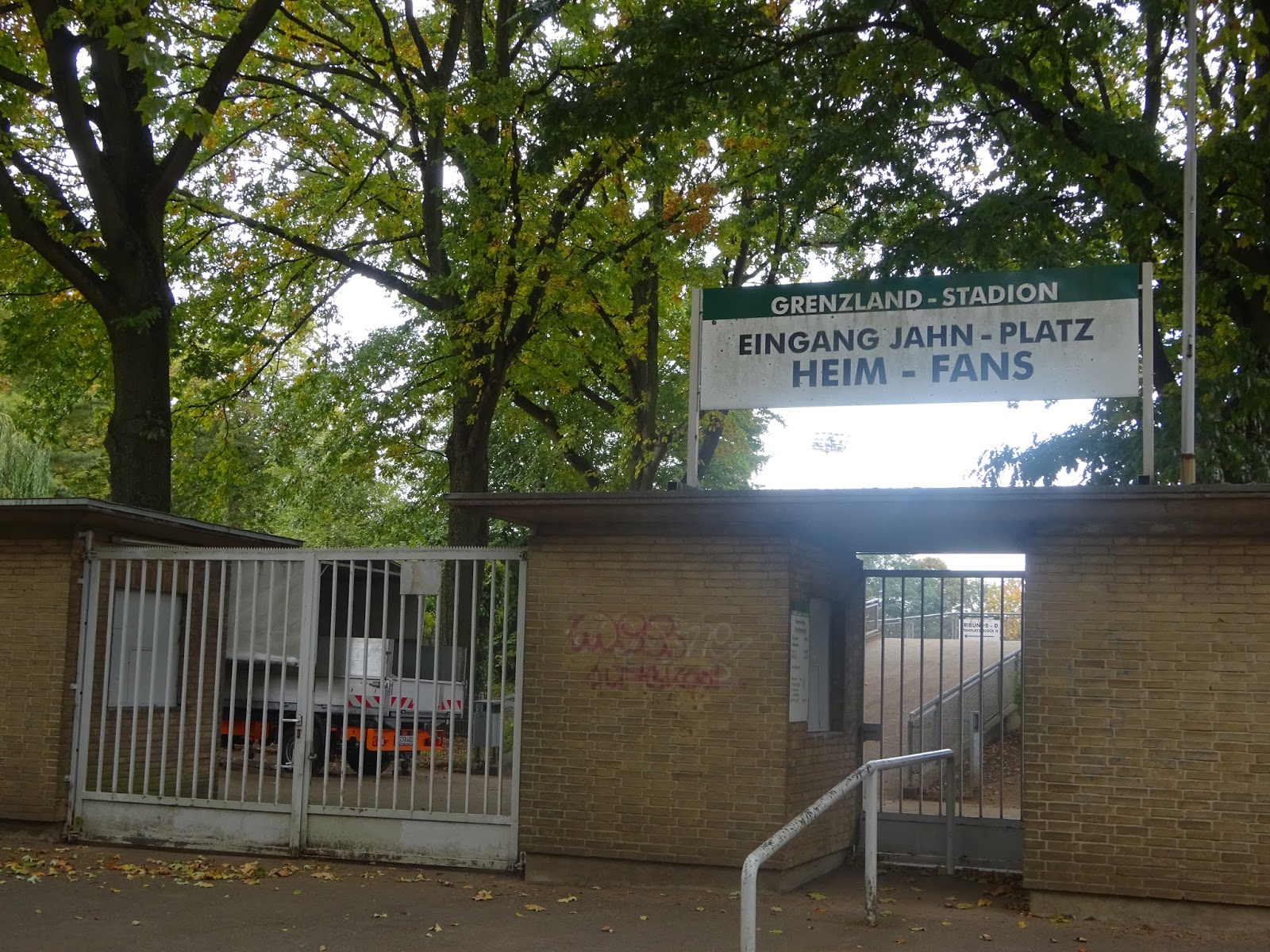 Die Spielstätte der Borussia-Amateure liegt südlich des Zentrums, in direkter Nachbarschaft zum Jahnstadion des Rheydter Spielvereins, der hier eigentlich lokaler Platzhirsch ist. Direkt unter der Haupttribüne des immerhin noch 20.000 Zuschauer fassenden Platzes befindet sich ein nettes Cafe mit dem klingenden Namen „SPÖ 407“ (man konnte mir die Bedeutung nicht sagen), in dem ich die Wartezeit bis zum Anpfiff überbrücke.
