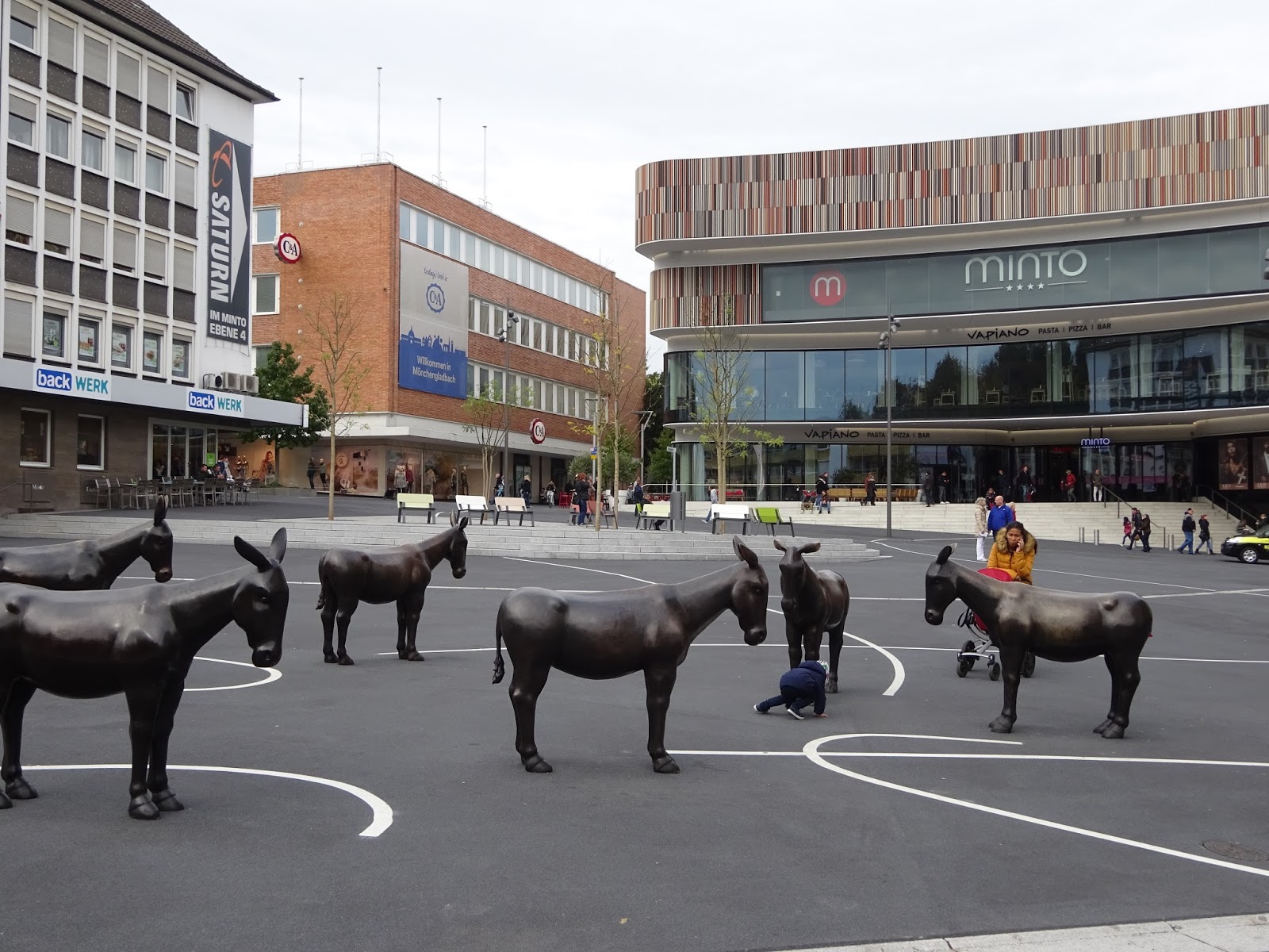 Zumindest habe ich nun auch etwas Zeit für die Stadt Mönchengladbach, nachdem ich beim ersten Besuch (damals freilich bei der Profimannschaft) ja gleich weiter musste, um auch noch PSV Eindhoven einen Besuch abzustatten. Und, nun ja, es wär jetzt übertrieben, zu sagen, dass ich damals seeehhr viel versäumt habe, aber für einen kleineren Spaziergang gibt die Stadt durchaus was her… Abseits der für meinen Geschmack zu dominanten Einkaufsstrasse liegen zumindest einige nette Plätze und Strassen. Wobei man diesen Teil Deutschlands ja sowieso eher wegen der netten Leute als der schönen Städte besucht, denn zumindest das ist auch hier bei zahlreichen Begegnungen mit Einheimischen wieder extrem auffällig.