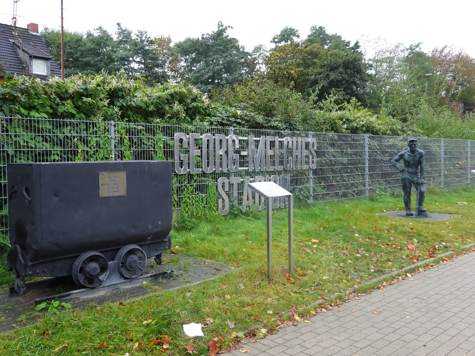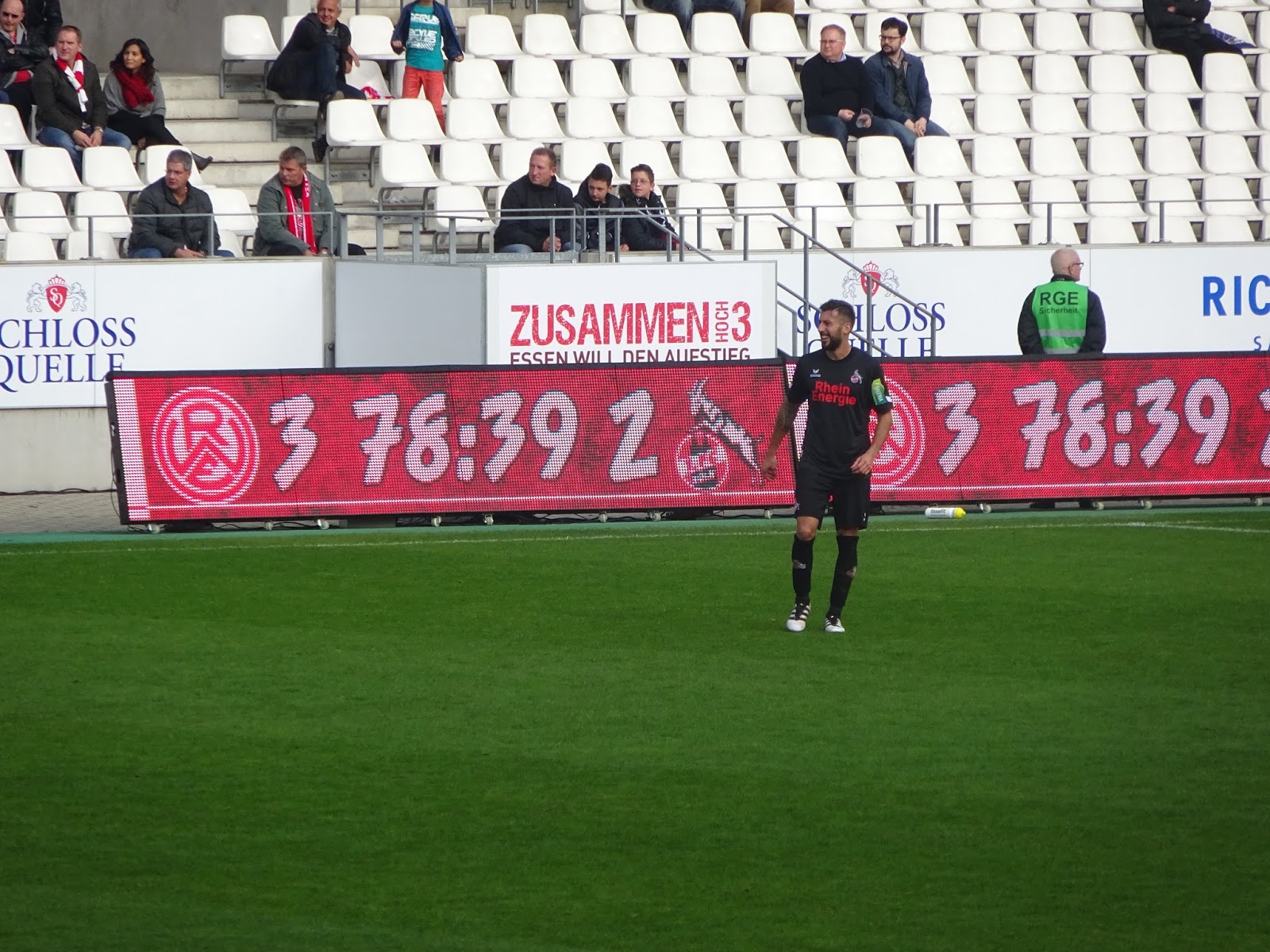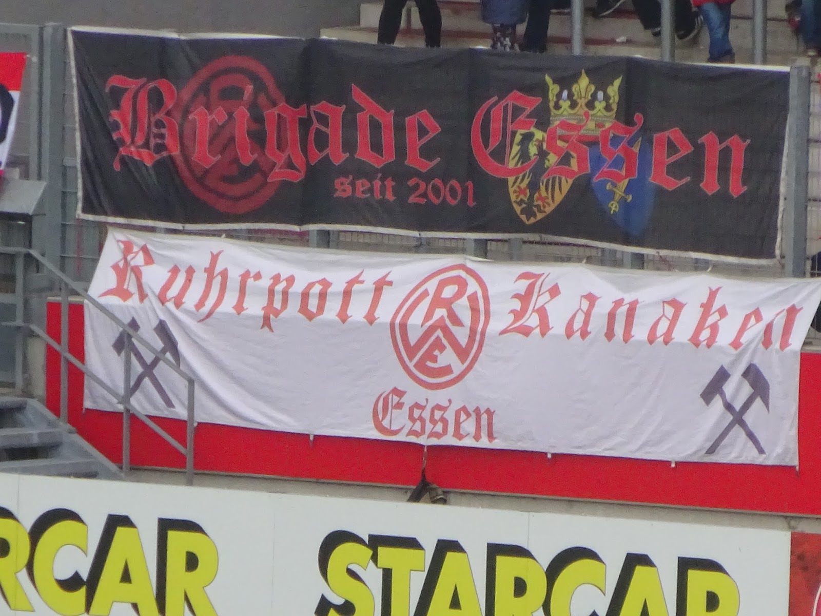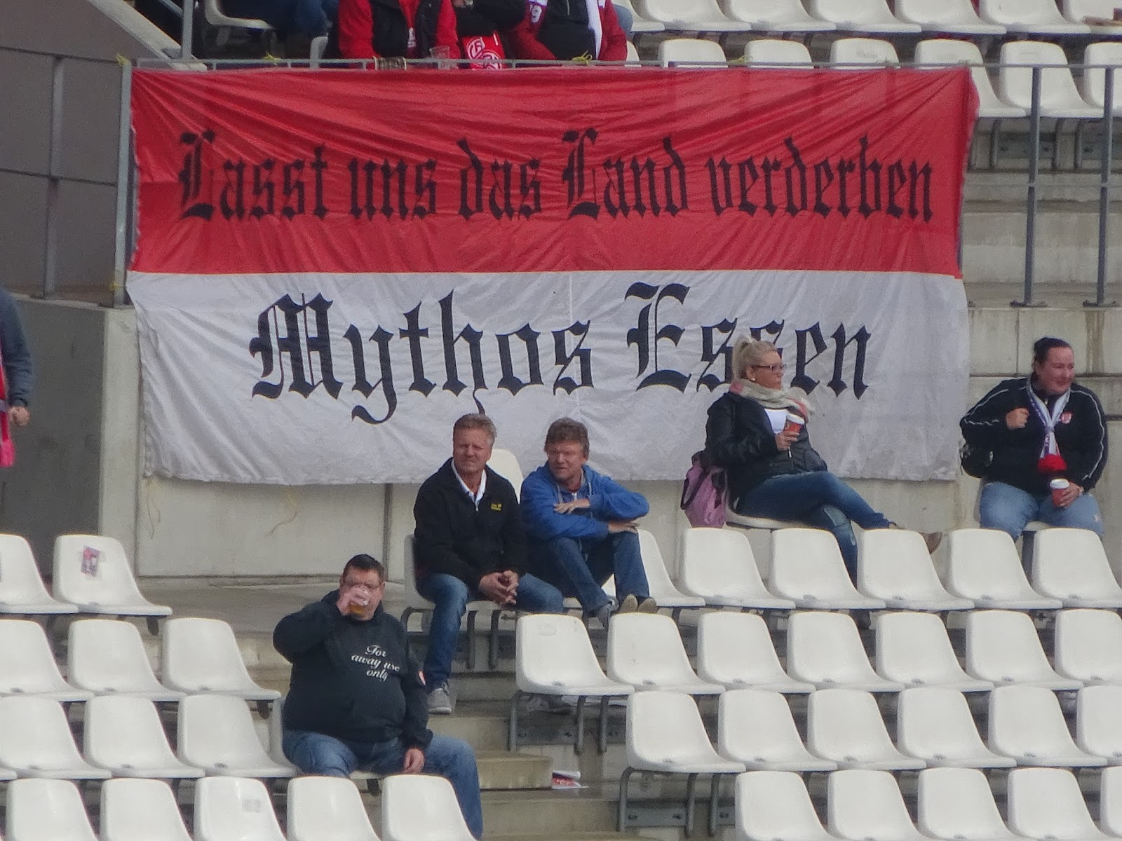 Das neu gebaute Stadion an der Hafenstrasse besteht aus vier separat stehenden Tribünen, vom altehrwürdigen Georg-Melches-Stadion blieb neben einer Gedenkstelle nur ein einsamer Flutlichtmasten an einer der Ecken. Der auch an anderen Problemen leidende Neubau verfügt aber überraschenderweise auf keiner der Seiten über eine Anzeigentafel, der Spielstand wird lediglich über einige der Werbebanden eingeblendet. Trotz Regionalliga, also vierter Spielklasse, lässt man sich die Tradition hier einiges kosten: Mit 28 Euro für einen Sitzplatz schlägt dies schon ganz ordentlich an…