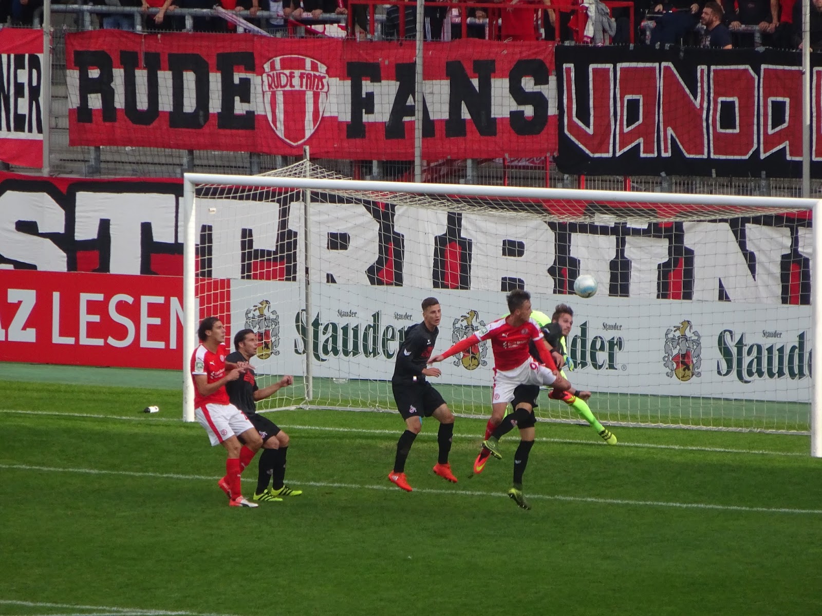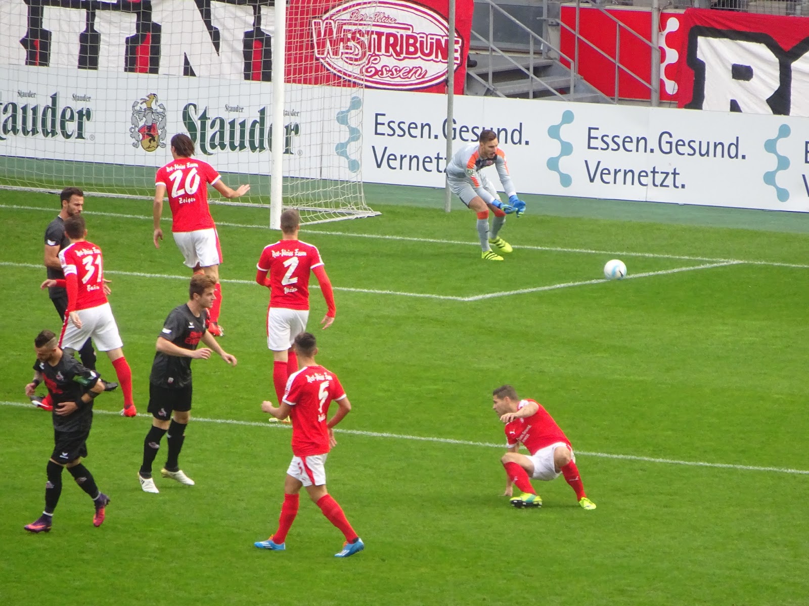 Auch das Spiel erlebt hier im Gegensatz zu gestern eine Steigerung, nicht nur aufgrund der (erst gegen Ende eintretenden) Torflut. RWE ist über weite Strecken überlegen, gibt aber zwischenzeitlich einen Zweitorevorsprung aus der Hand. Nach dem Ausschluss eines Kölners brechen aber alle Dämme und Essen macht den Deckel zu.