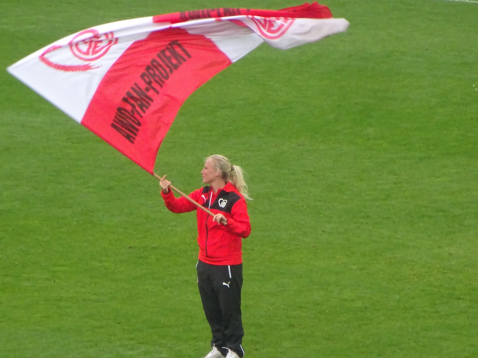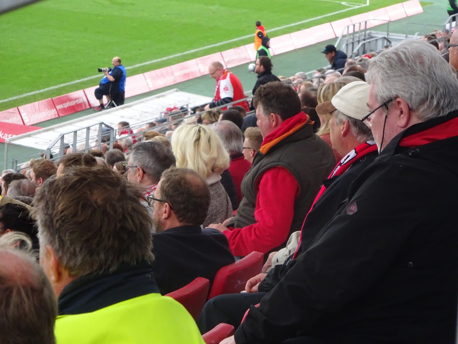 Die Stimmung wäre wohl gegen eine andere als eine der unbeliebten Zweitmannschaften noch besser, dennoch kann man sich nicht wirklich beschweren. Die rein aus Stehplätzen bestehende Westkurve singt durchgängig, immer wieder gehen auch die anderen Tribünen mit. Besonders beeindruckend ist der Wechselgesang über drei Seiten mit „Rot“, „Weiß“ und „Essen“. Nicht nur, aber besonders hier, macht auch der relativ große – und gut besuchte – Business-Bereich mit Begeisterung und voller Lautstärke mit – soll ja nicht überall selbstverständlich sein.