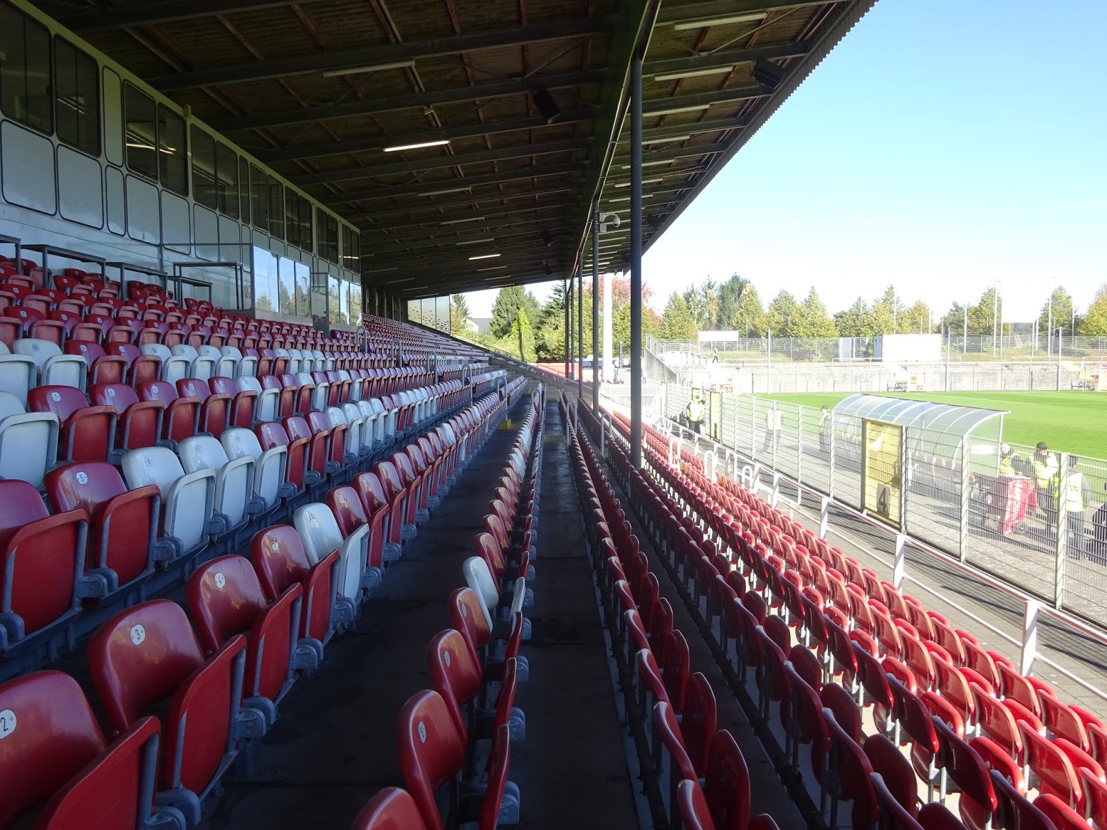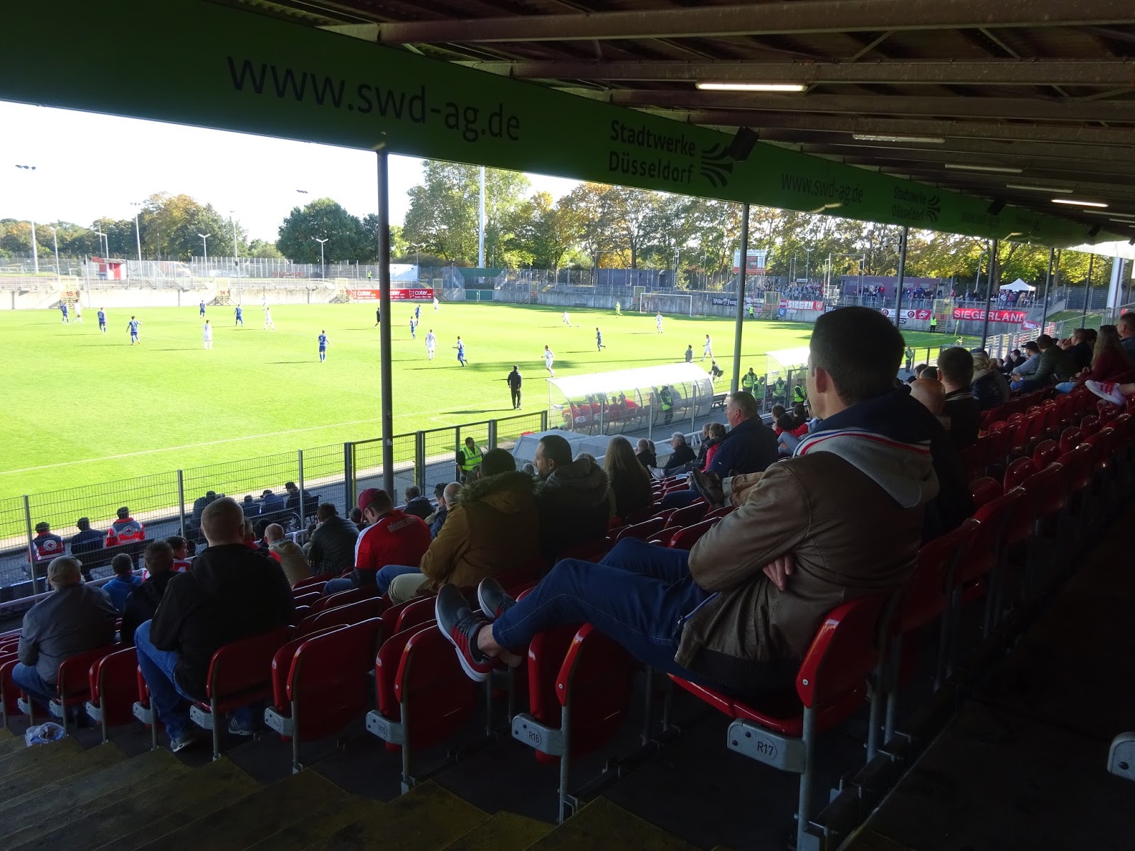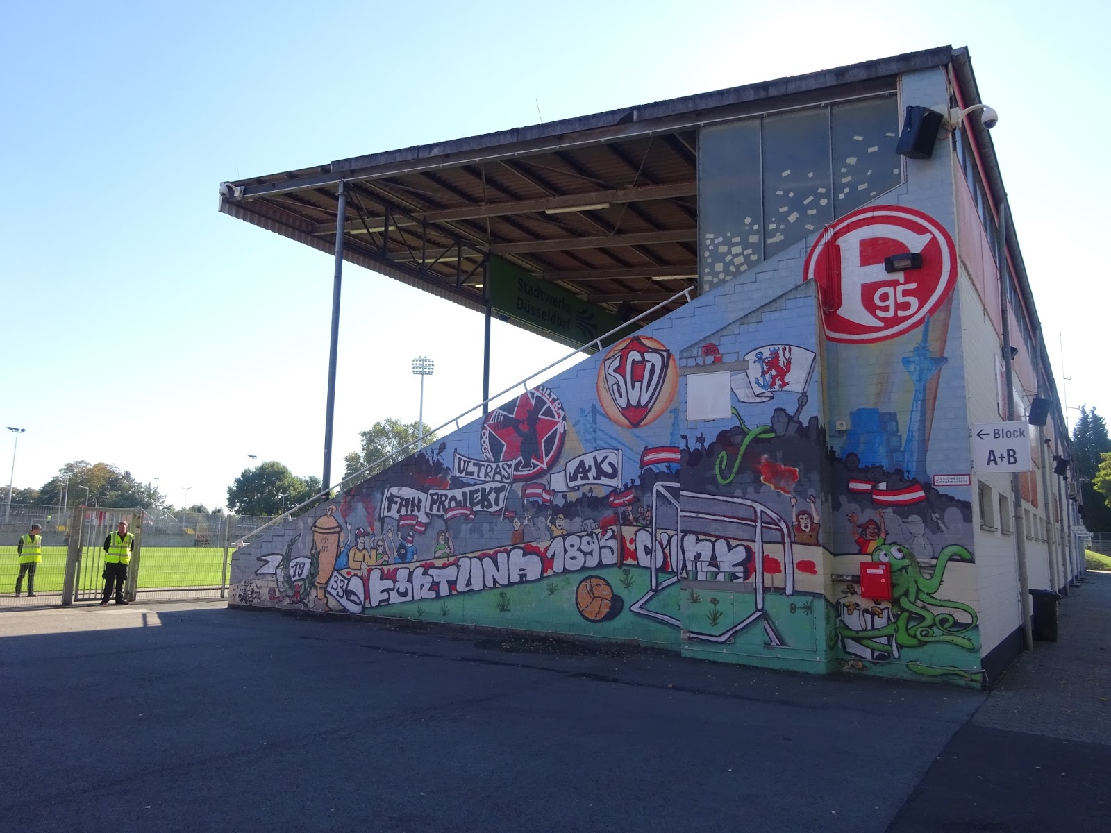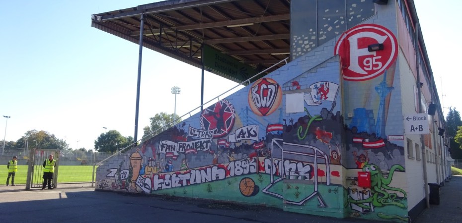 Etwas lebendiger, wenn auch nicht mehr so mondän, ist hingegen der Stadtteil Flingern, in dem seit den 30er-Jahren eine der Heimstätten der Düsseldorfer Fortuna (besucht im November 2011) liegt, die mittlerweile nur mehr für die Zweitmannschaft genutzt wird. Eine verdammt nette Haupttribüne ist von drei kleineren Stehplatztribünen umgeben, auf der sich hinter einem der Tore auch der Auswärtssektor befindet.