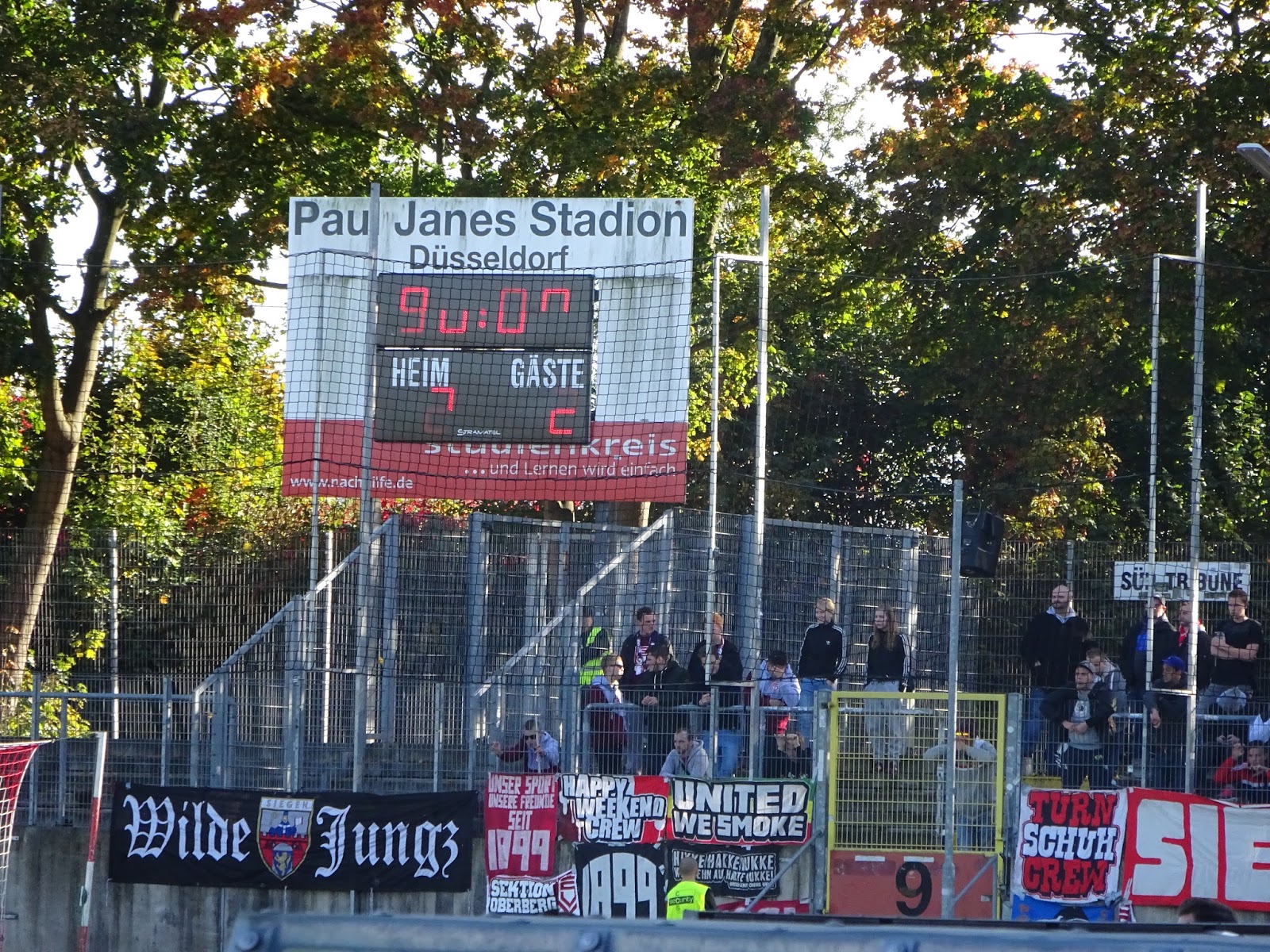 Spätherbstlicher Sonnenschein versüßt den Fußballnachmittag eindeutig, auch wenn die Partie fern von Leckerbissen ist. Zu Beginn sorgen die doch sehr zahlreich mitgereisten Gästefans noch für Stimmung, dann gleitet die Atmosphäre aber immer mehr in Richtung Picknick ab – mit gelegentlichen Stoßseufzern. Mitreißend wird das Regionalliga-Match erst wieder in den letzten Spielminuten, in denen Siegen zwei mal der Ausgleich gelingt, nachdem sich Fortuna mit dem vermeintlichen Siegtreffer zum 2:1 schon zu früh zufrieden gab.