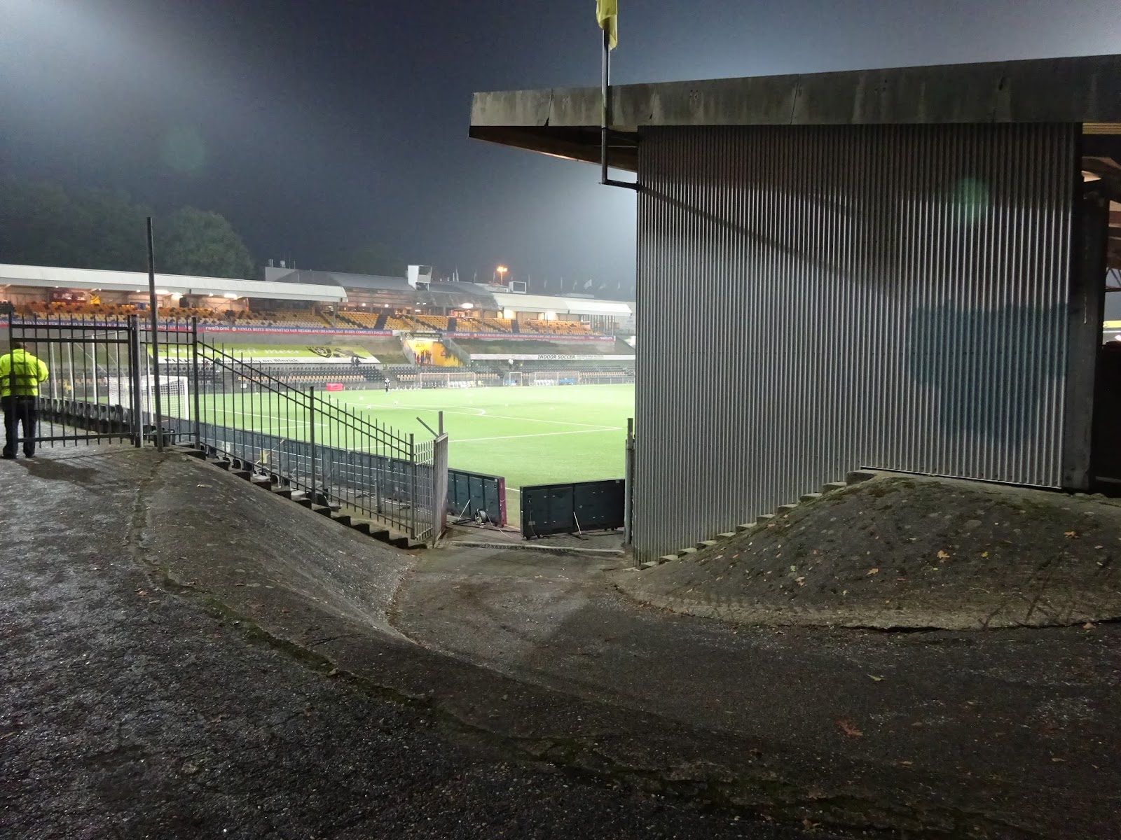 Der bereits etwas in die Jahre gekommene Bau ist absolut kultig. Einziger Eingang für die Sitzplätze ist unterhalb des Bussinesbereichs durch einen Tunnel. Danach kann man über einen Rundweg zu den zwei Geraden und einer der Hintertortribüne wandern. Nur der Stehplatzbereich der Heimfans – und klarerweise auch der Bereich der Gästefans – haben einen separaten Eingang. Eine Gerade und eine Hintertortribüne erstrecken sich über zwei Ränge, beide in einen Hang hineingebaut. Dichte Stimmung kann durch den weiten Abstand zwischen ihnen zwar leider nicht aufkommen, aber das Stadion ist in seiner Art sicher einzigartig.