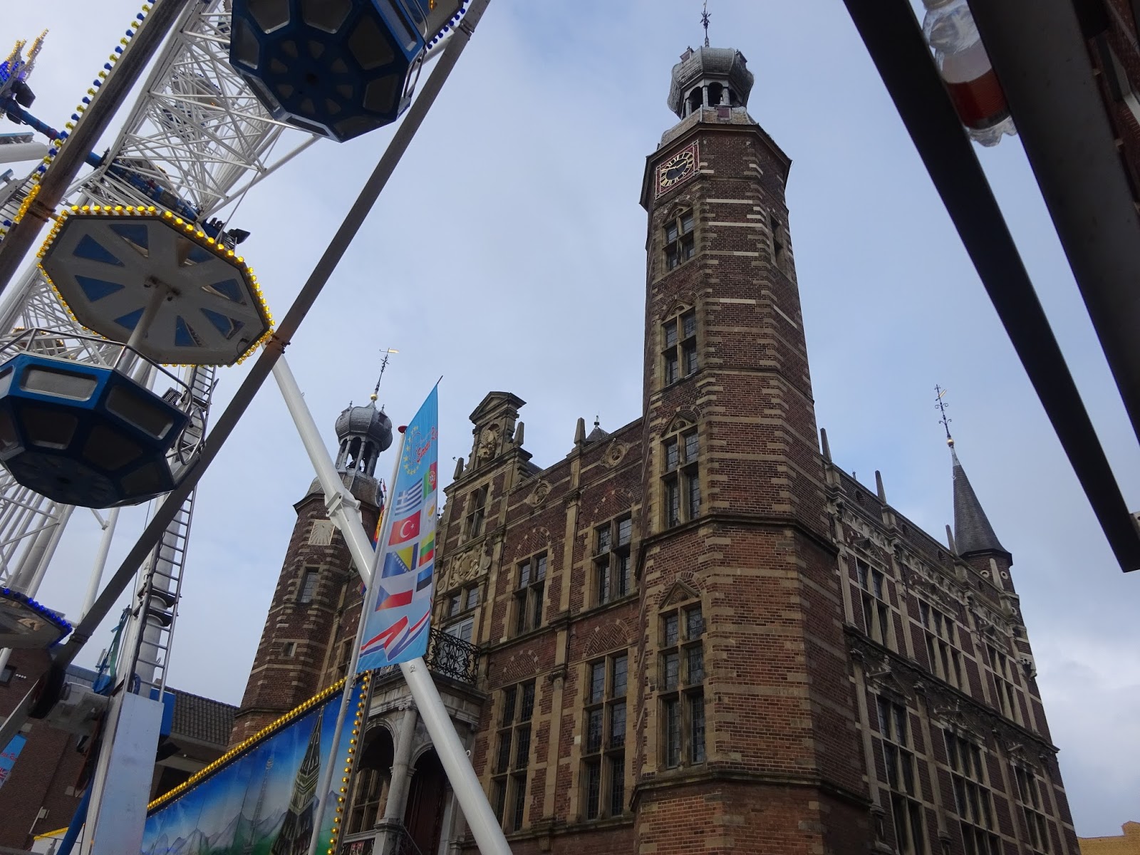 In der Stadt selbst ist derzeit Kermis (schreibt man tatsächlich mit i und e umgedreht), das macht den Spaziergang durch den schönen historischen Kern eher zum Spießrutenlauf, auch wenn am früheren Nachmittag noch nicht so viel los ist. Die klassischen niederländischen Backsteinbauten sind jedoch leider fast durchgängig mit Pommesbuden und diversen Fahrbetrieben zugestellt.
