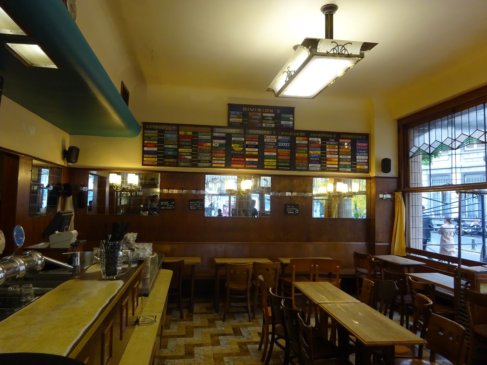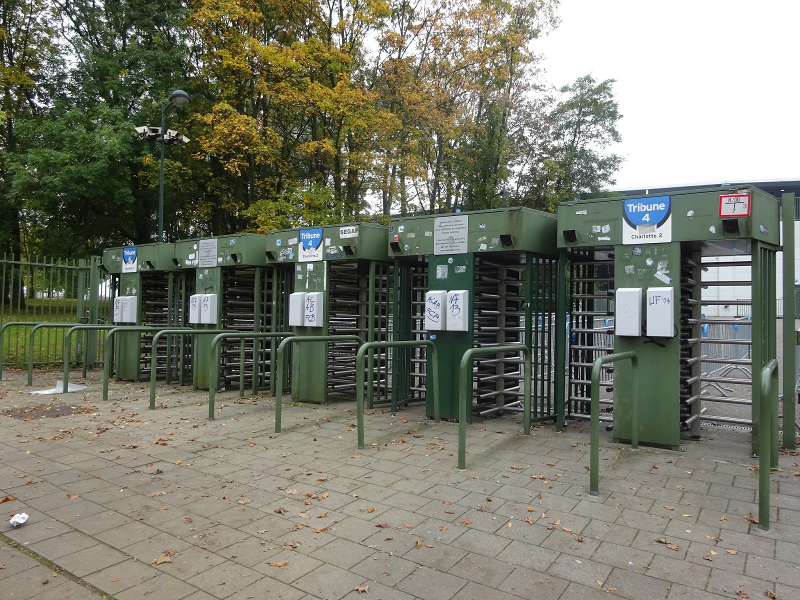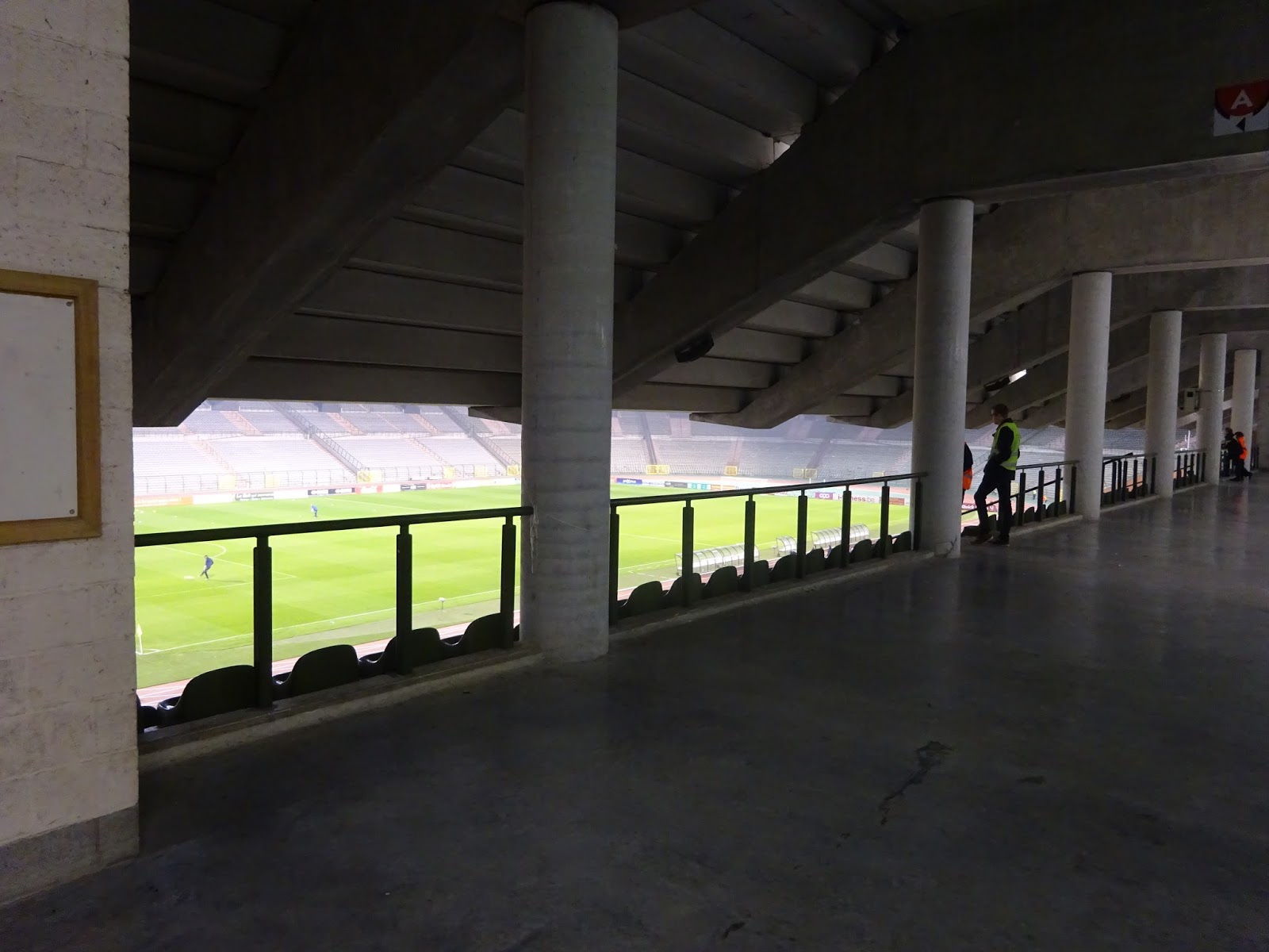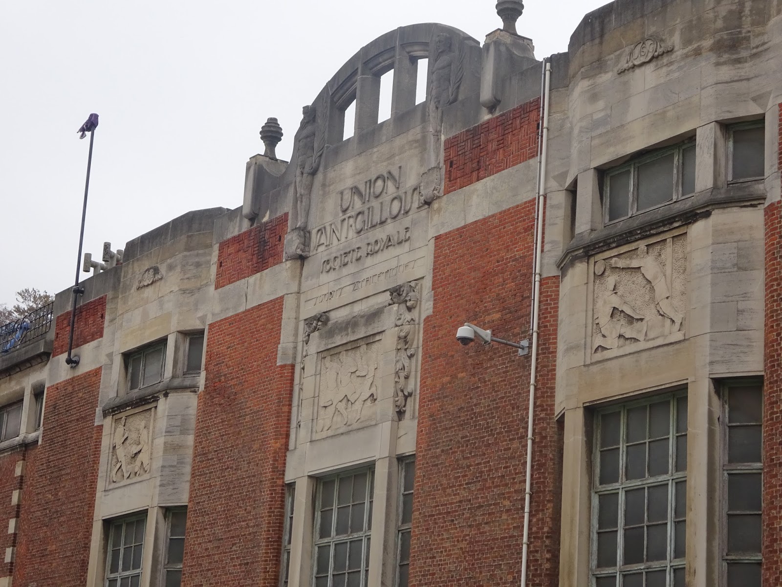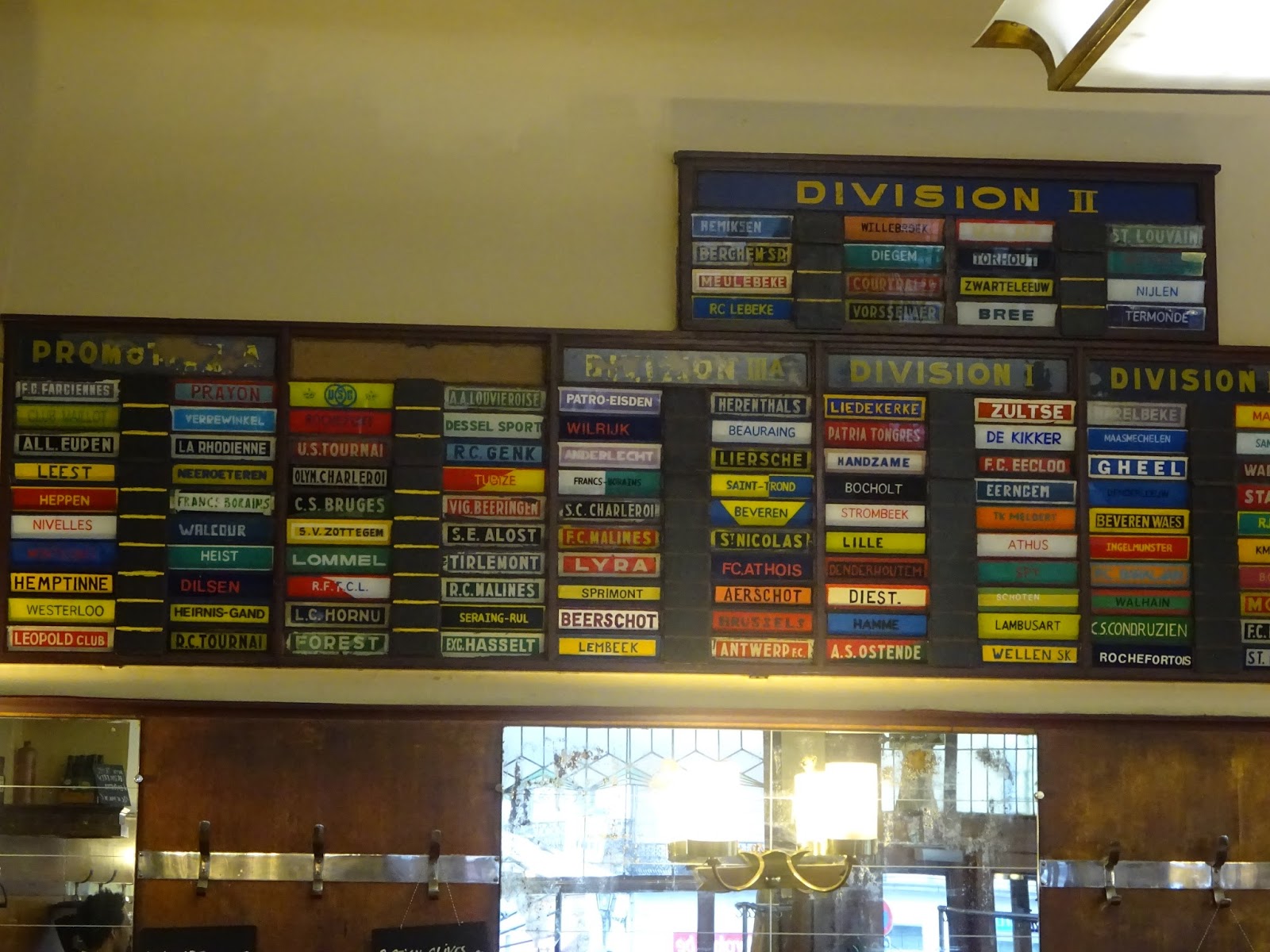 Die Hotelwahl hat mich dann aber dazu verleitet, durch das Stammviertel des heute besuchten Klubs zu streunen, es sollte sich auszahlen. Per Zufall komme ich dabei nämlich auch an einem ehemaligen Stammcafe von Union vorbei, an dem noch eine alte Stecktafel über die Ligen hängt, die man früher je nach Verlauf gestalten konnte. Recht viel mehr bekomme ich aus dem sehr freundlichen Barista dann aber nicht heraus. Saint Gilles ist sehr widersprüchlich, im Osten eher migrantisch und Arbeiterviertel, im Westen dann eindeutig bürgerlich betucht. Absolutes Highlight in der Mitte des Rundgangs ist natürlich dann das alte Stadion von Union, das vielleicht demnächst – bzw. geplant ab nächster Saison – auch wieder genutzt werden kann.