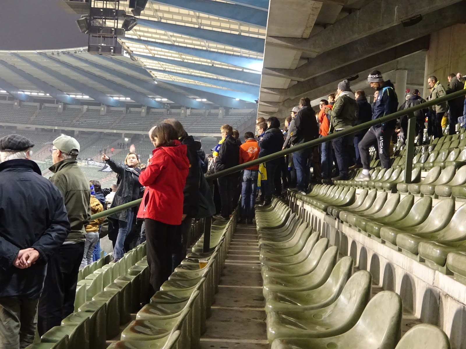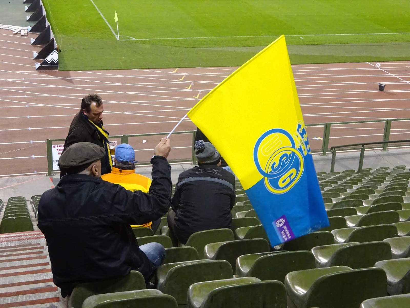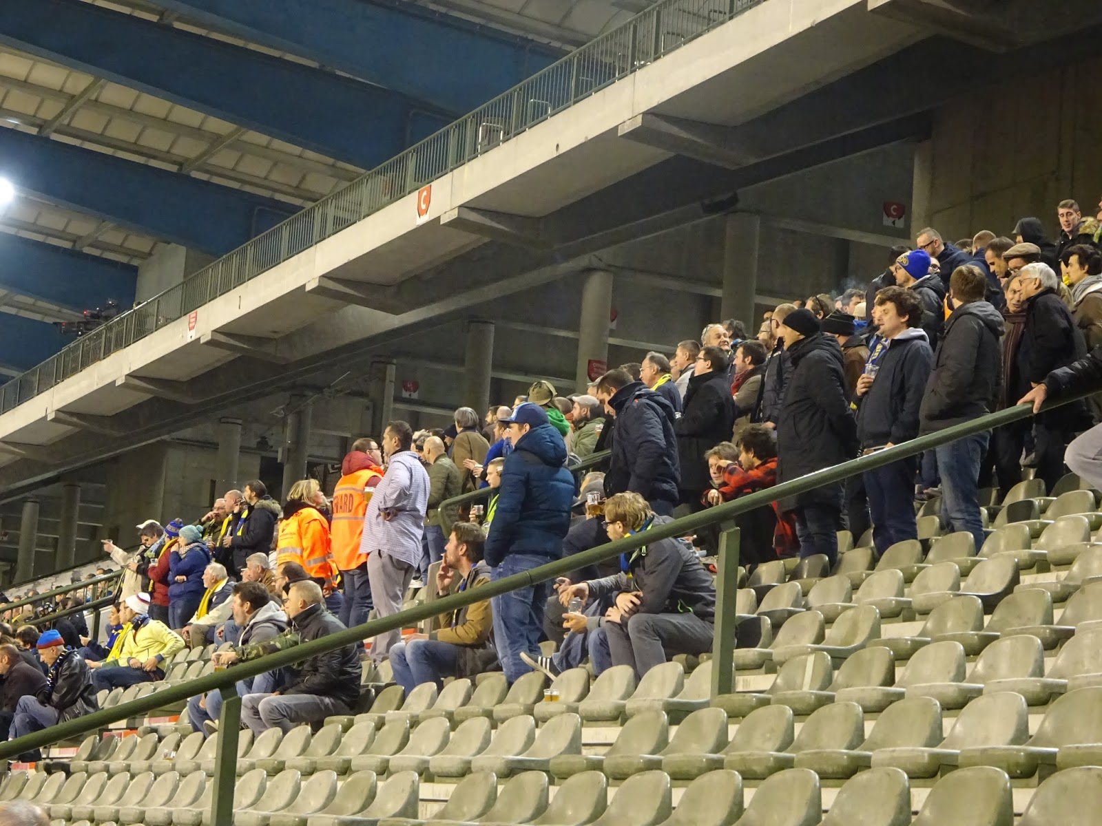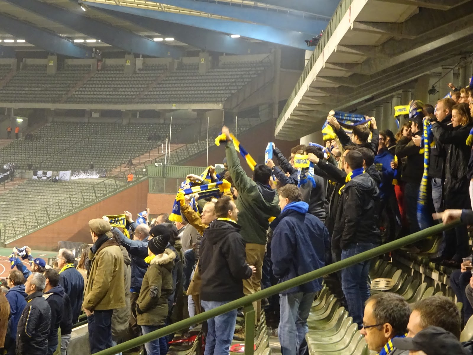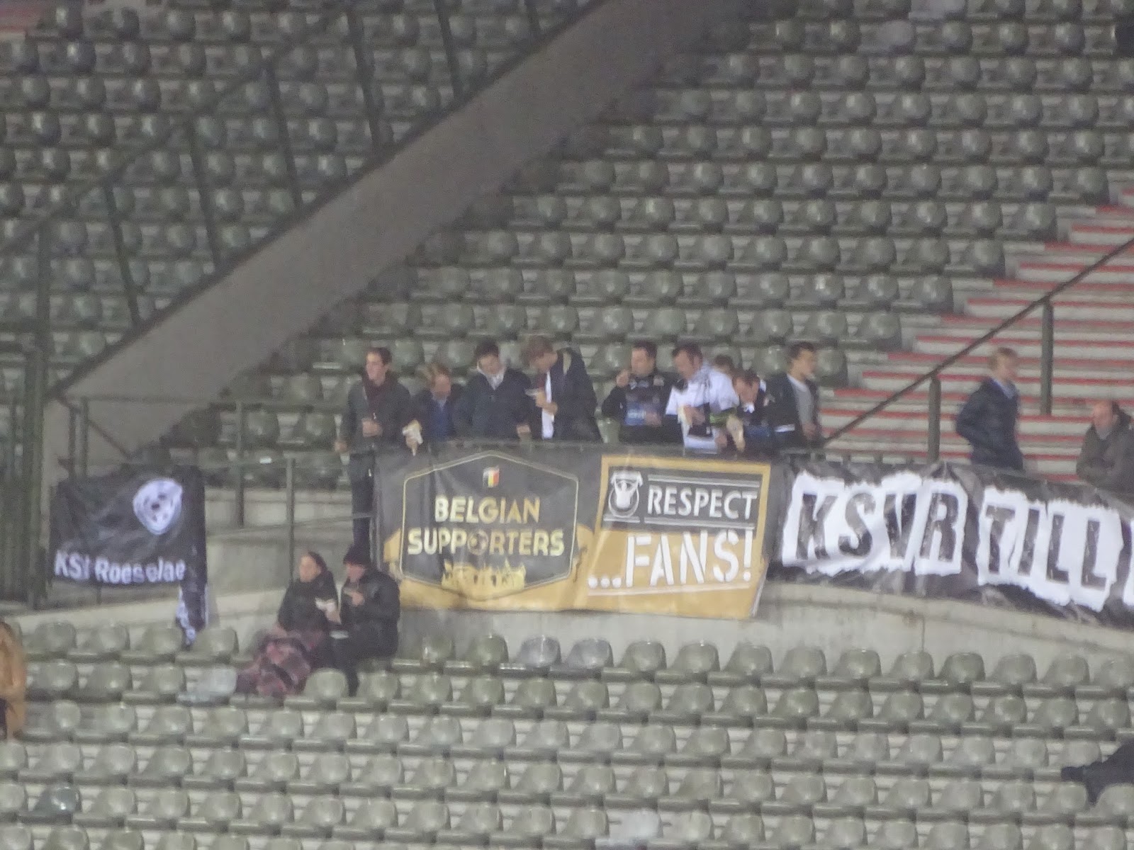 Das belgische Nationalstadion ist natürlich viel zu groß für die Fanszene von Union, auch wenn man ihr beim Stimmungmachen keinen Vorwurf machen kann. Es ist eine coole Mischung aus offensichtlich alteingesessenen Fans des Vereins und einer neuen, alternativen Szene hier anwesend. Ein Großteil der Zuschauer ist sangesfreudig und macht dies in beeindruckend kreativer Vielfalt. Dazu gehört beispielsweise eine Bella-Ciao-Version, aber auch andere antifaschistische Gesänge. Das einzige, was sich nicht so ganz ins alternative Image einpassen will, sind noch am ehesten die „Auflauf-Girls“ ganz zu Beginn.