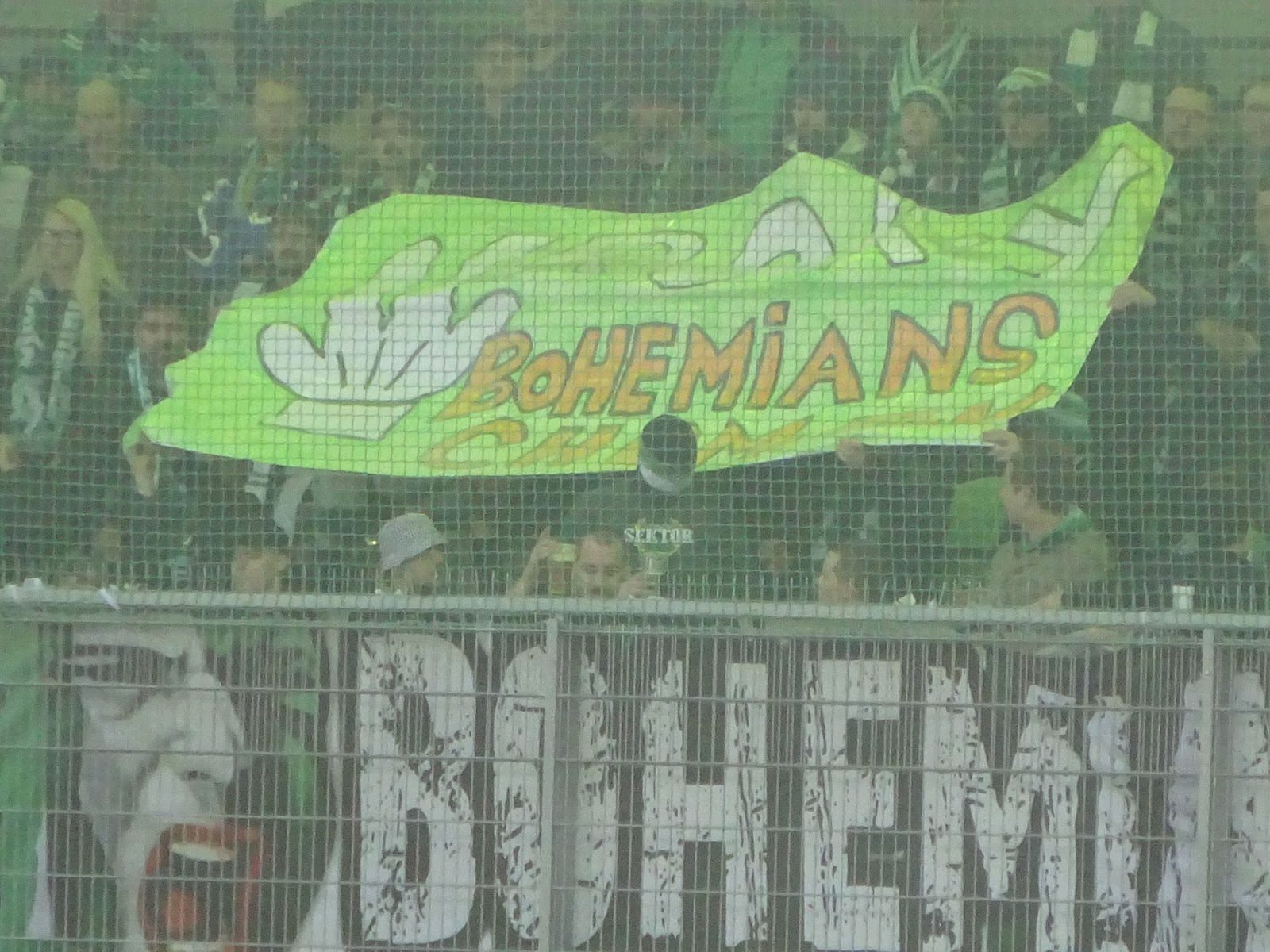 Während das Spiel pro Halbzeit nur eine gute Mannschaft kennt, und die Bohemians dabei aus ihrer Sicht halt leider die torlosen ersten 45 Minuten erwischen, kann sich die Stimmung auf beiden Seiten über die gesamte Spielzeit sehen lassen. Die besser organisiert auftretenden Bohemians-Fans zeigen immer wieder auch Pyro-Einlagen und eine nette Überrollfahne zu Beginn, auf Seiten der Heimfans geht neben dem kleinen, aber dauersingenden Ultras-Block auch immer wieder das Stadion bei guten Aktionen mit. In Tschechien kann man jedenfalls bei Weitem lauere Atmosphäre erleben.