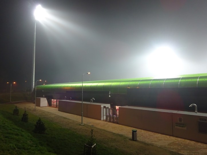 Das Zentrum einmal hinter sich gelassen, trifft man hier tatsächlich auch Menschen in größeren Ansammlungen, zumindest umso näher der Anpfiff rückt. MFK Karvina, ein Fusionskonstrukt aus einst vier eigenständigen Vereinen, spielt in einem quasi nigelnagelneuem Stadion, das knapp über 4.800 Zuschauer fasst. Erst mit dieser Saison ist der Klub Bestandteil der höchsten tschechischen Liga und hält dort bisher auch ganz gut mit.