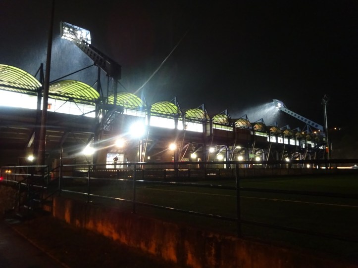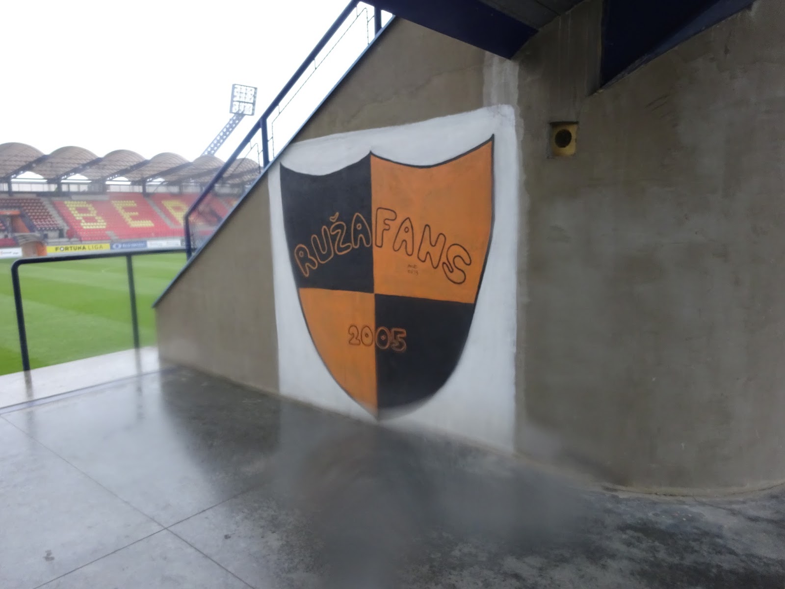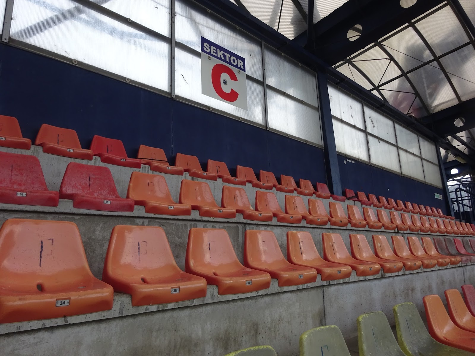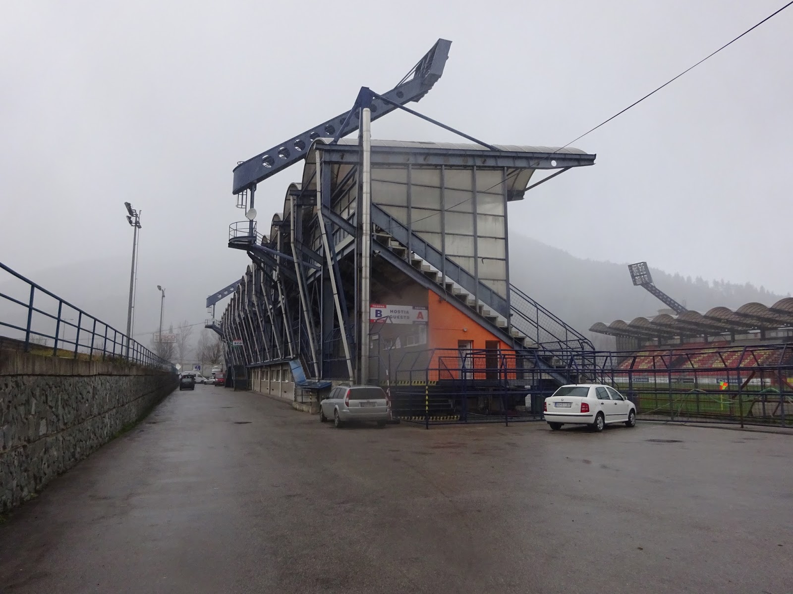 Nach gut 20 Minuten Fußmarsch erreicht man das städtische Stadion, das mit seinen Flutlichtern und den beiden deckungsgleichen Längstribünen schon von außen durchaus zu gefallen weiß. Der aufkommende Starkregen regt allerdings zur schnellen Flucht unters Dach an, wo der Stadion-DJ bereits mit dem Abspielen der „aktuellsten“ Hits der 70er- bis 90er-Jahre begonnen hat. Spätestens mit der aus dem Jahr 2011 stammenden Vereinshymne weiß man aber wieder, dass es letztlich auch immer schlimmer kommen konnte.