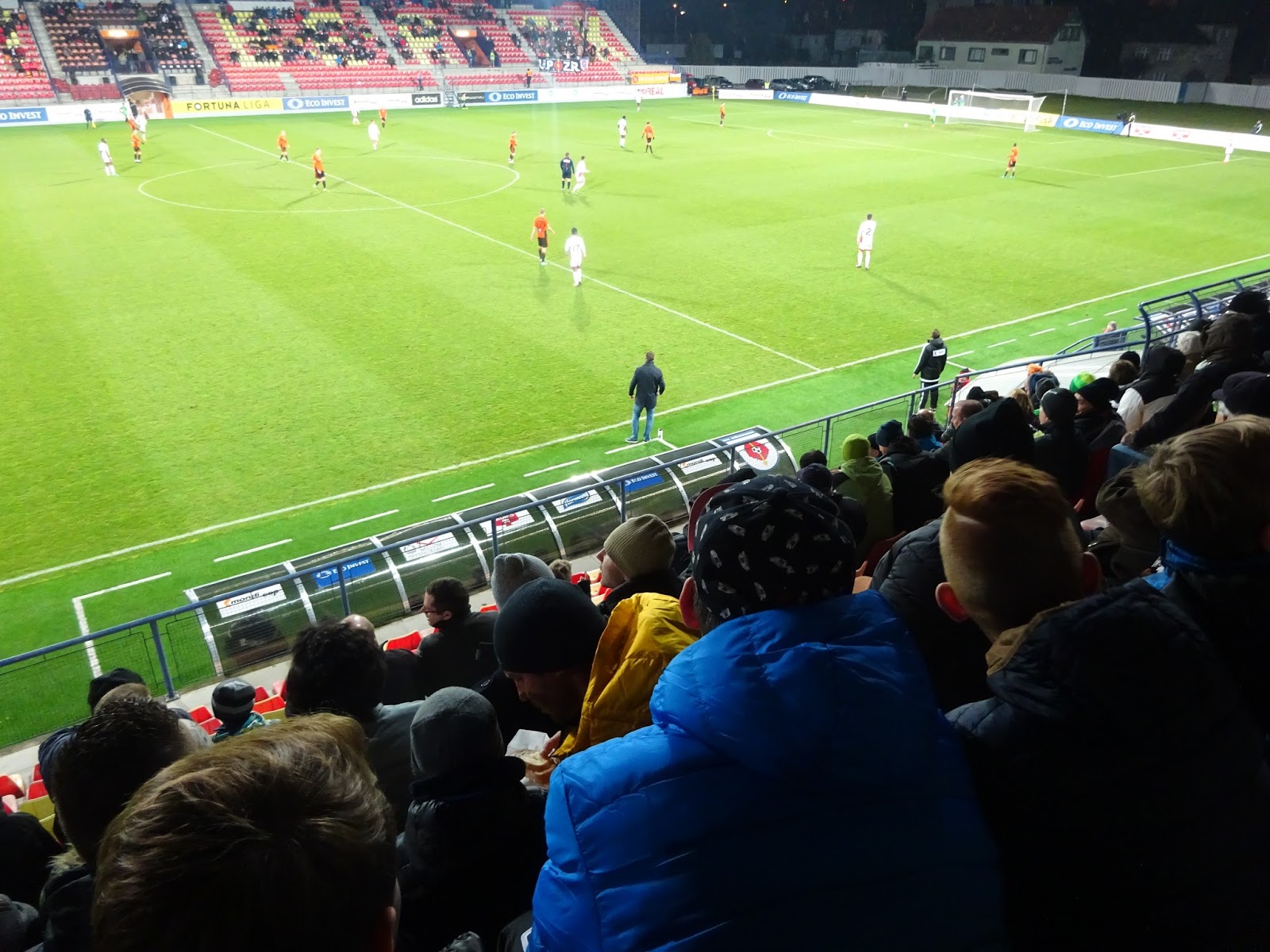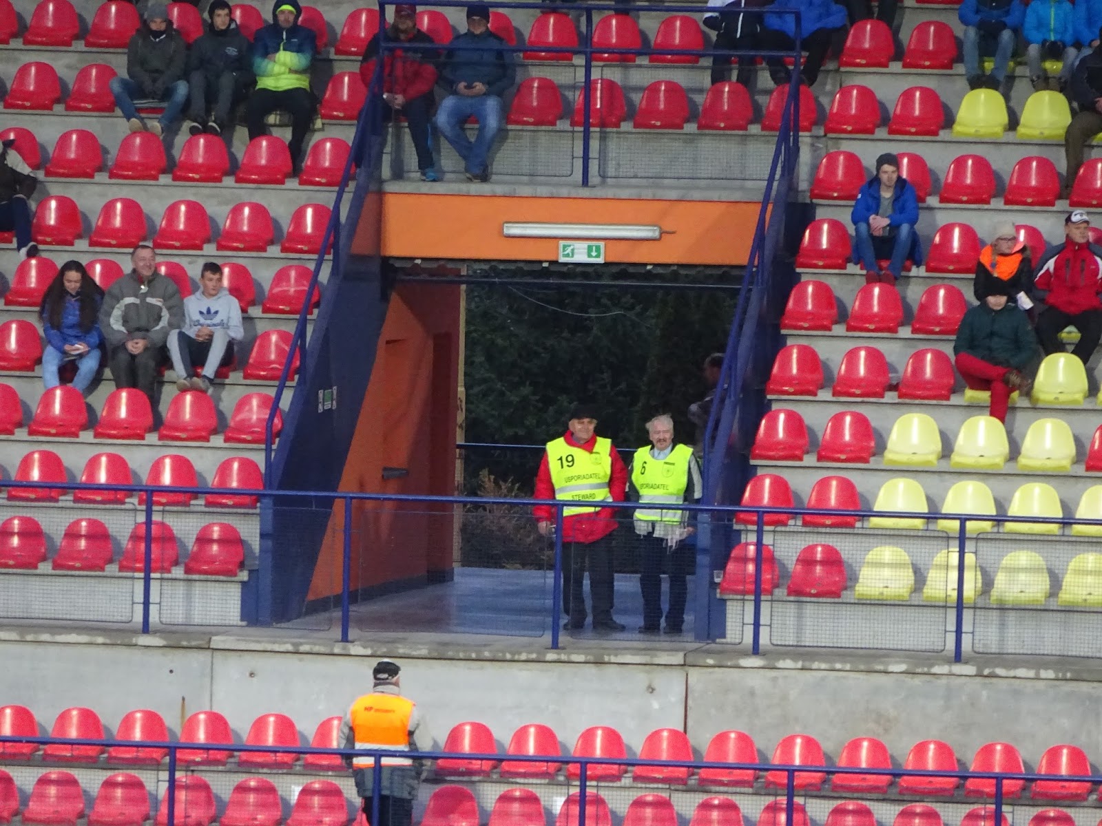 Diesmal lässt das Spiel stimmungstechnisch ziemlich aus, auch wenn sich die gut 30 Heimfans redlich abmühen und gegen Wind, Wetter und halbleere Ränge ansingen. Die Handvoll Trencin-Anhänger tun sich diese Anstrengung erst gar nicht an. Auf dem Platz spielt es dafür teils echt Hollywood: Das 1:2 zur Pause aus Sicht der Gäste ist klar leistungsgerecht, nach dem nicht unbedingt zu erwartenden Ausgleich der Gastgeber erlebt das Match seine stärkste Phase dann schon knapp vor Abpfiff.